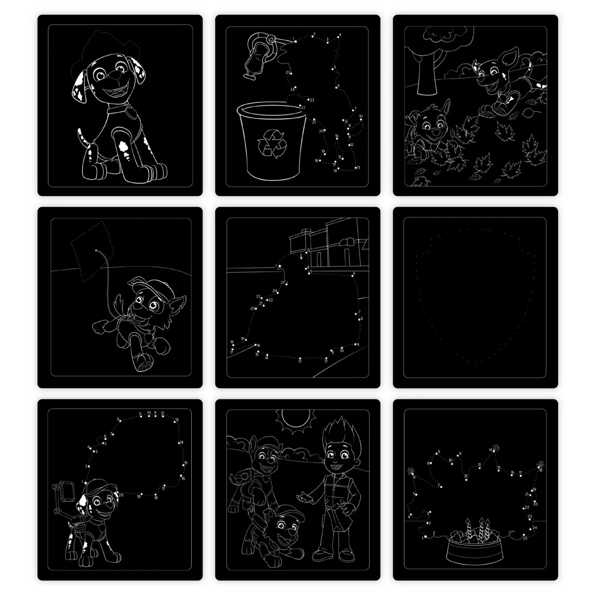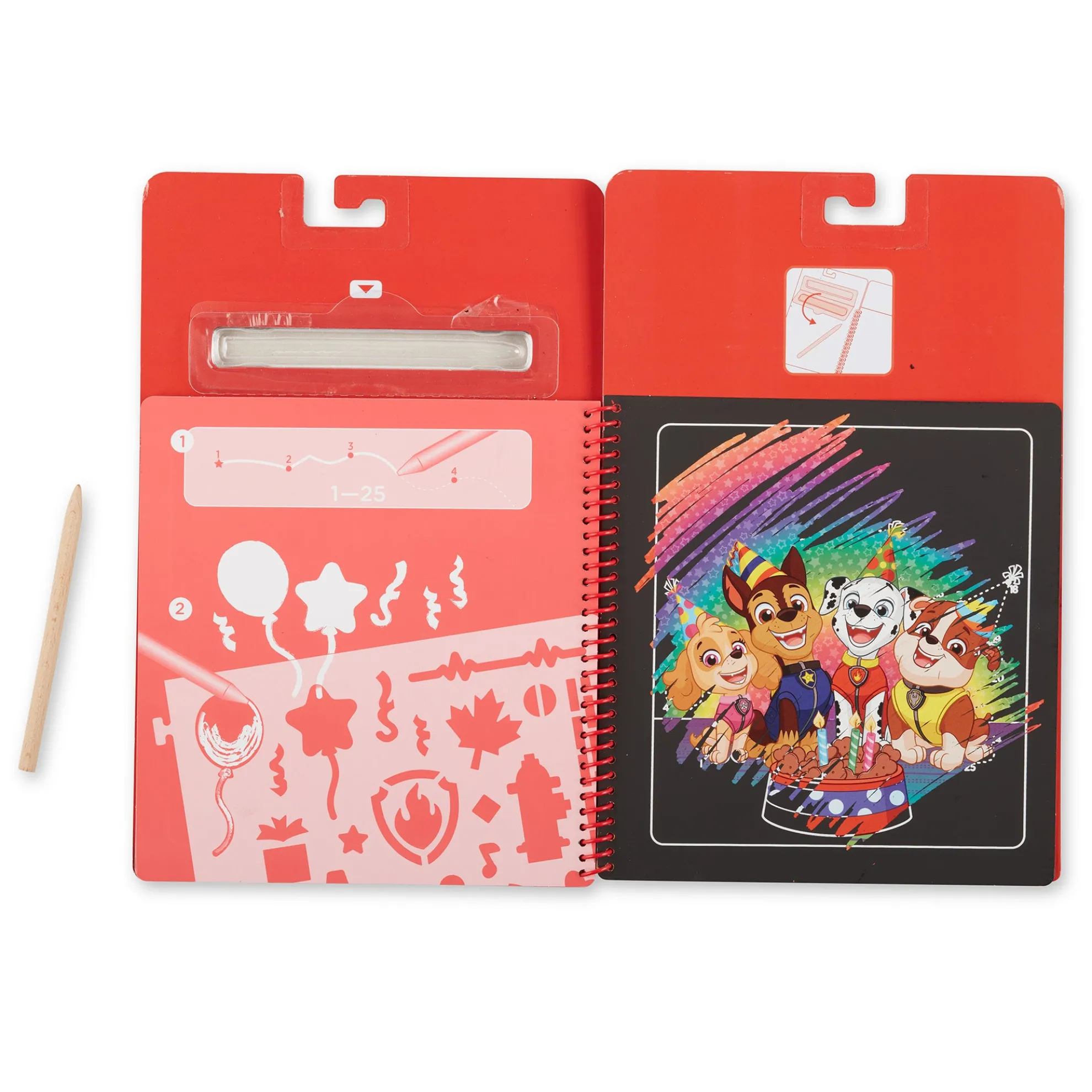 - 10 Scratch Art scenes featuring PAW Patrol pup Marshall and friends with dot-to-dot or stencil activities on each page