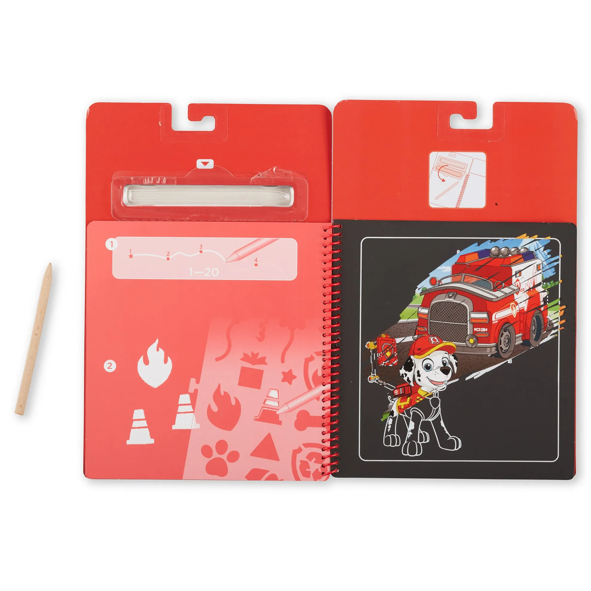 This compact and portable Scratch Art activity pad lets kids bring creativity anywhere they want to go! Use the included wooden stylus to etch lines, dots, and patterns to reveal hidden colorful artwork, featuring Marshall and other PAW Patrol friends. The 10 scenes include either dot-to-dot or stencil activities to spark creativity so kids can make each page uniquely their own. The stylus and stencil sheet store in the spiral-bound pad, making it a great mess-free travel activity for kids five and older. PAW Patrol is always ready to help, inspiring preschoolers with a blend of teamwork, adventure, and humor as they develop social, emotional, and developmental skills through play.