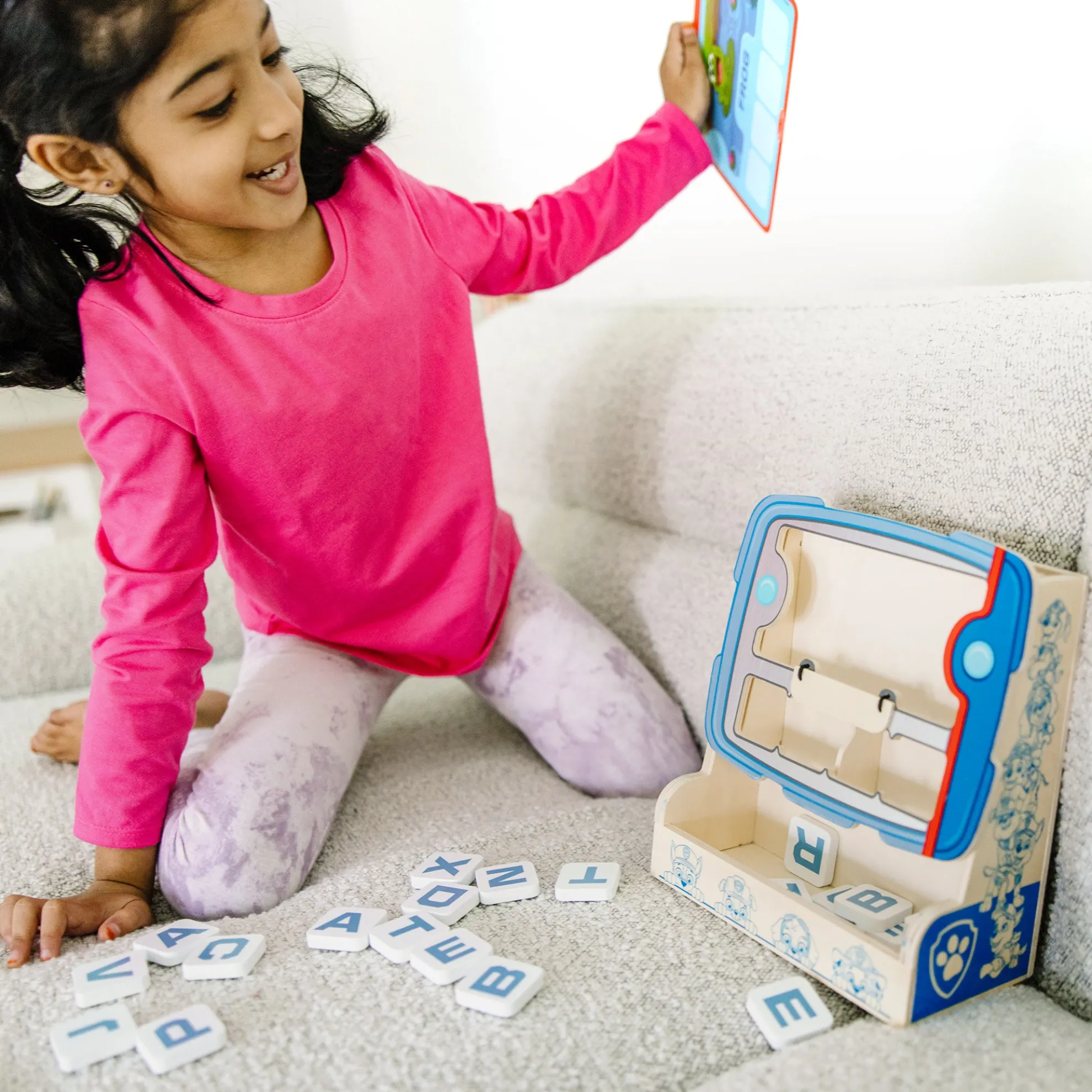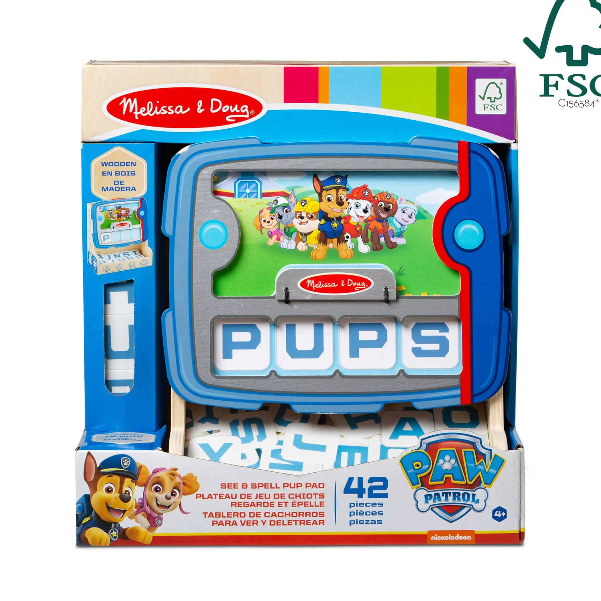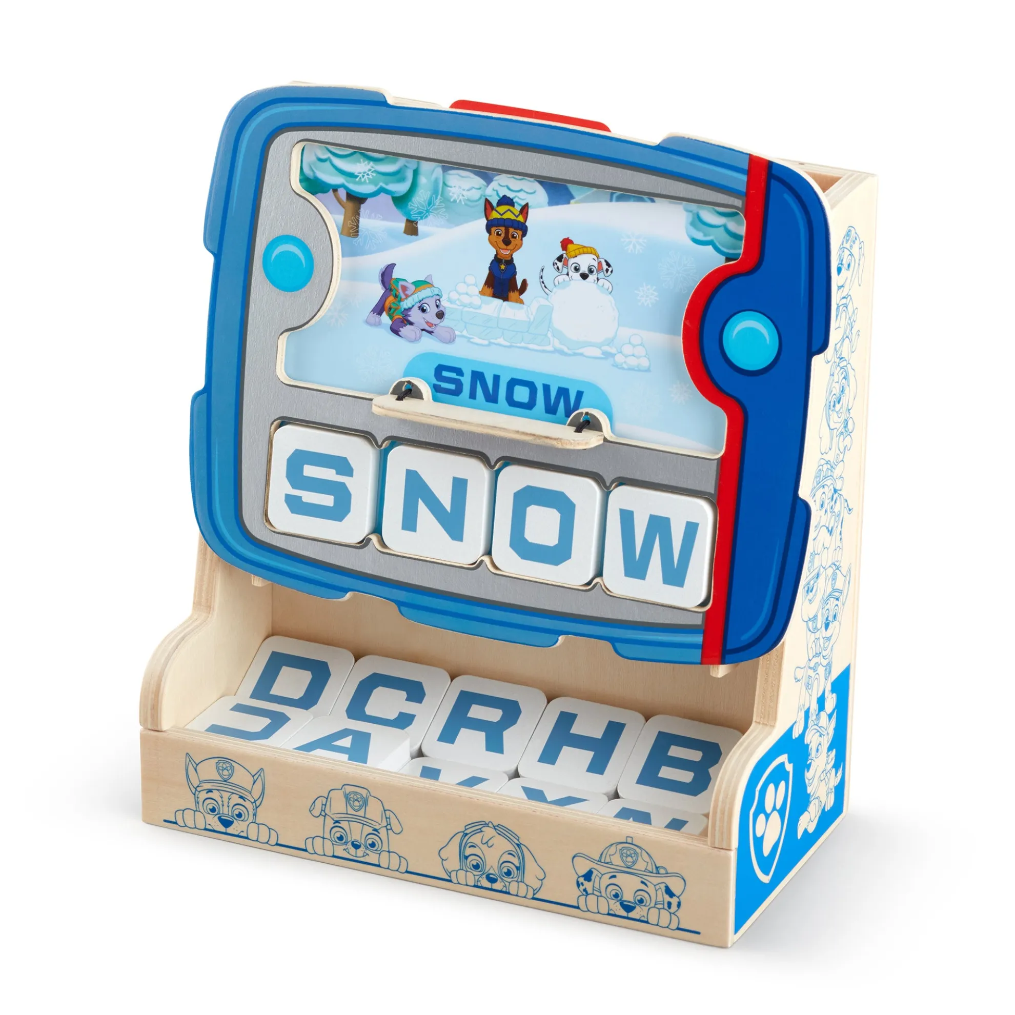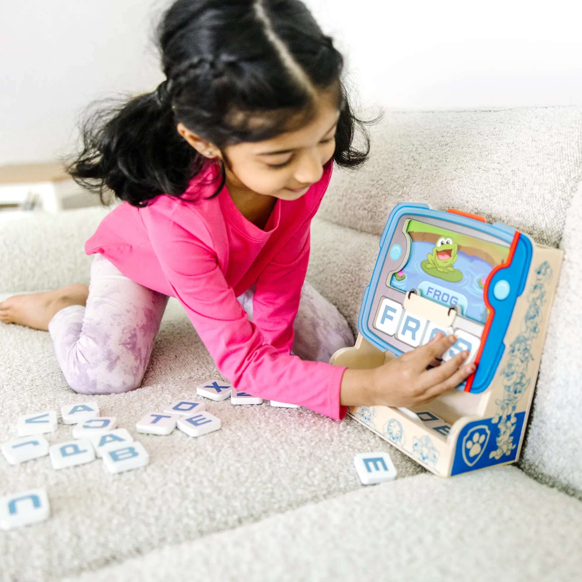 Join PAW Patrol™ on a mission to spell! Slide one of the double-sided spelling cards into the wooden Pup Pad, then use the double-sided letter tiles to spell the three- or four-letter word depicted in the scene. Lift the flap on the Pup Pad to check the answer; remove the card and the tiles drop into the storage tray in the base! Kids can match letters to the words on the cards, spell from memory, or use the cards as flashcards as spelling ability increases. See & Spell is a great way for kids four and older to learn language and letters, and to develop fine motor and problem-solving skills. PAW Patrol™ is always ready to help, inspiring preschoolers with a blend of teamwork, adventure, and humor as they develop social, emotional, and developmental skills through play. This product is certified by the Forest Stewardship Council. FSC certification ensures that products come from responsibly managed forests that provide environmental, social, and economic benefits, and that forests are protected for future generations. Please note that FSC certification applies to new inventory only (FSC C156584)