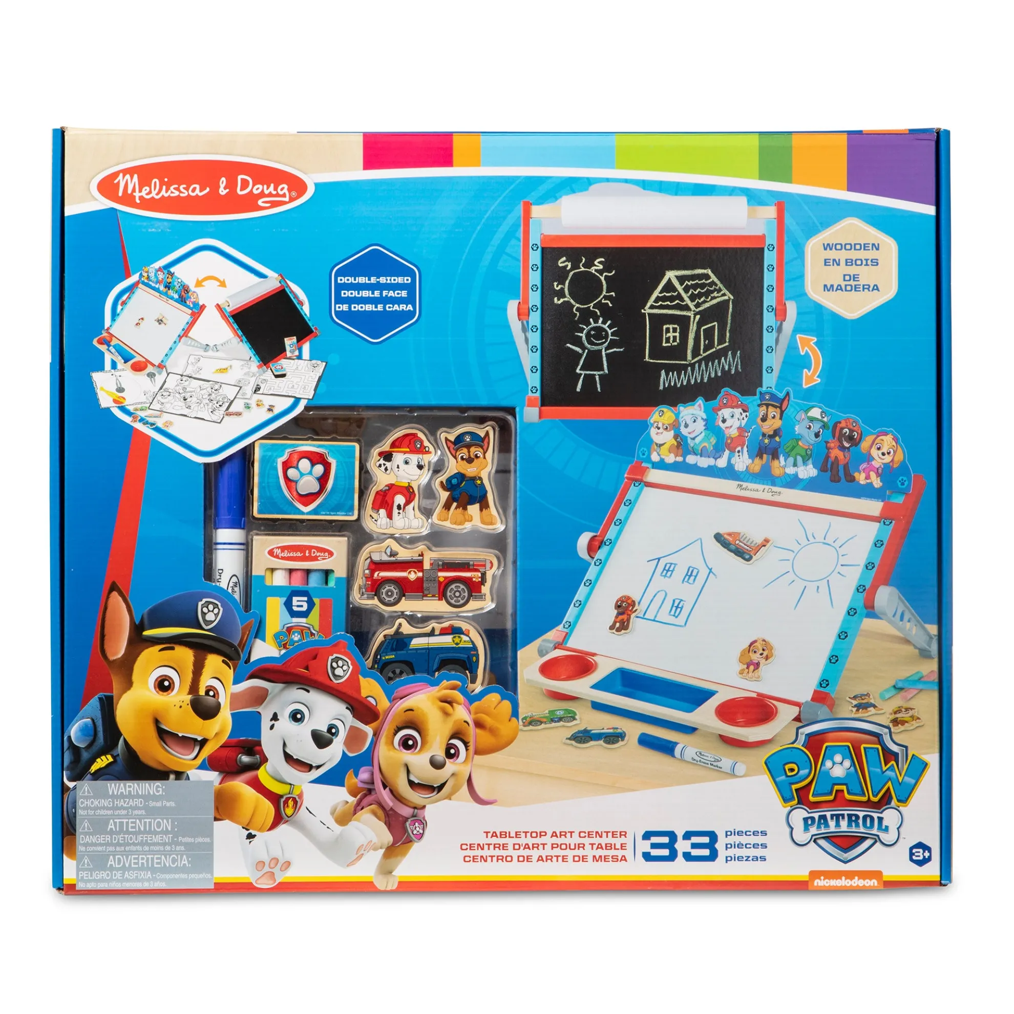 There are lots of ways to create with this compact PAW Patrol™ tabletop easel with art supplies! Draw on the paper roll, make designs and write on the chalkboard, create again and again on the magnetic dry-erase surface, and fill in activity sheets. The magnetic base of the adjustable compass clings to the dry-erase board; then insert the dry-erase marker (or any drawing tool less than 9mm diameter) to draw perfect circles in different sizes! Add PAW Patrol™ magnets to scenes on dry-erase board or use them to hold activity sheets on the easel. The portable easel with attached wooden art supply tray folds flat for easy storage. PAW Patrol™ is always ready to help, inspiring preschoolers with a blend of teamwork, adventure, and humor as they develop social, emotional, and developmental skills through play.