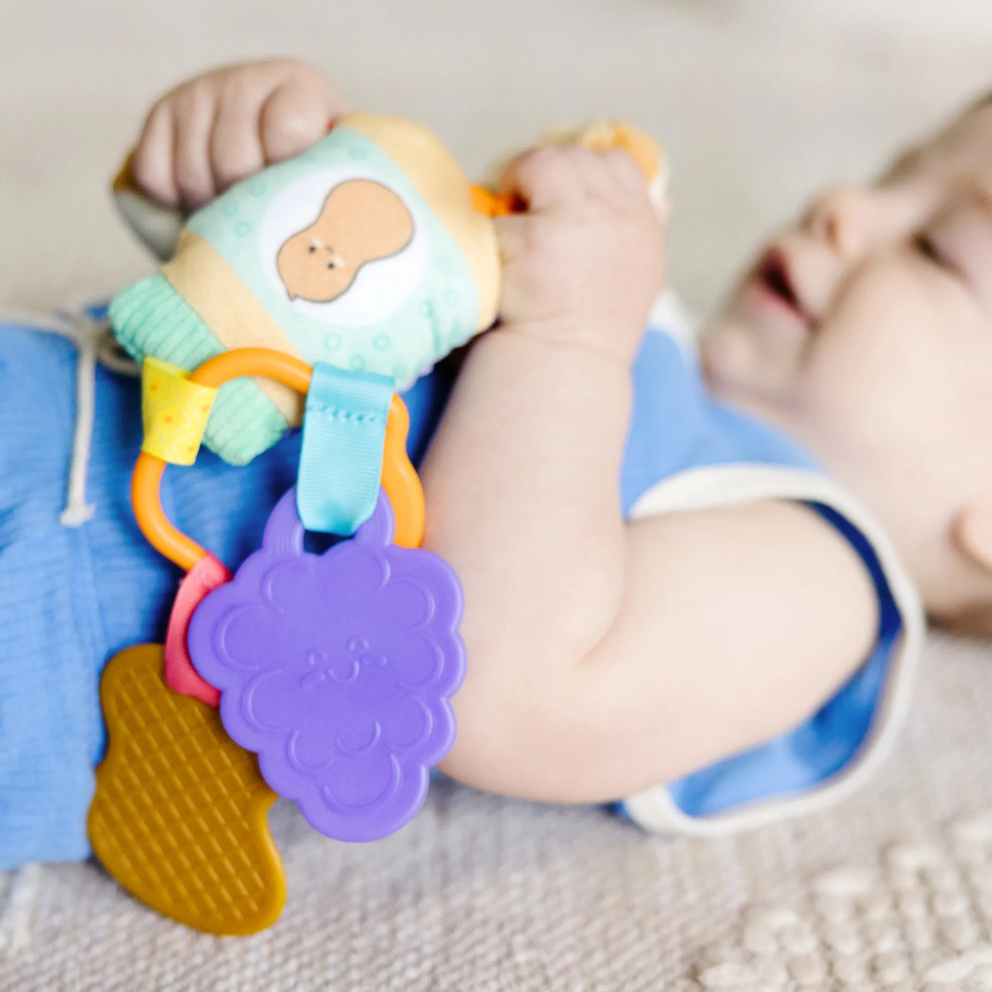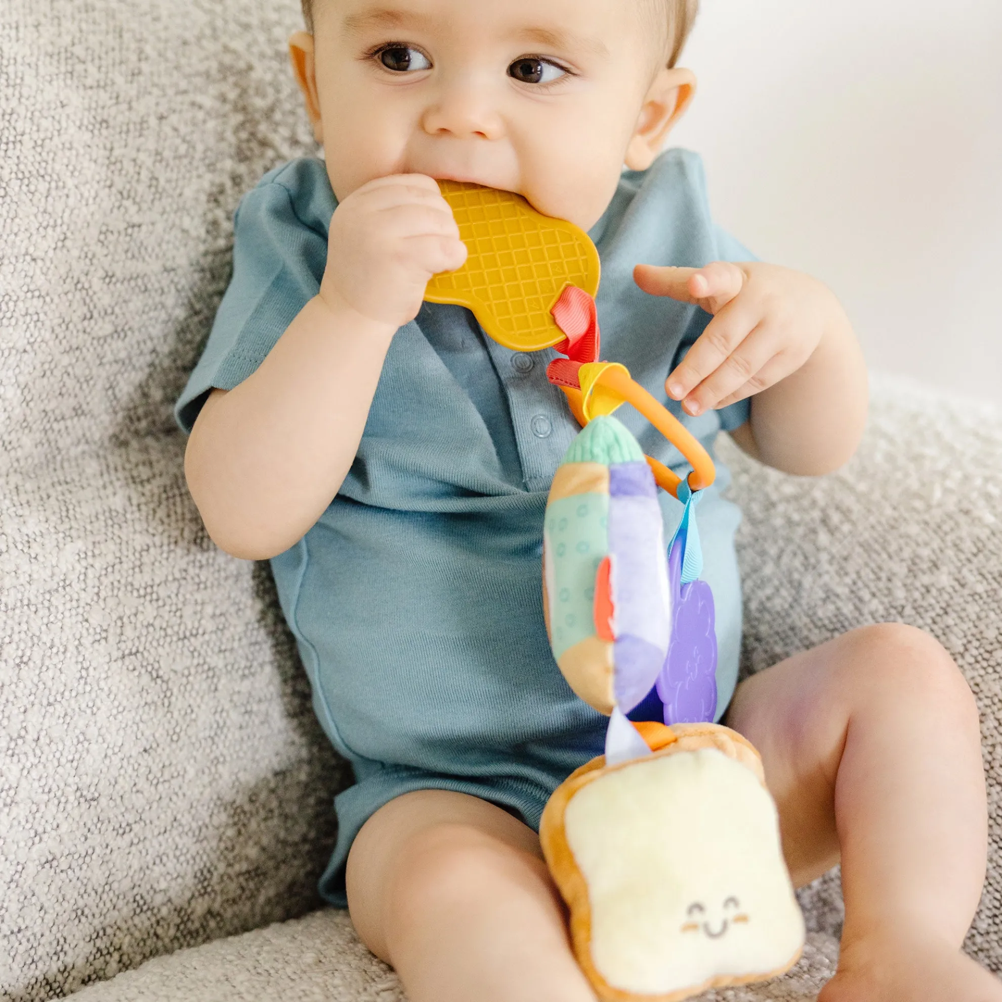 - Clip the 6-piece peanut butter and jelly infant toy to strollers, diaper bags, high chairs, car seats, and more to keep the fun close at hand