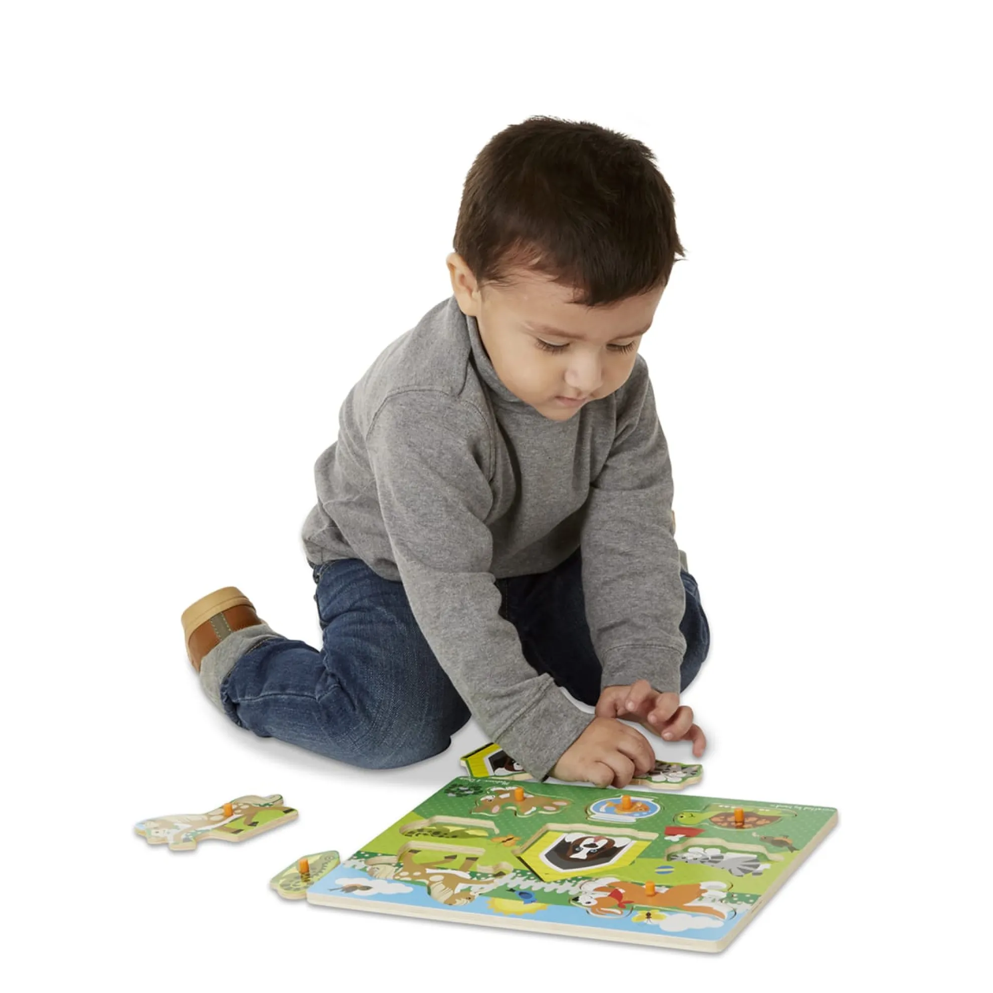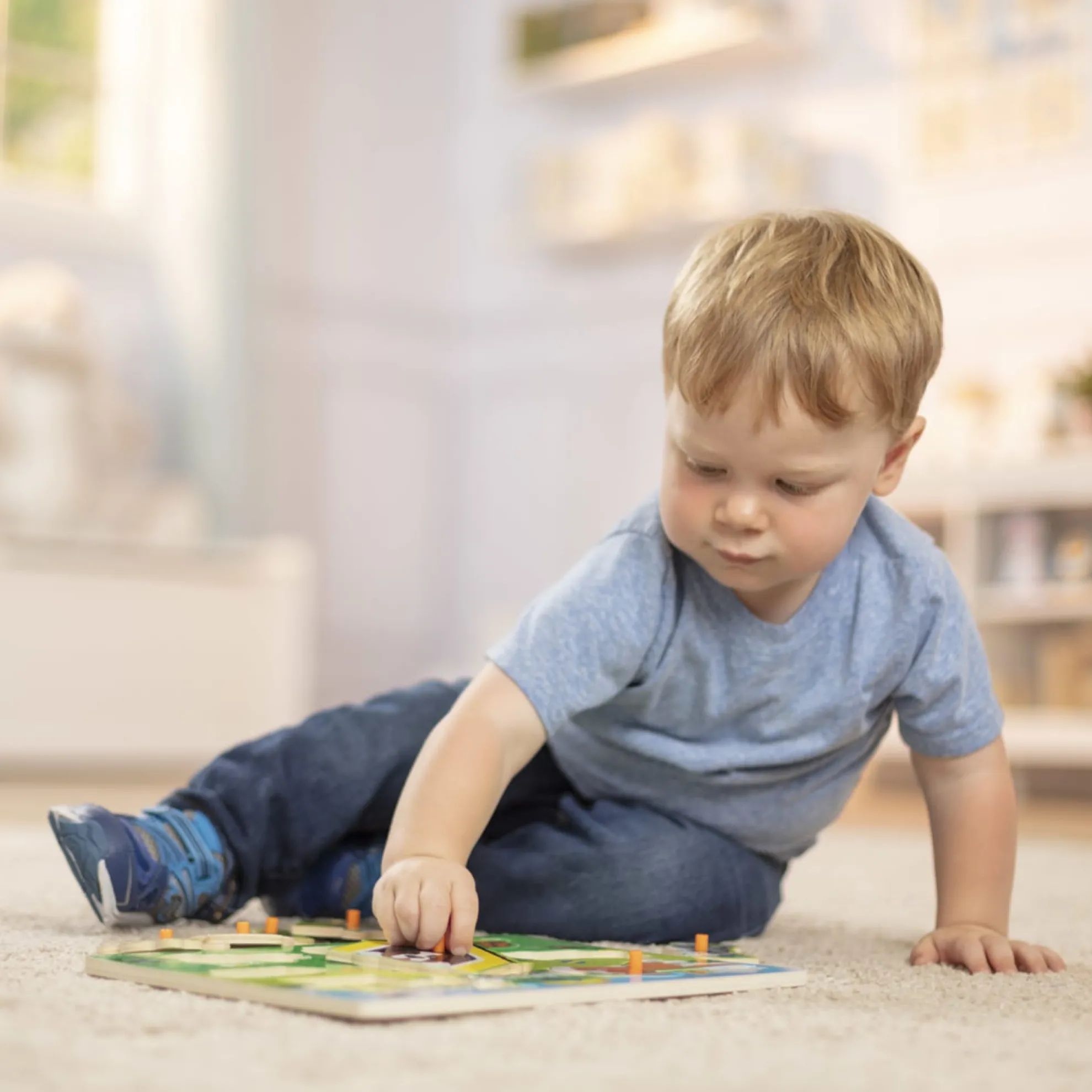 Children will love spending time with these beloved neighborhood pets as they place each wooden puzzle piece over the matching picture on the puzzle board. This sturdy 8-piece puzzle features easy-grasp pegs and wooden construction. Promotes hand-eye coordination, fine motor skills, problem-solving skills, and much more!