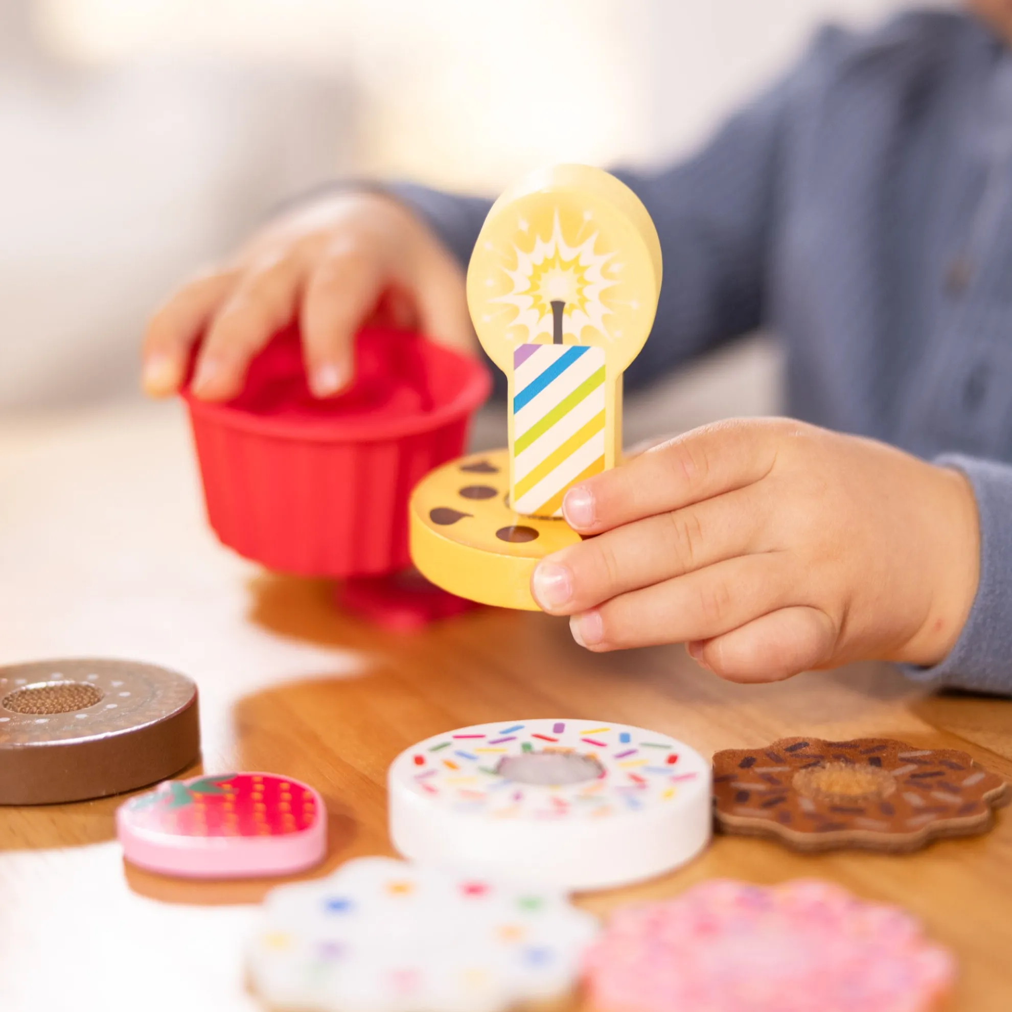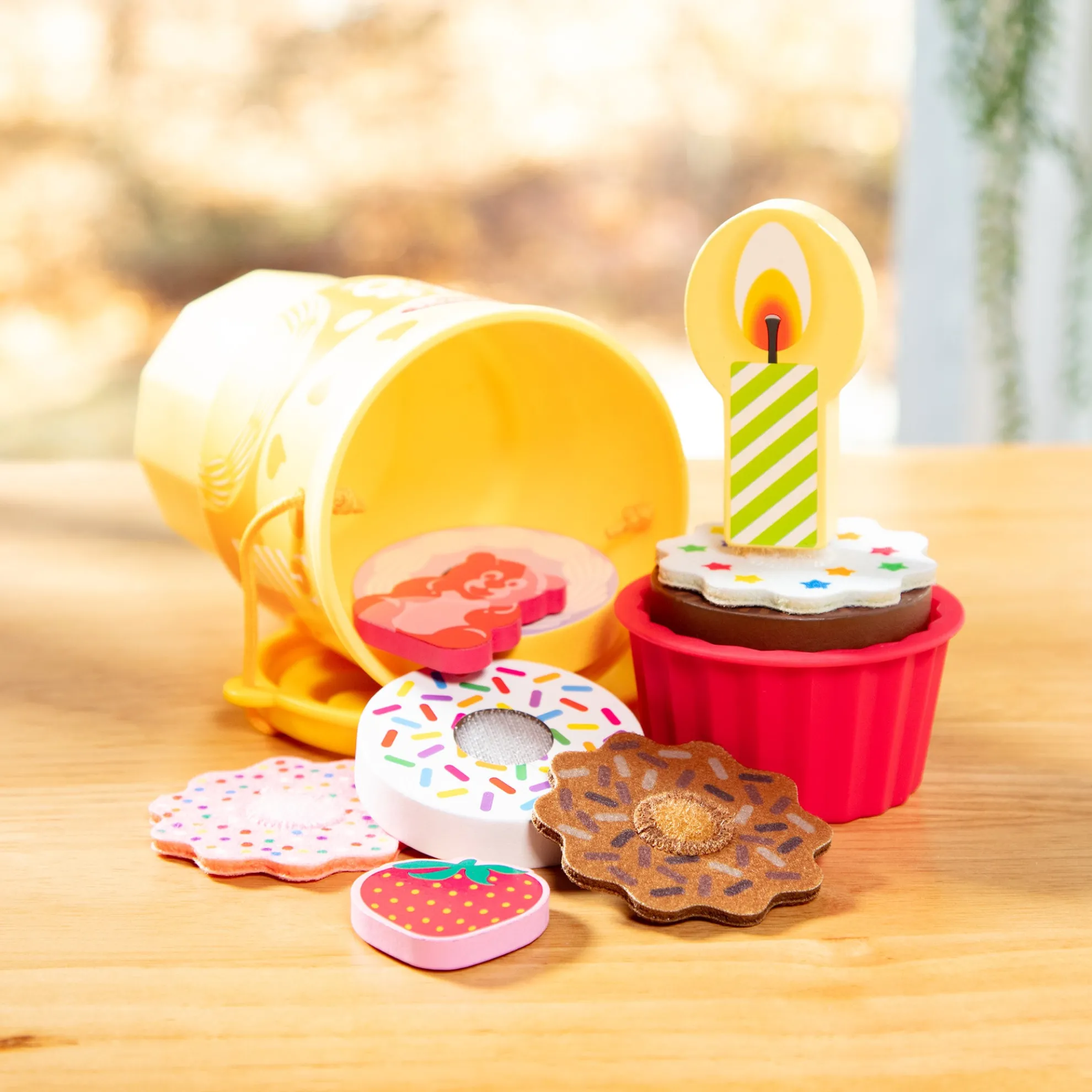- Create deliciously fun play cookies with felt icing and wooden candies, cupcakes in a pliable cupcake sleeve, and layer cakes topped with a wooden candle for celebrating with this cup full of “sweet” play food