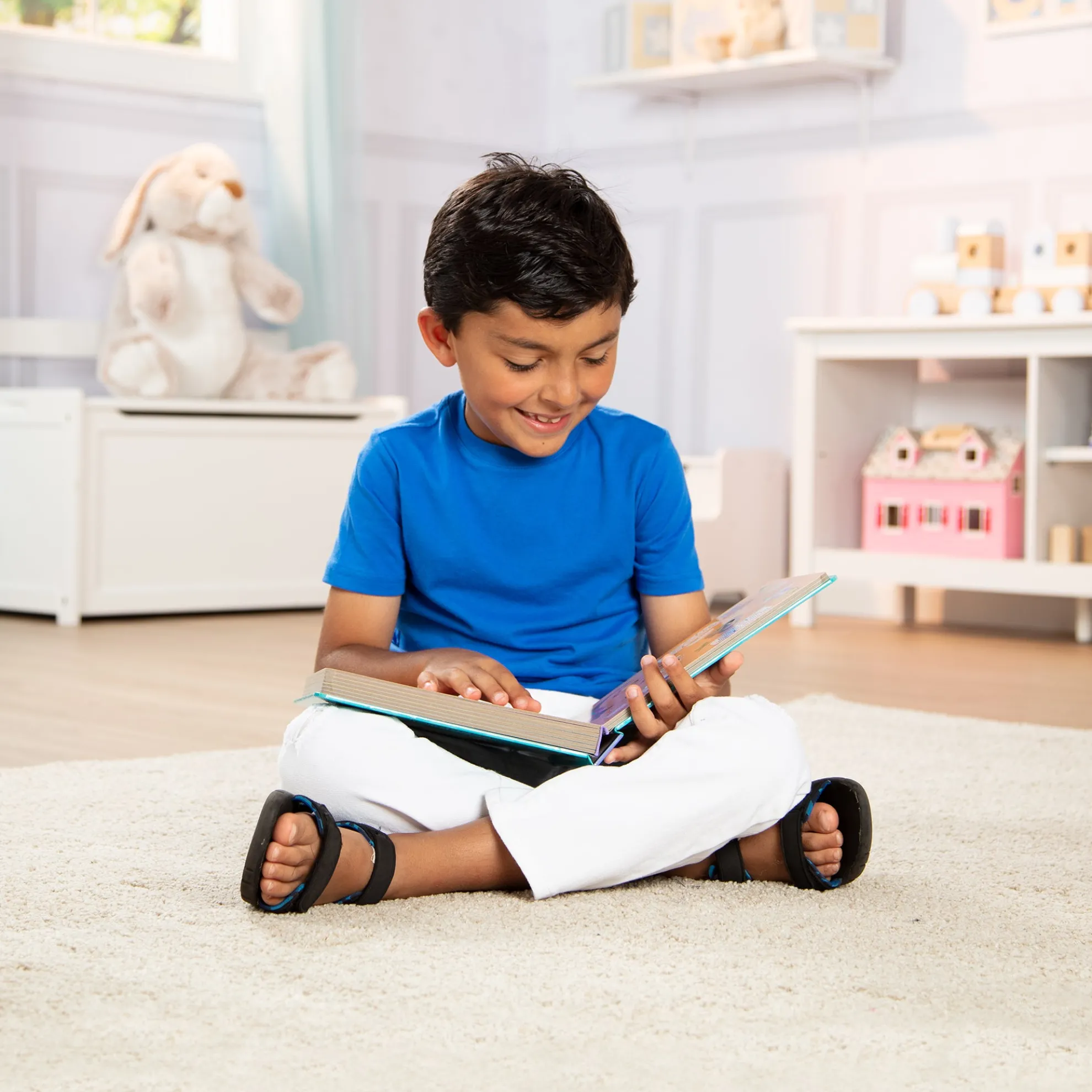 I spy some dots and I can’t stop popping! Poke the irresistible click-to-count buttons to hear satisfying “clicks” and “pops” as you spot a whole alphabet of objects from A to Z! This sturdy 20-page interactive board book invites kids to pop along as they play “Eye Spy” and learn their ABCs along the way. Poke-a-Dot® books help encourage language development, counting, and fine motor skills. Patented Pop-a-Tronic™ technology lets kids discover different popping sounds by poking the dots from the front or the back, with pages raised or flat! This product is certified by the Forest Stewardship Council. FSC certification ensures that products come from responsibly managed forests that provide environmental, social, and economic benefits, and that forests are protected for future generations. Please note that FSC certification applies to new inventory only (FSC C156584)
