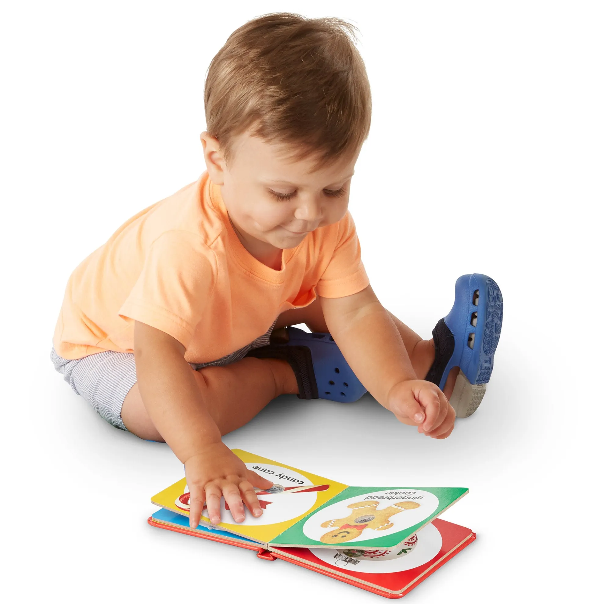 Welcome, Christmastime! See the pictures, say the words, and poke the irresistible buttons on every page to hear satisfying “clicks” and “pops.” This sturdy 10-page interactive board book invites kids to pop along as they explore the full-color Christmas holiday-themed photographs! Poke-a-Dot® books help encourage language development and fine motor skills. Patented Pop-a-Tronic™ technology lets kids one and older discover different popping sounds by poking the dots from the front or the back, with pages raised or flat!