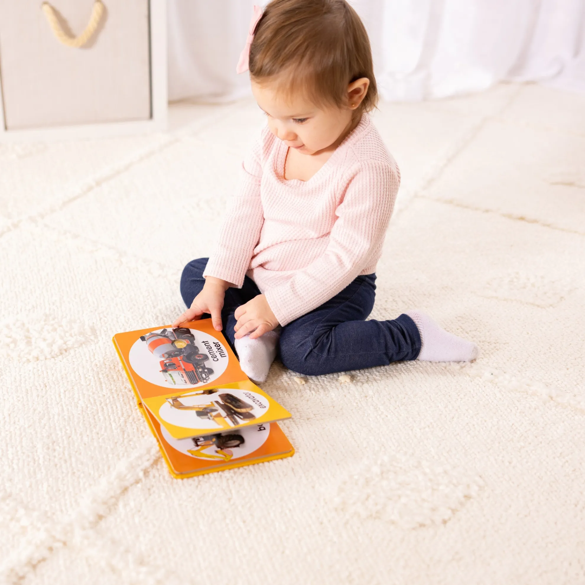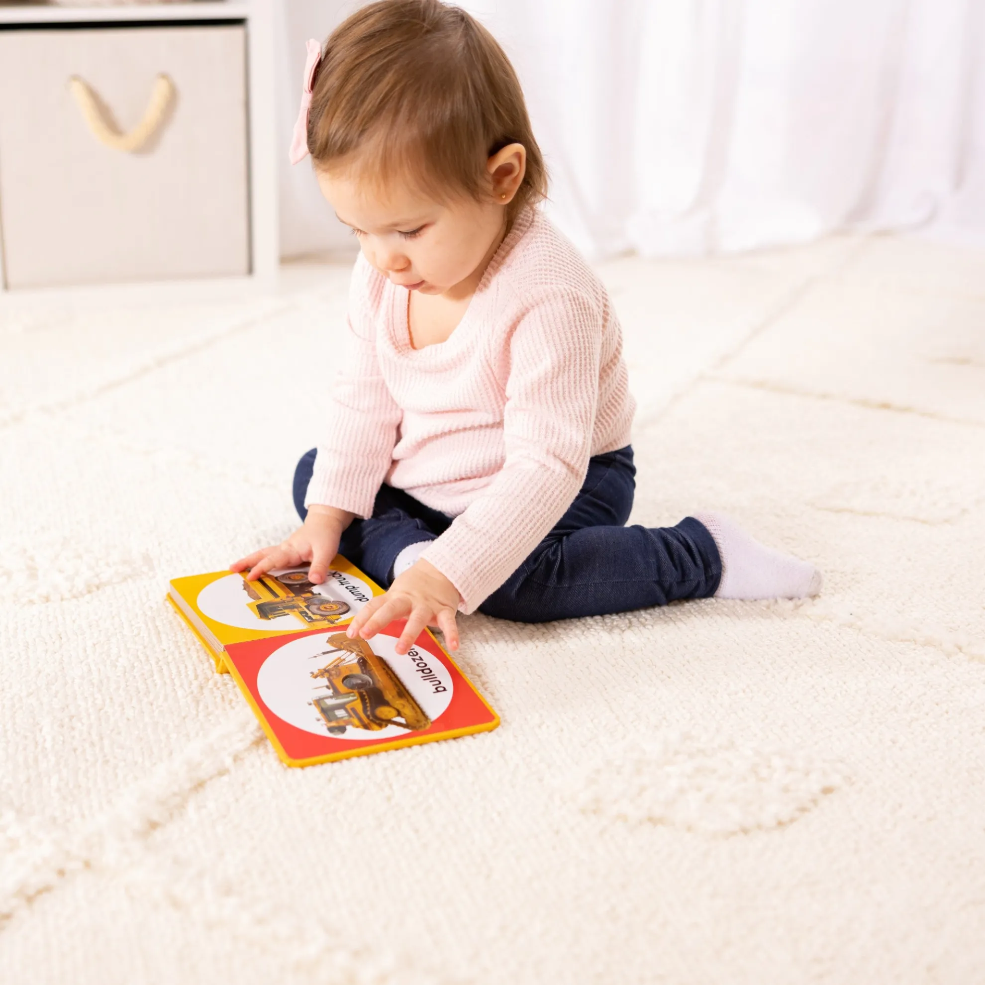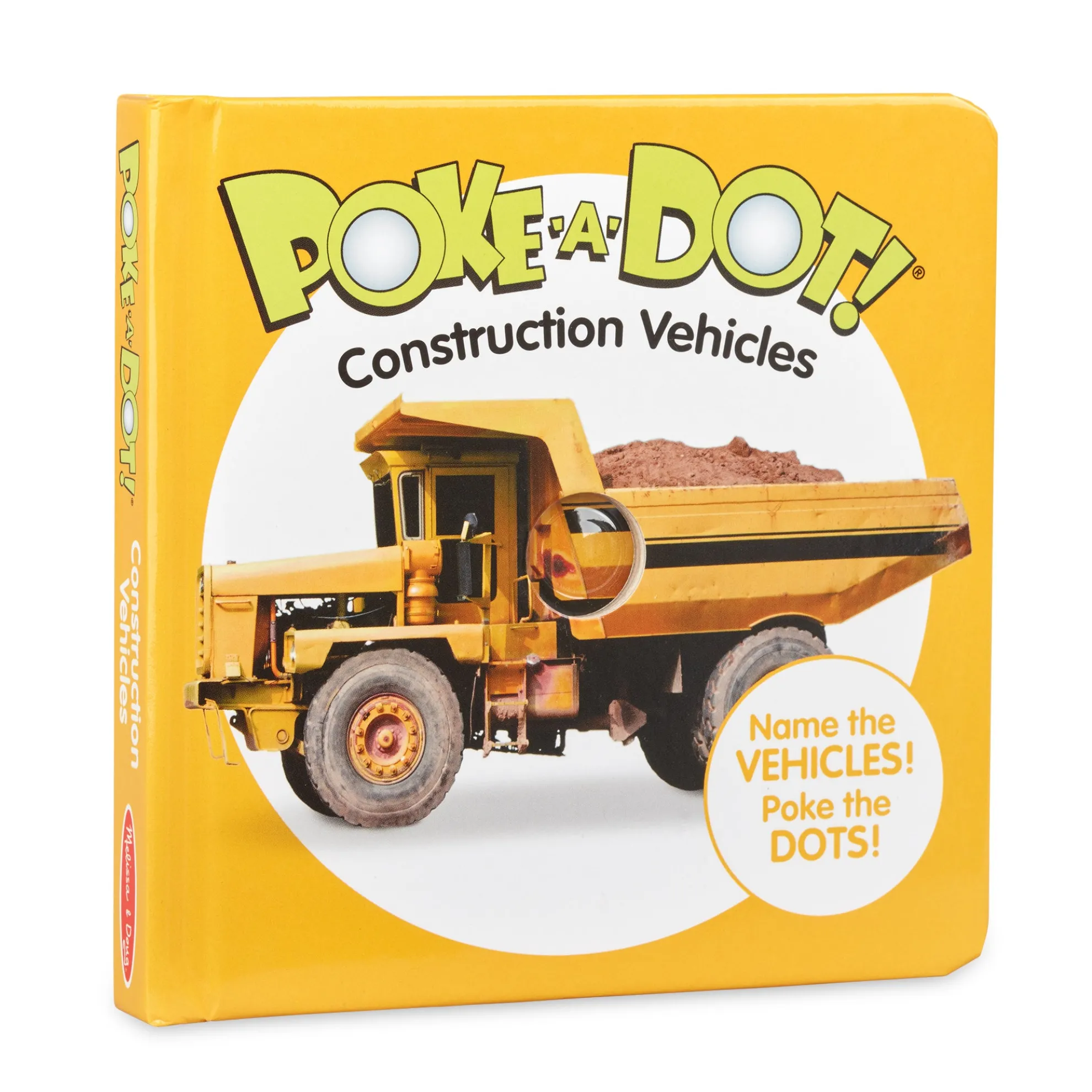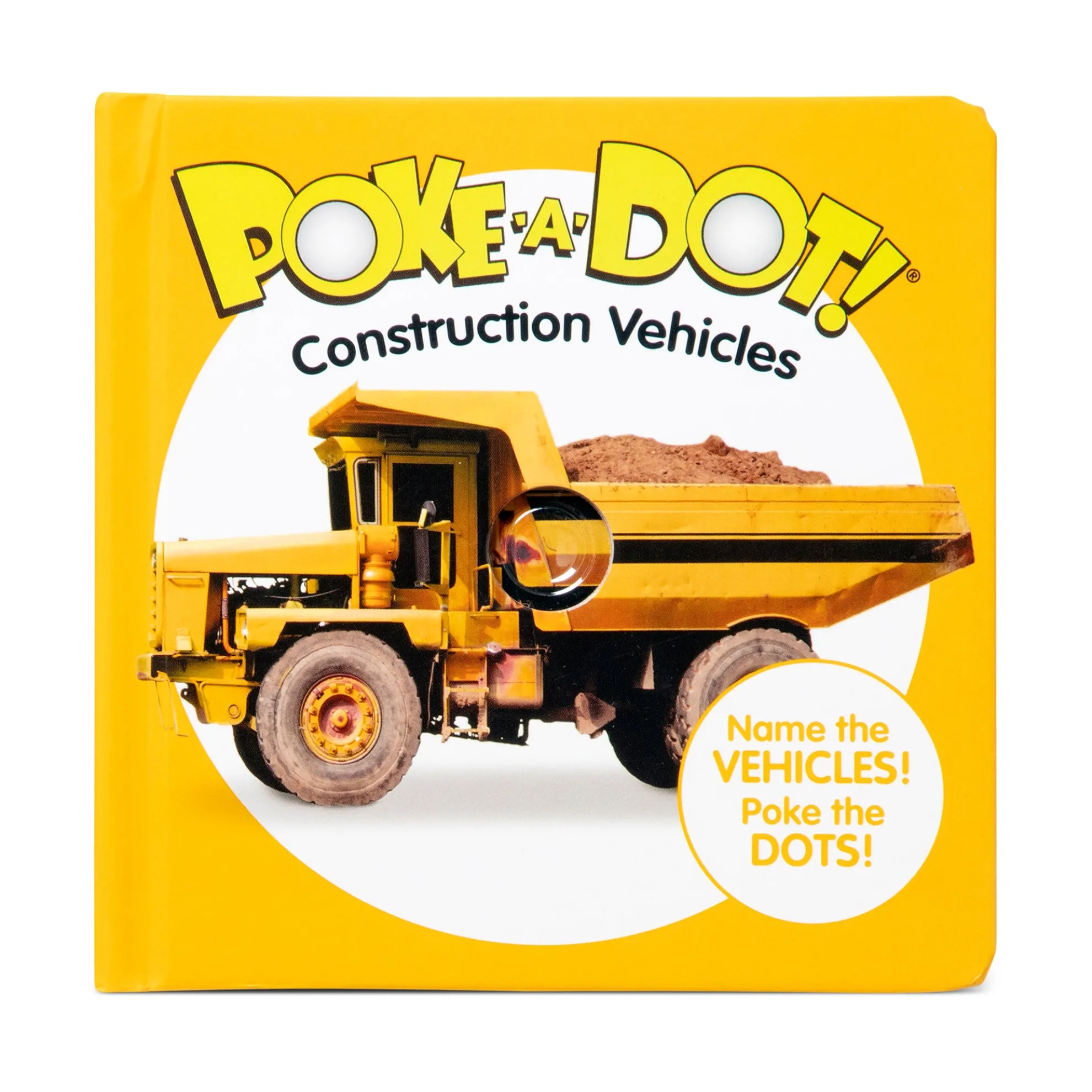 Dig in to the exciting world of construction vehicles! See the pictures, name the vehicles, and poke the irresistible buttons on every page to hear satisfying “clicks” and “pops.” This sturdy 10-page interactive board book invites kids to pop along as they explore full-color photographs of construction vehicles (an excavator, dump truck, backhoe, etc.). Poke-a-Dot® books help encourage language development, animal recognition, and fine motor skills. Patented Pop-a-Tronic™ technology lets kids one and older discover different popping sounds by poking the dots from the front or the back, with pages raised or flat!