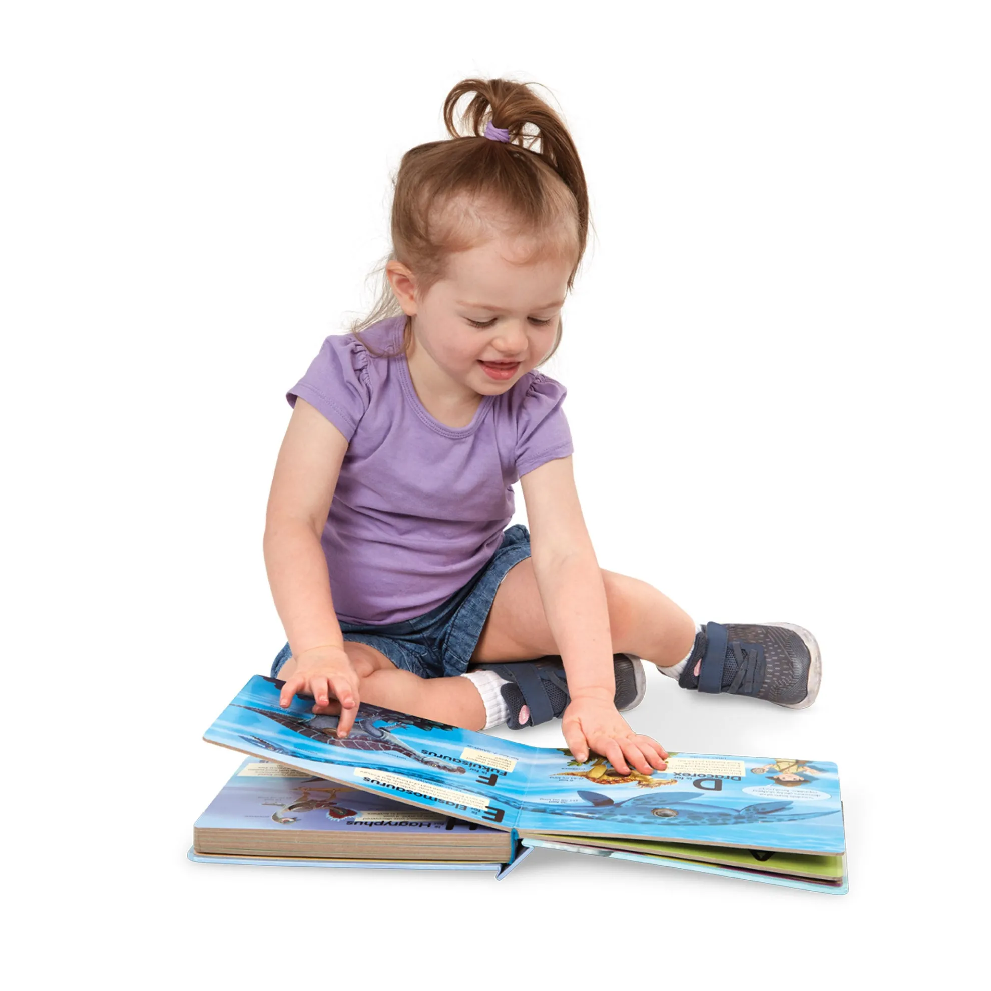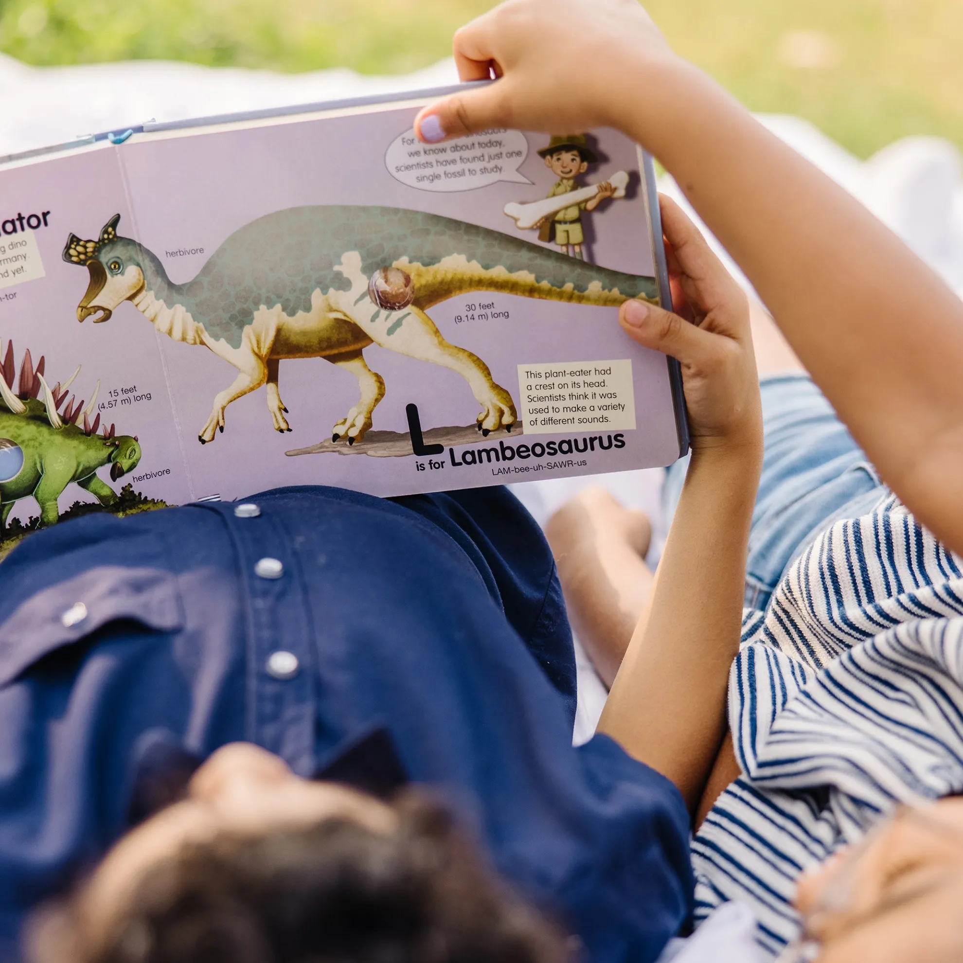 Get ready for some DINO-mite fun! Poke the irresistible click-to-count buttons to hear satisfying “clicks” and “pops” as you learn about dinosaurs from A to Z! This sturdy 20-page interactive board book invites kids to pop along as they discover the amazing world of dinosaurs and learn fun facts along the way. Poke-a-Dot® books help encourage language development, counting, and fine motor skills. Patented Pop-a-Tronic™ technology lets kids discover different popping sounds by poking the dots from the front or the back, with pages raised or flat! This product is certified by the Forest Stewardship Council. FSC certification ensures that products come from responsibly managed forests that provide environmental, social, and economic benefits, and that forests are protected for future generations. Please note that FSC certification applies to new inventory only (FSC C156584)