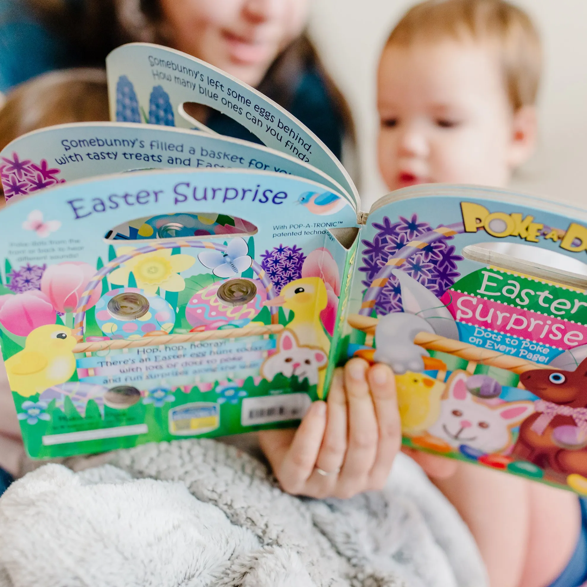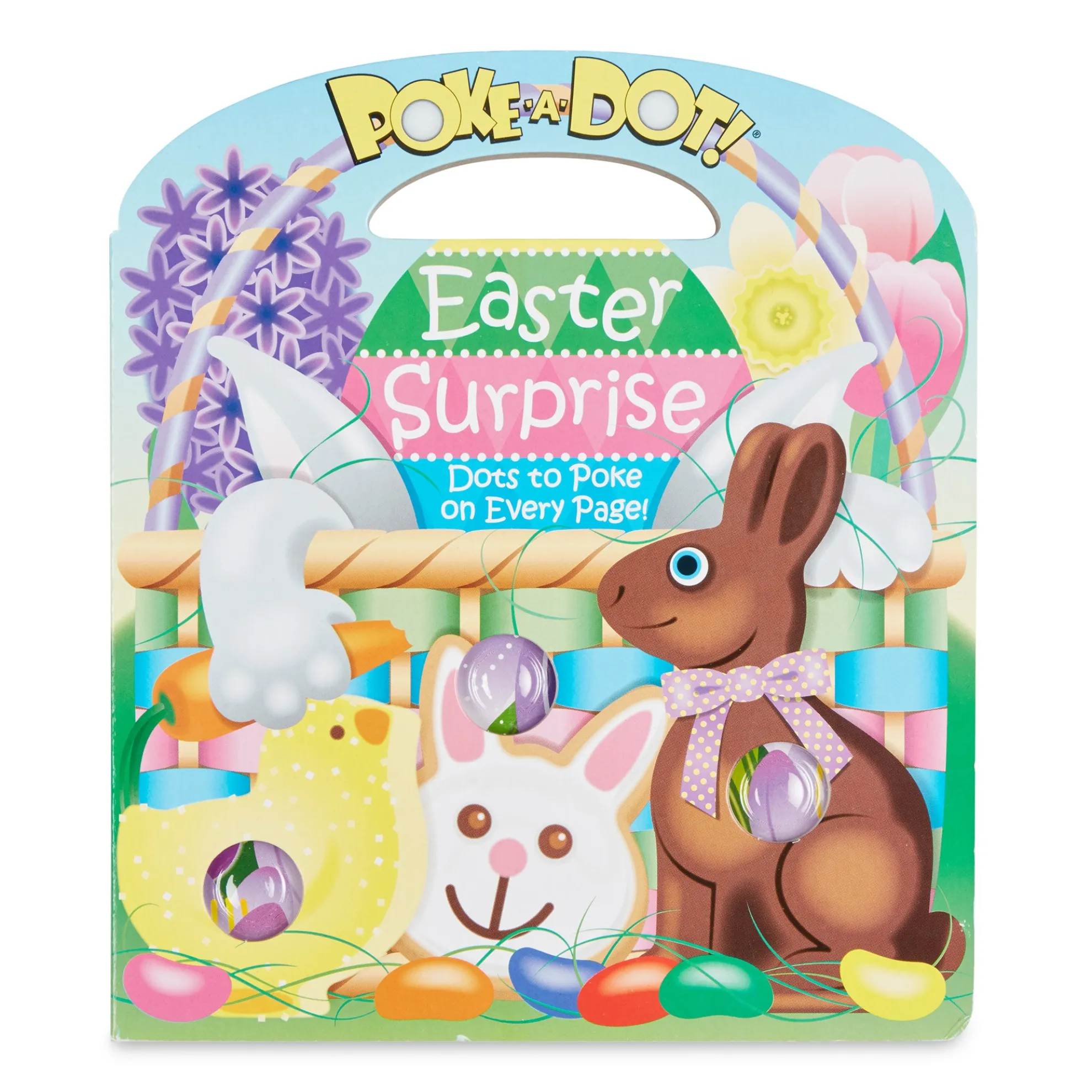Welcome, Easter! Find the Easter eggs in different colors and poke the irresistible buttons on every page to hear satisfying “clicks” and “pops.” This sturdy 10-page interactive board book with a built-in handle invites kids to pop along as they explore the full-color Easter-themed illustrations! Poke-a-Dot® books help encourage language development and fine motor skills. Patented Pop-a-Tronic™ technology lets kids one and older discover different popping sounds by poking the dots from the front or the back, with pages raised or flat!