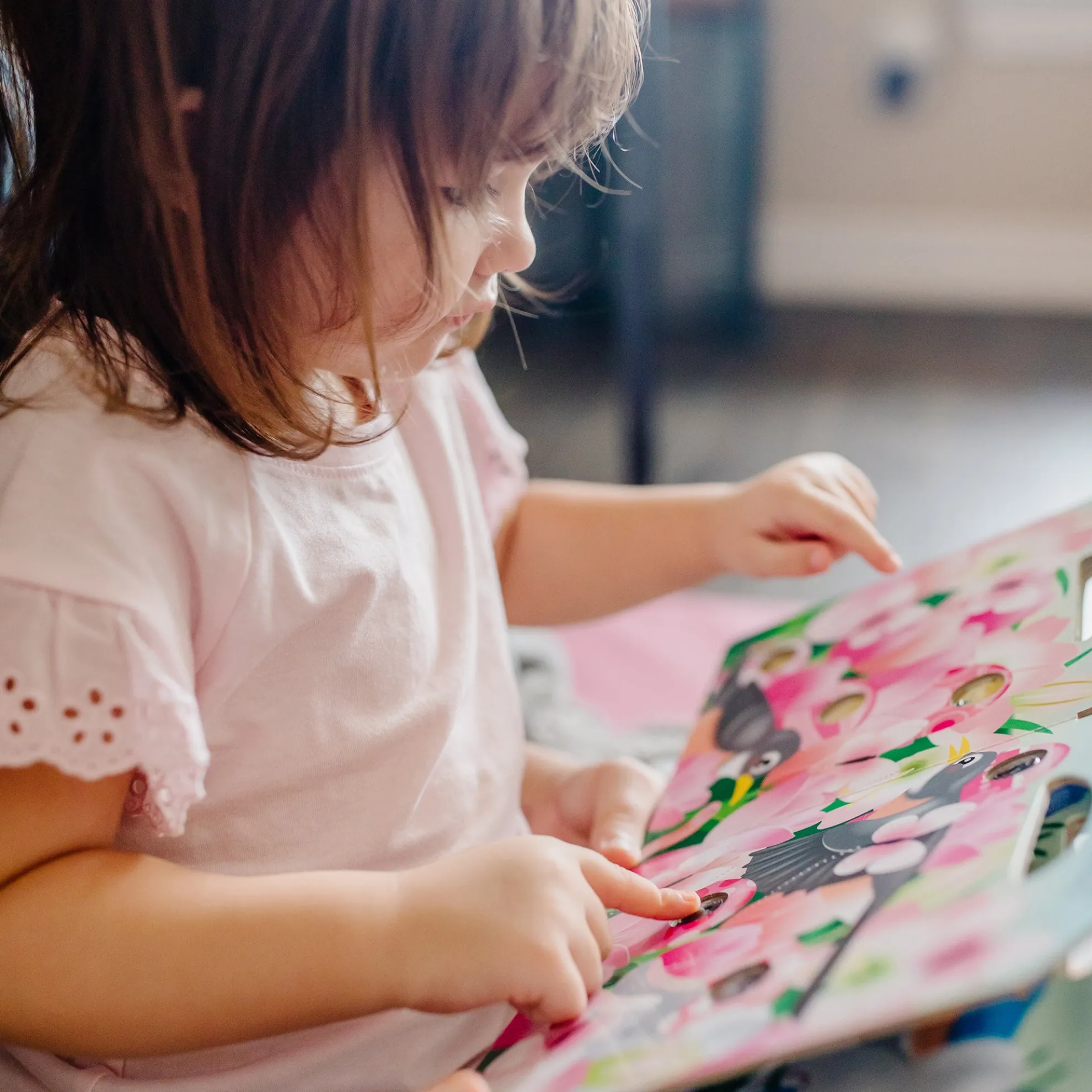 - 10-page interactive sturdy board book with buttons to press and “pop” on every page; built-in handle makes it great for travel