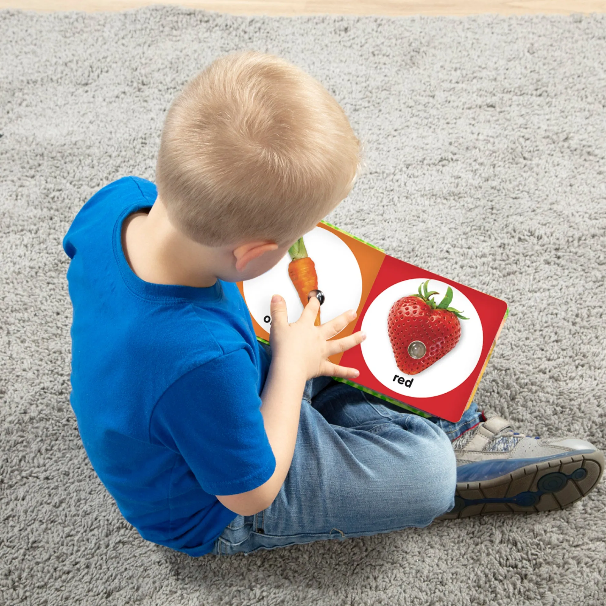 From an orange carrot and a red strawberry to a pink flower and a green leaf, kids will love discovering all the colors of the rainbow in everyday objects! See the pictures, name the colors, and poke the irresistible buttons on every page to hear satisfying “clicks” and “pops.” This sturdy 10-page interactive board book invites kids to pop along as they explore full-color photographs of familiar objects and their colors. Poke-a-Dot® books help encourage language development, shape and color recognition, and fine motor skills. Patented Pop-a-Tronic™ technology lets kids one and older discover different popping sounds by poking the dots from the front or the back, with pages raised or flat! This product is certified by the Forest Stewardship Council. FSC certification ensures that products come from responsibly managed forests that provide environmental, social, and economic benefits, and that forests are protected for future generations. Please note that FSC certification applies to new inventory only (FSC C156584)