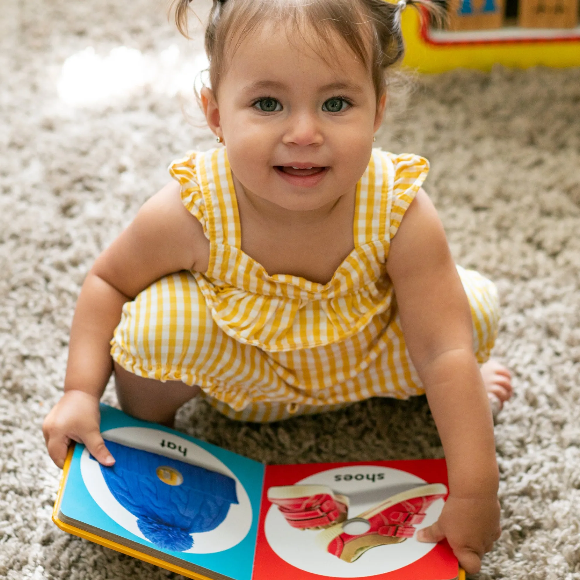 - 10-page interactive sturdy board book with buttons to press and “pop” on every page