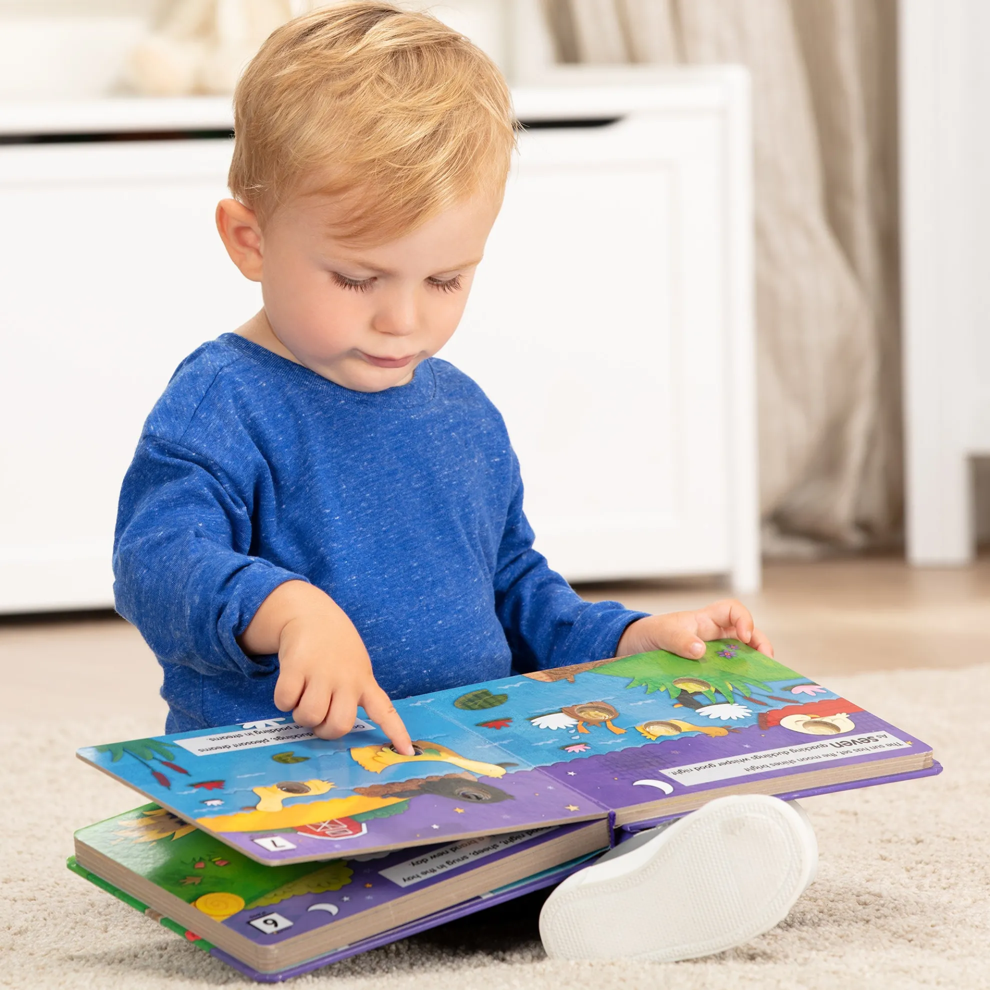 Counting sheep (and other animals) has never been so much fun! Poke the irresistible buttons to hear satisfying “clicks” and “pops” as you count down to bedtime for all the sleepy animals. This sturdy 20-page interactive board book invites kids to “pop” all the adorable animals into their cozy beds for the night. Poke-a-Dot® books help encourage language development, counting, and fine motor skills. Patented Pop-a-Tronic™ technology lets kids discover different popping sounds by poking the dots from the front or the back, with pages raised or flat! This product is certified by the Forest Stewardship Council. FSC certification ensures that products come from responsibly managed forests that provide environmental, social, and economic benefits, and that forests are protected for future generations. Please note that FSC certification applies to new inventory only (FSC C156584)