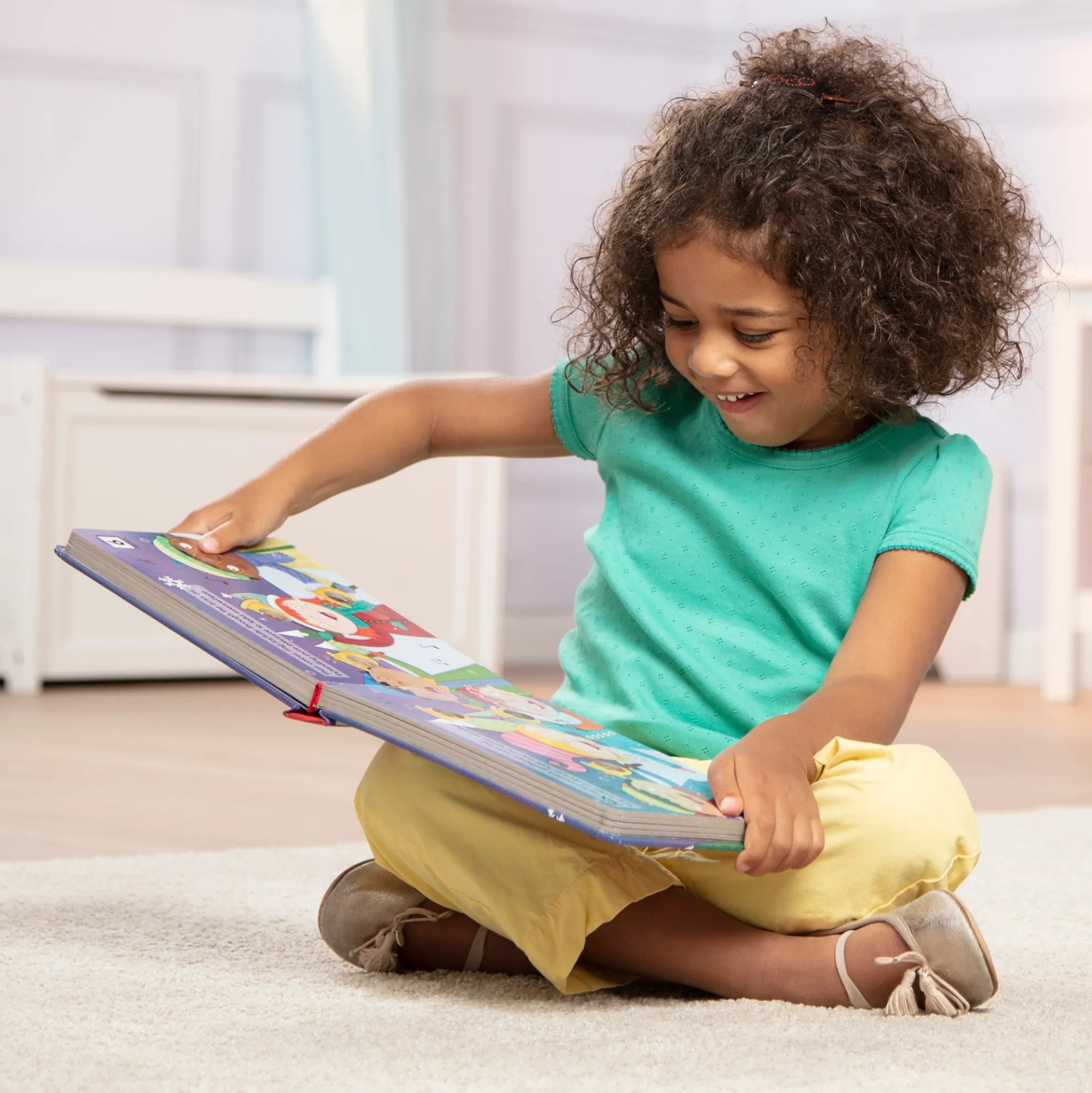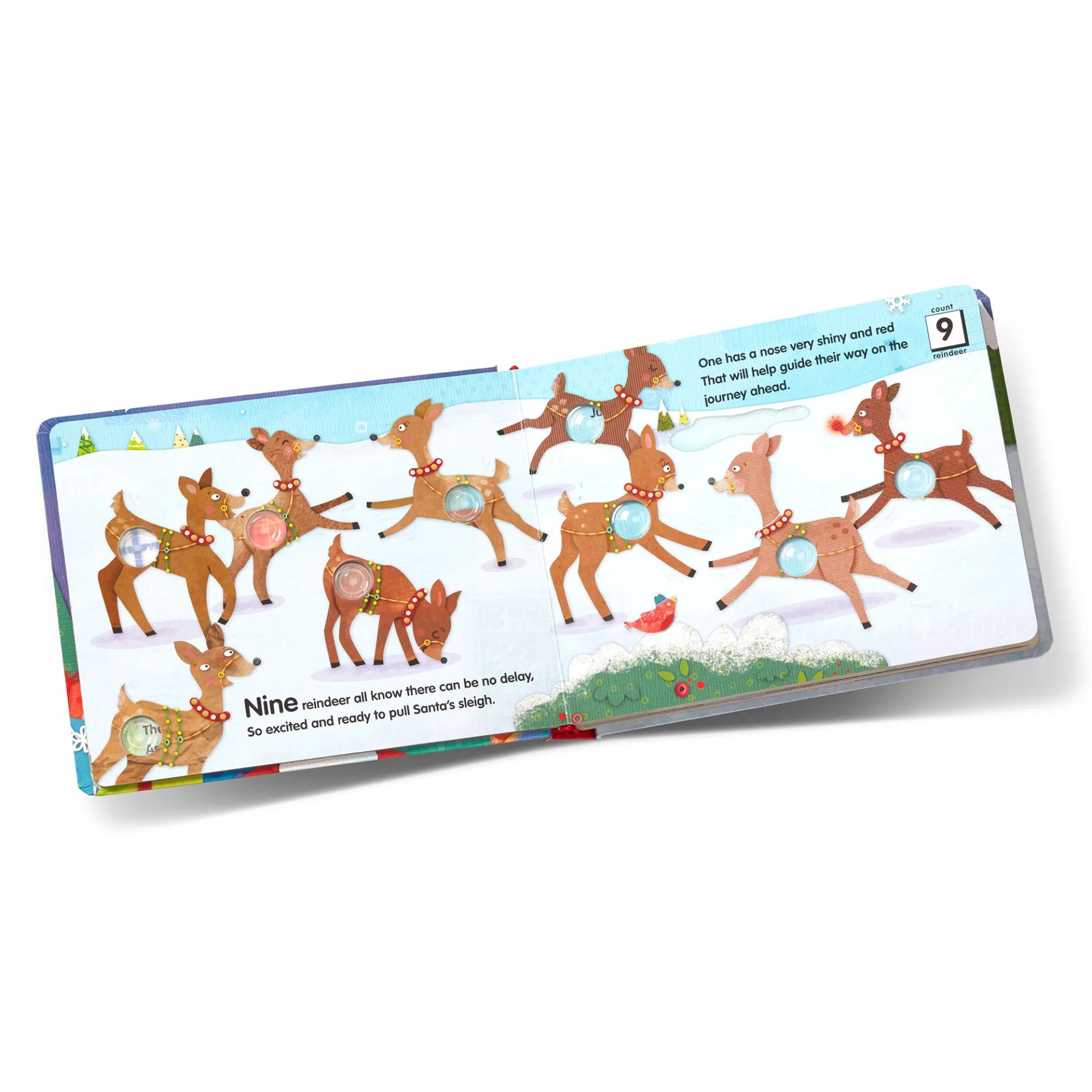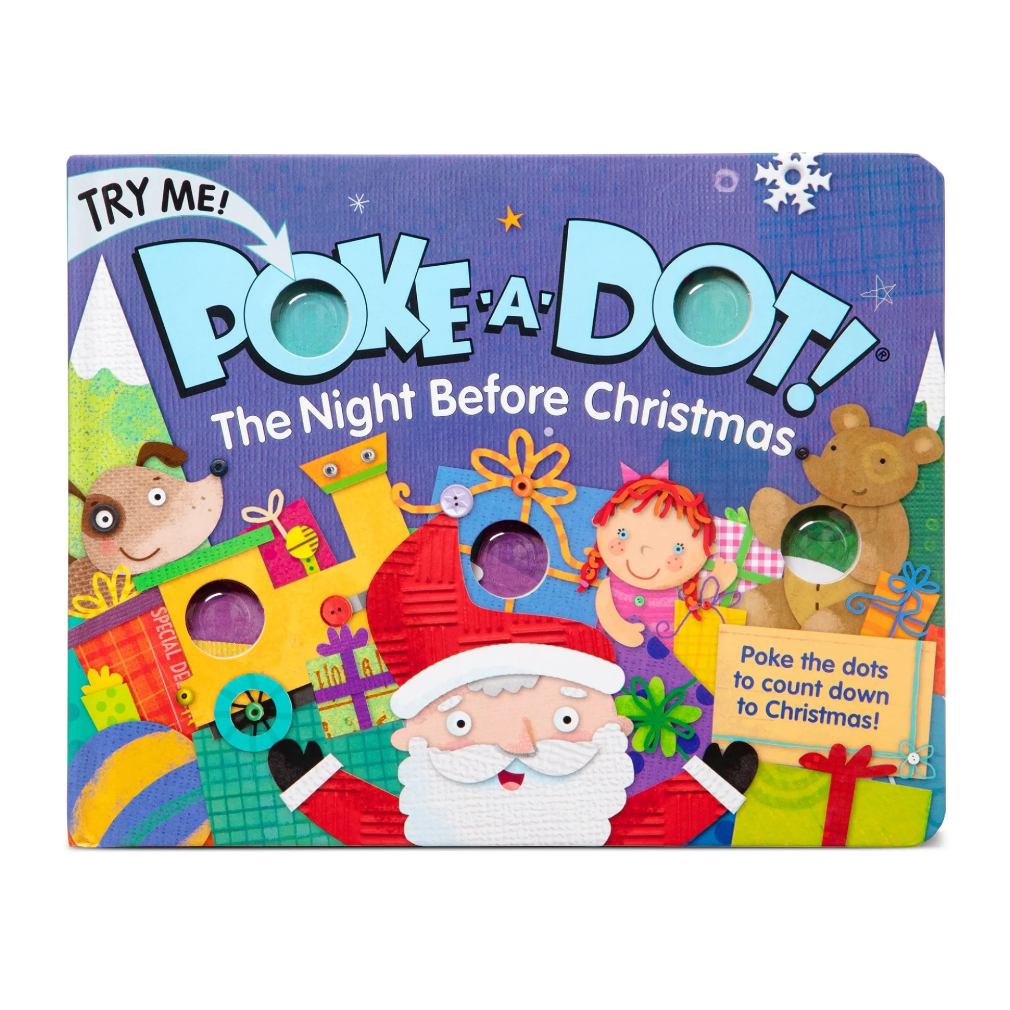 On the night before Christmas, all through the town…there could be heard many loud popping sounds! Poke the irresistible buttons to hear satisfying “clicks” and “pops” as you count down to Christmas. This sturdy 20-page interactive board book invites kids to experience the joys of Christmas Eve as they pop their way to Christmas day! Poke-a-Dot® books help encourage language development, counting, and fine motor skills. Patented Pop-a-Tronic™ technology lets kids discover different popping sounds by poking the dots from the front or the back, with pages raised or flat!