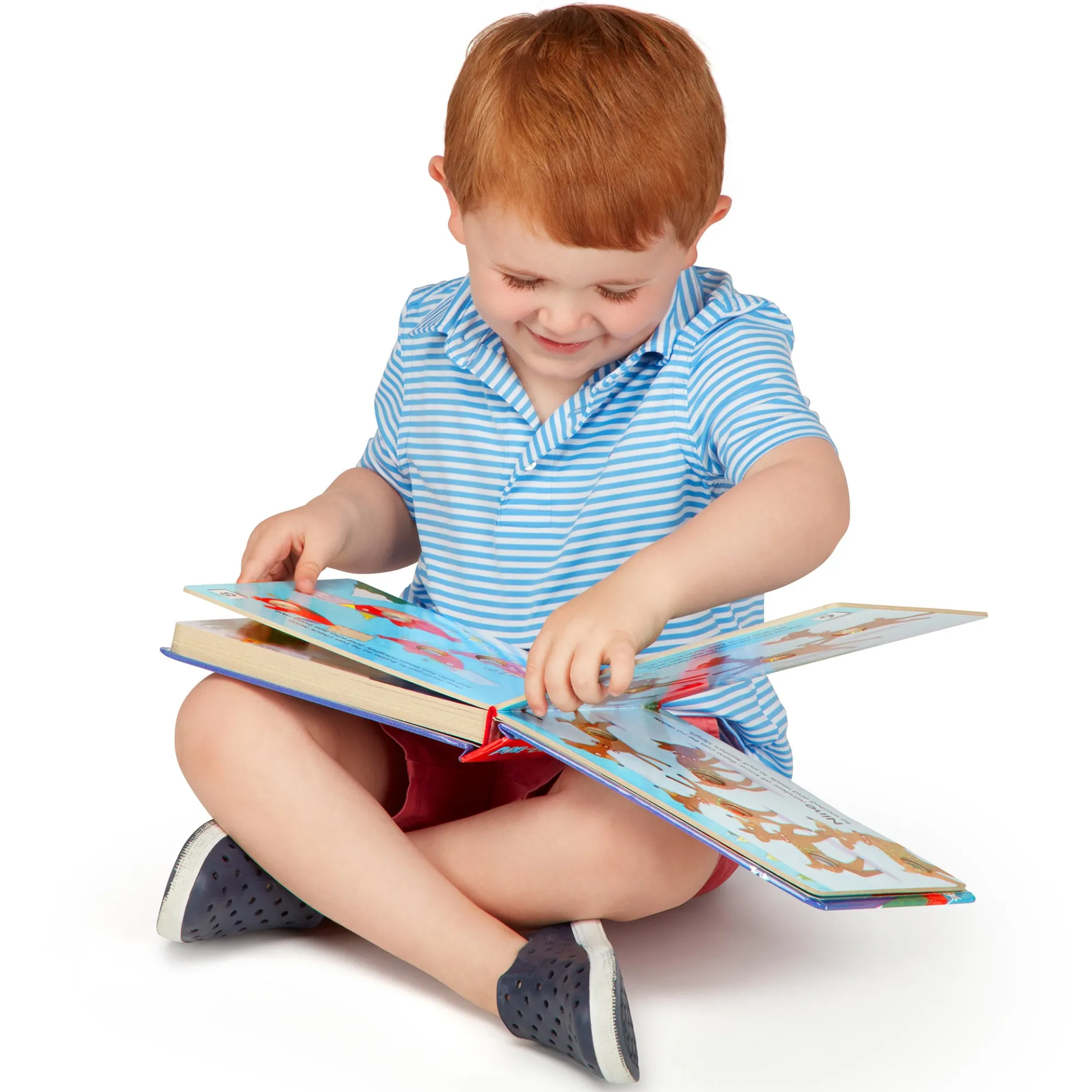 - 20-page interactive sturdy board book with buttons to press and “pop” on every page