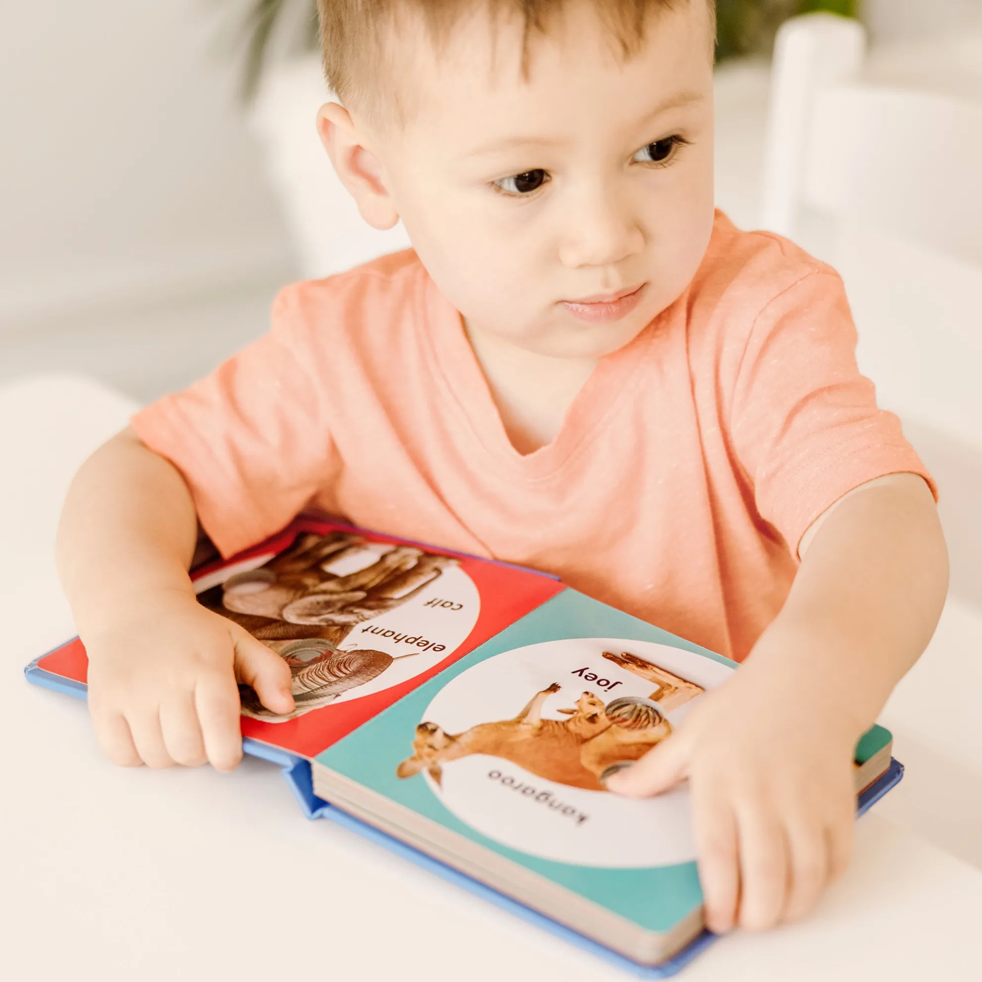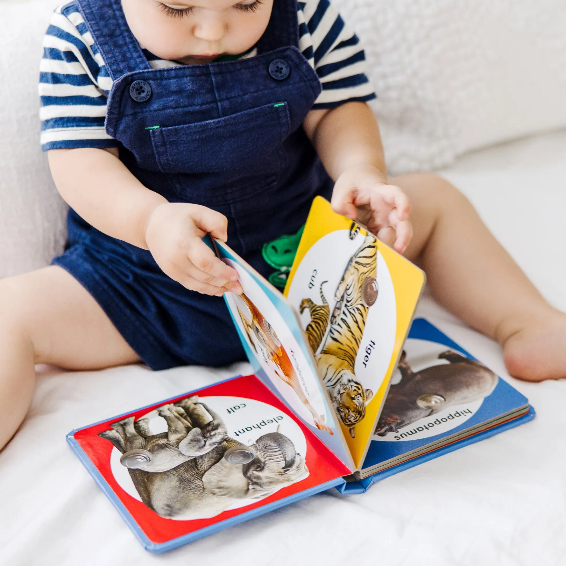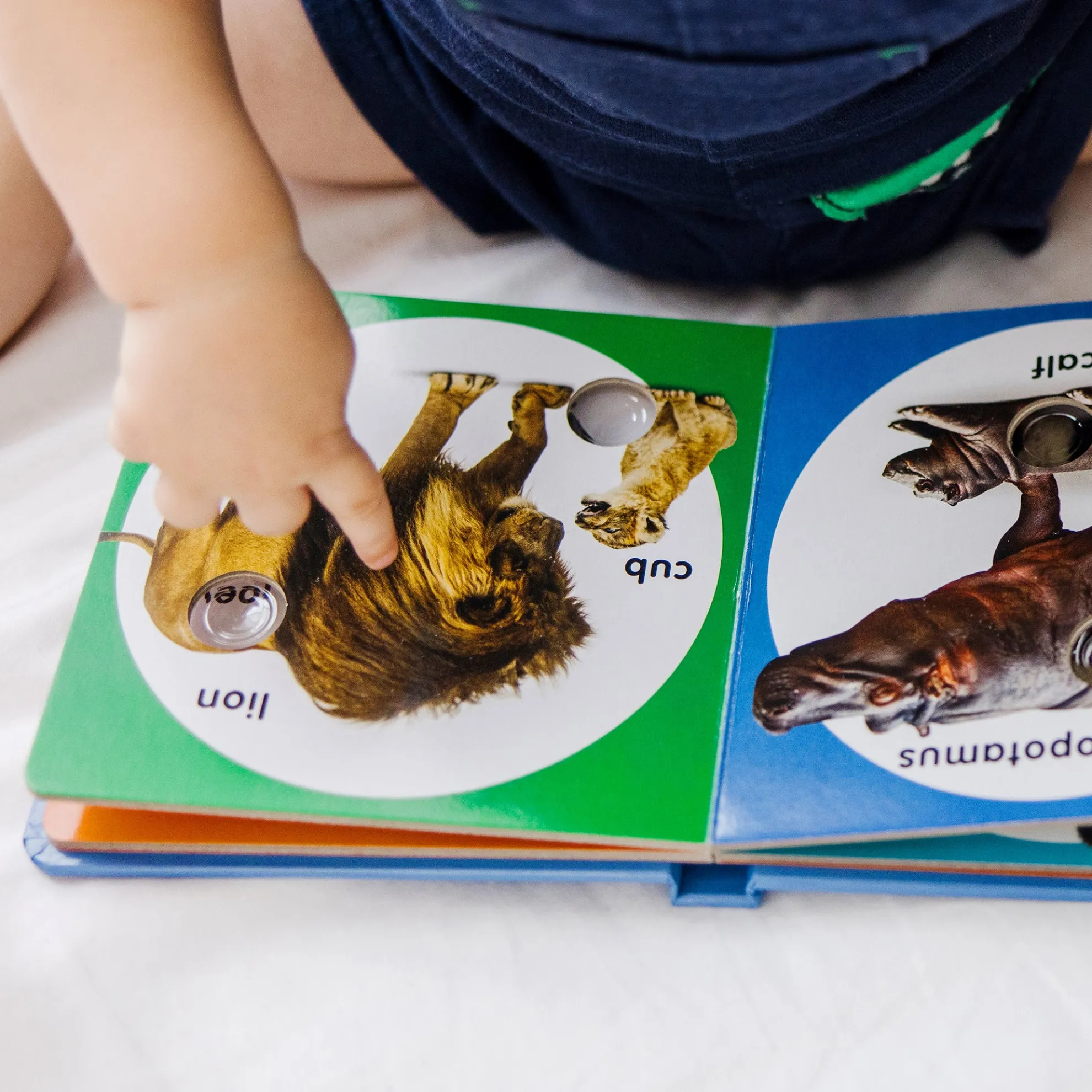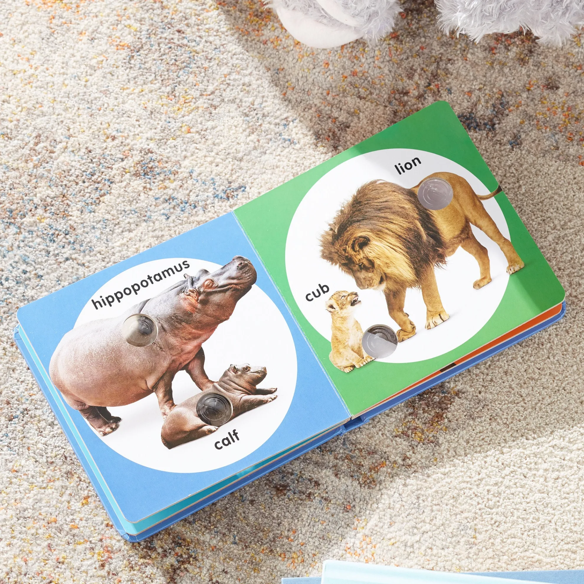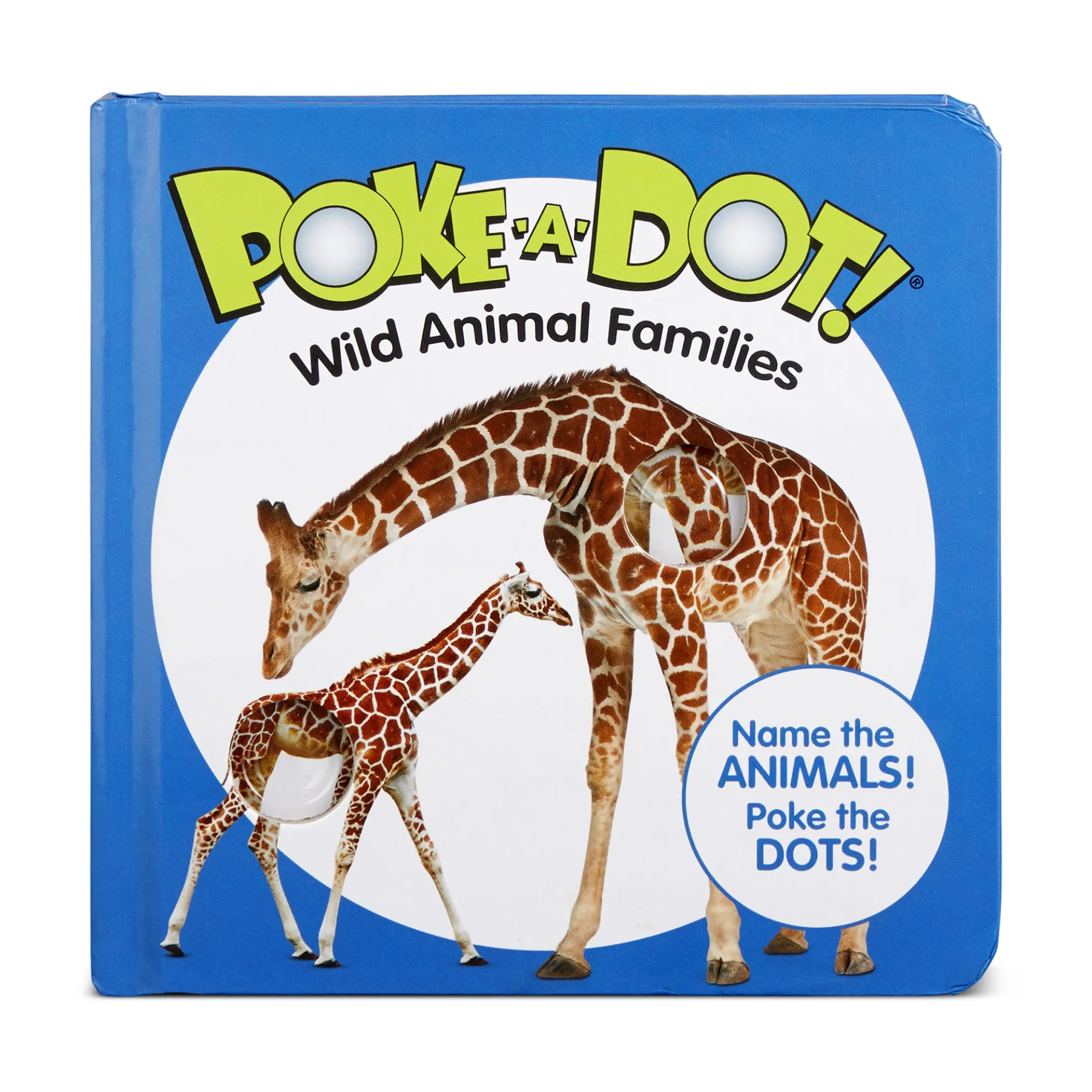 Kids will go wild when they discover these animal families! See the pictures, name the wild animals and their babies, and poke the irresistible buttons on every page to hear satisfying “clicks” and “pops.” This sturdy 10-page interactive board book invites kids to pop along as they explore full-color photographs of adorable wild animals and their babies (a panda and cub, kangaroo and joey, hippo and calf, etc.). Poke-a-Dot® books help encourage language development, animal recognition, and fine motor skills. Patented Pop-a-Tronic™ technology lets kids one and older discover different popping sounds by poking the dots from the front or the back, with pages raised or flat!