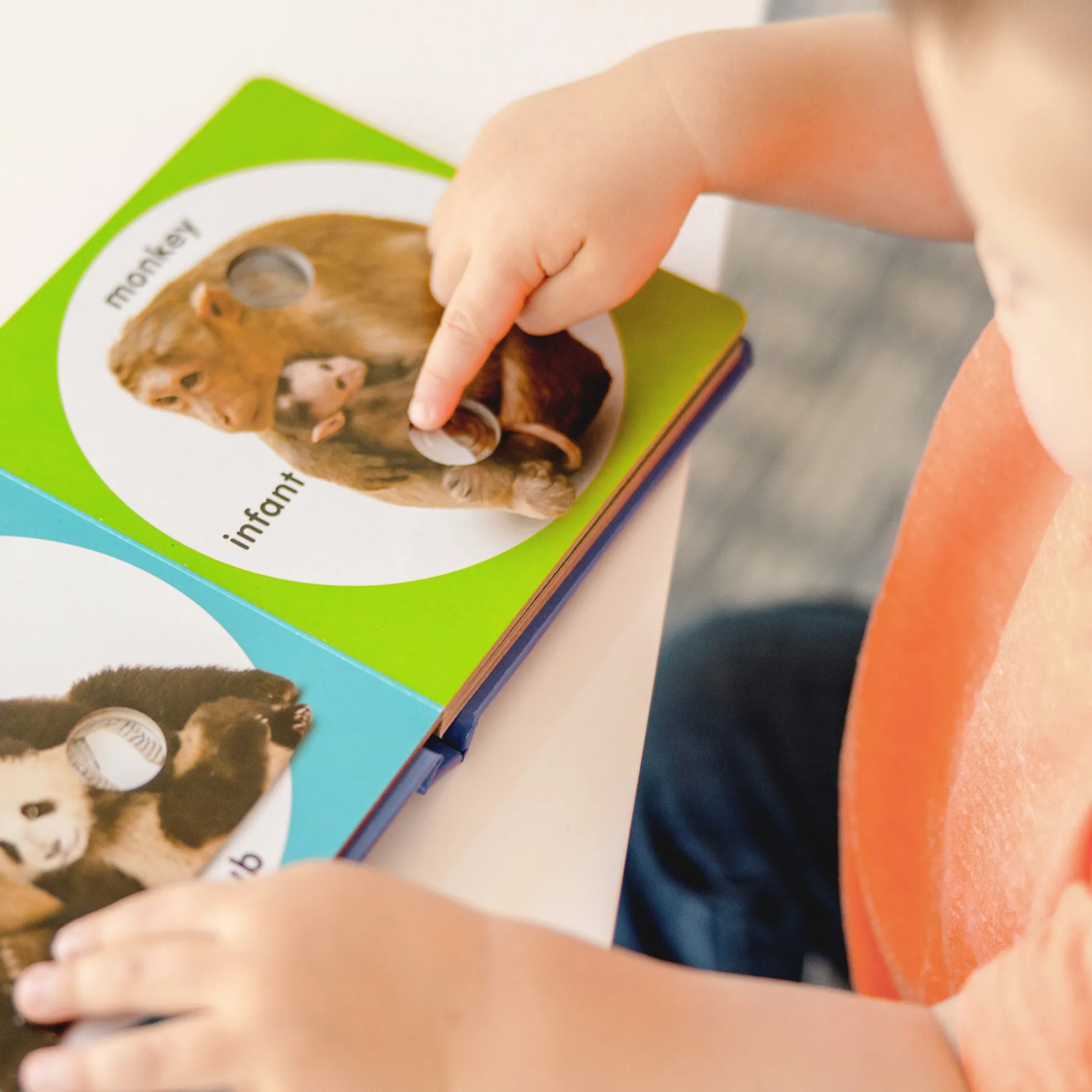 - Poke the dots while identifying full-color photos of wild animals and their babies (panda and cub, kangaroo and joey, hippo and calf, etc.)