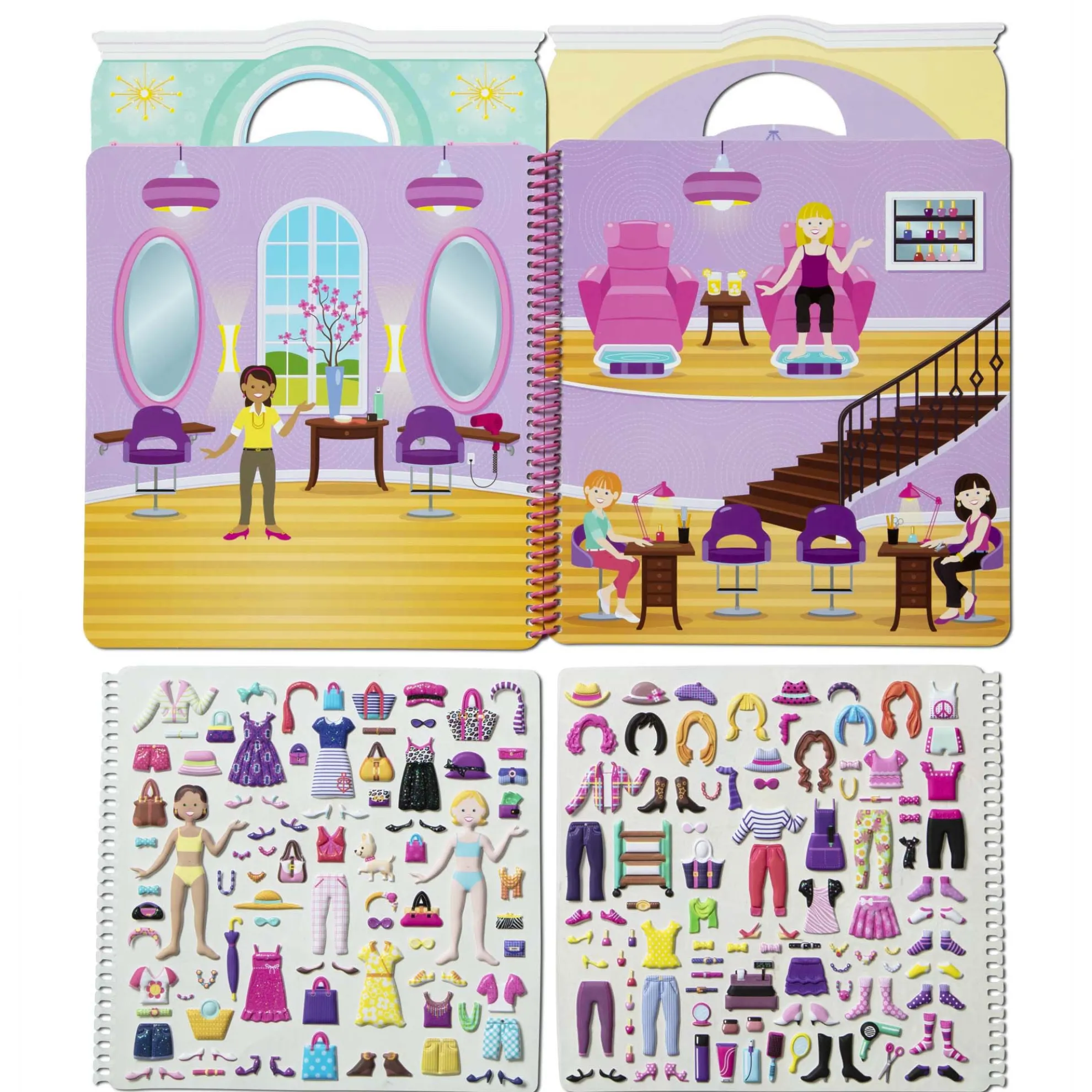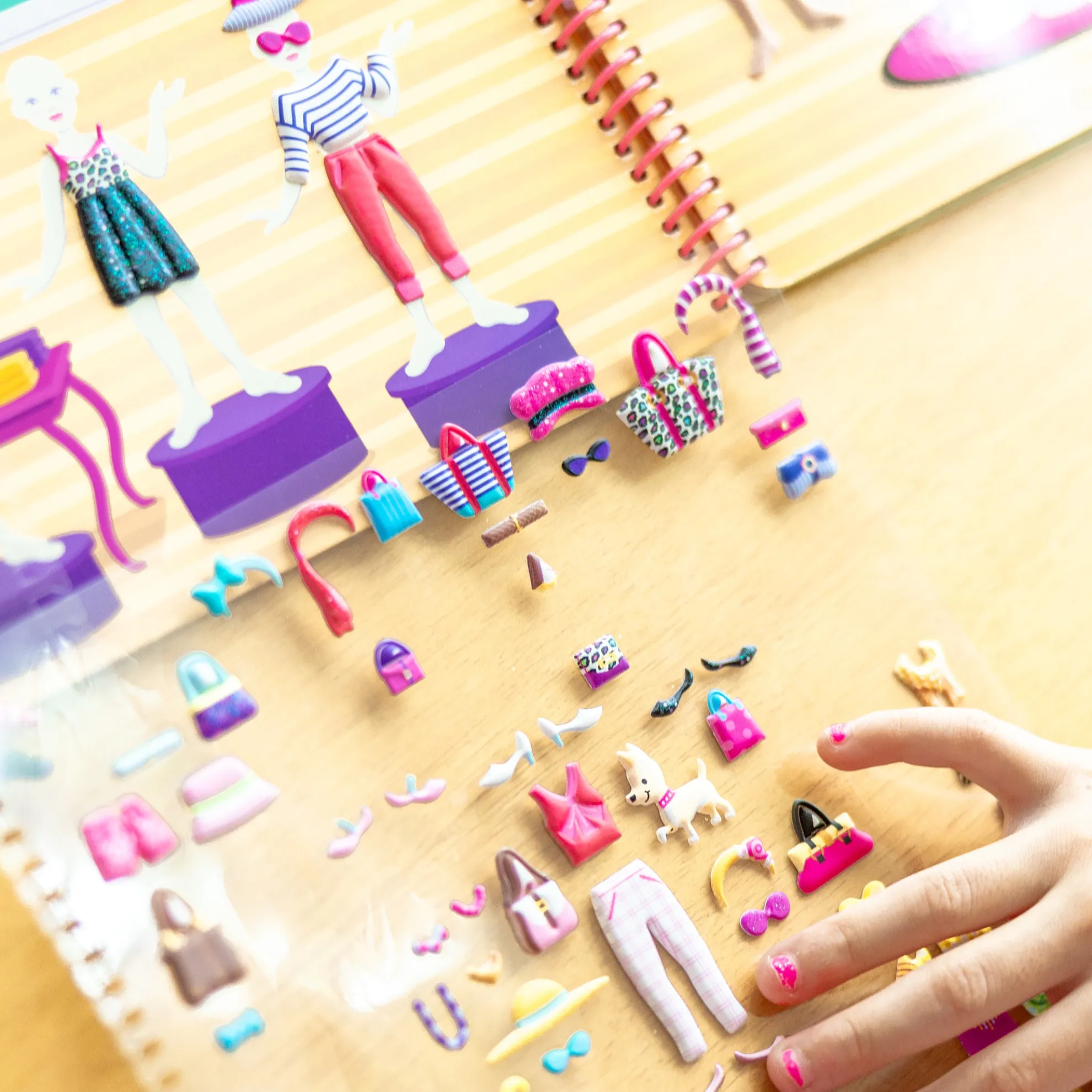 Day of Glamour Puffy Sticker Activity Book lets kids tell a sticker story filled with fashion fun! The spiral-bound book contains 10 sturdy background scenes, each one a fabulous backdrop for the characters to shop, relax, or be pampered. Character stickers can be layered with fashion stickers to create stylish ensembles that move with them through the book . . . or lift cleanly away to change outfits again and again. There are 196 stickers in all to fill the 10 reusable scenes, including a fashion boutique, shoe salon, spa, makeup counter, and more. Just open the book to be part of the fashion adventure! This product is certified by the Forest Stewardship Council. FSC certification ensures that products come from responsibly managed forests that provide environmental, social, and economic benefits, and that forests are protected for future generations. Please note that FSC certification applies to new inventory only (FSC C156584)
