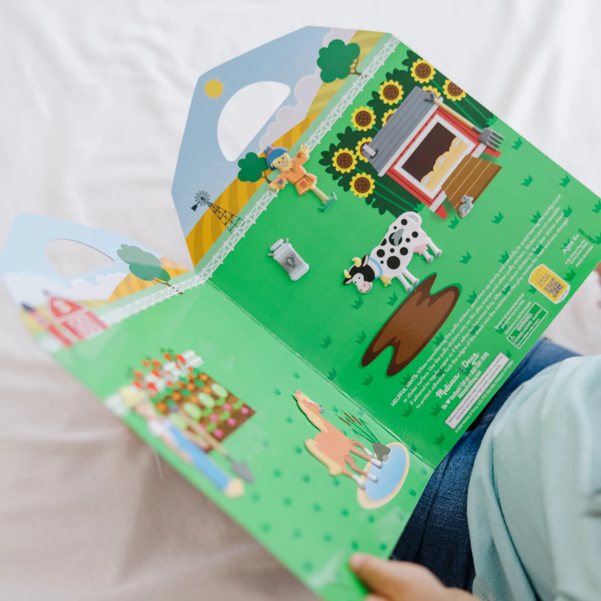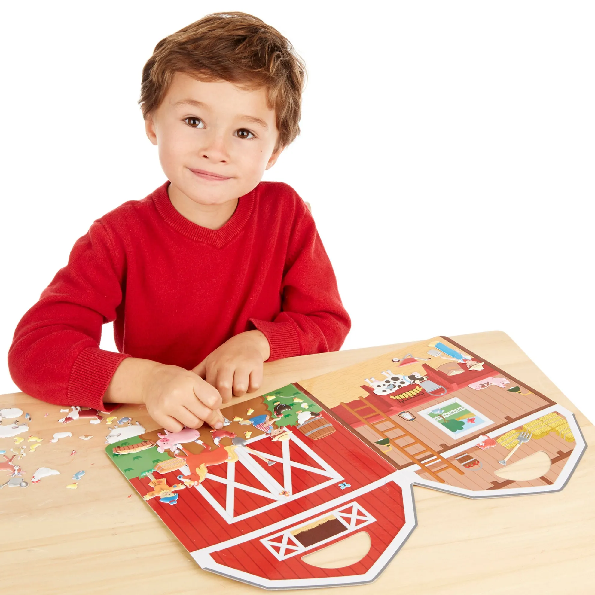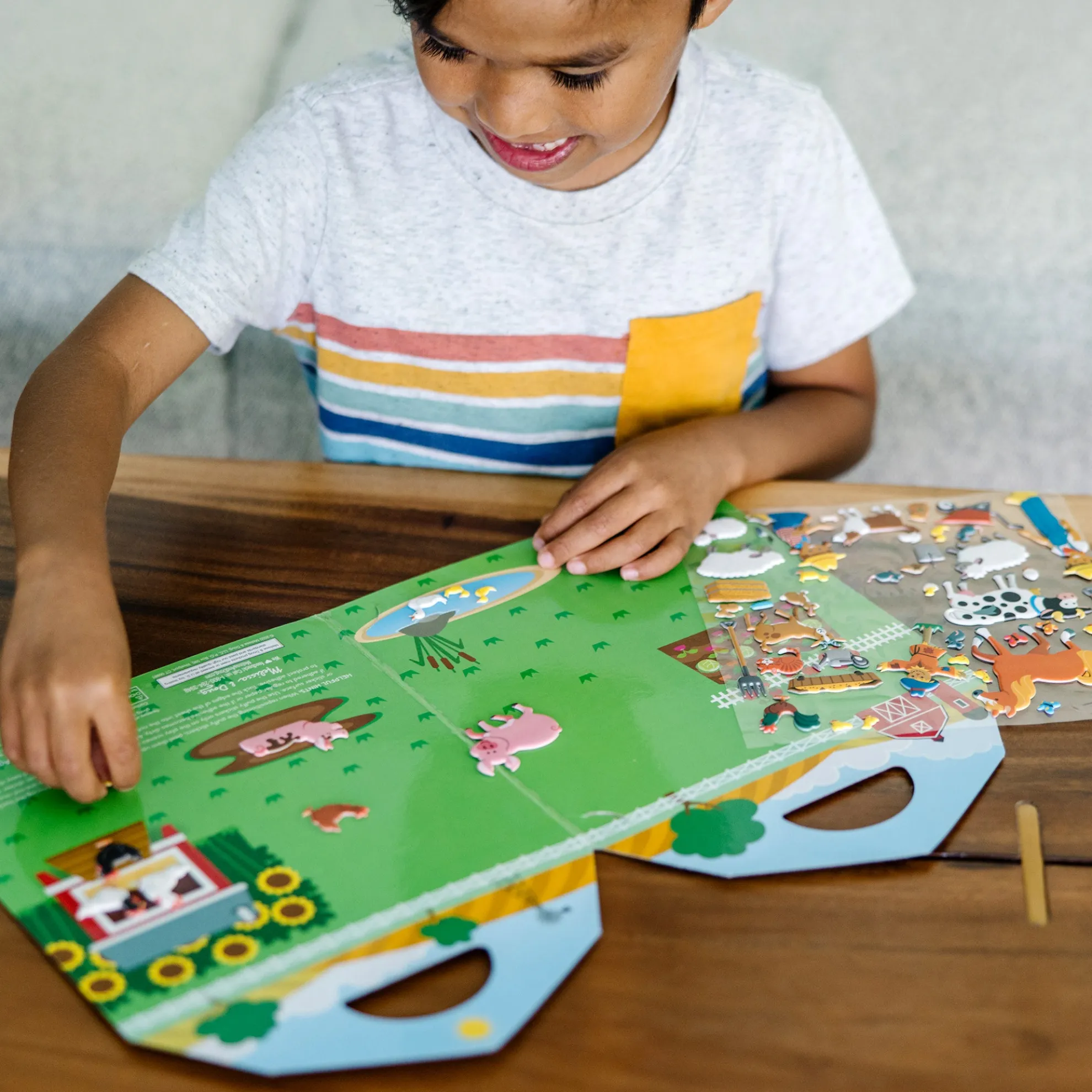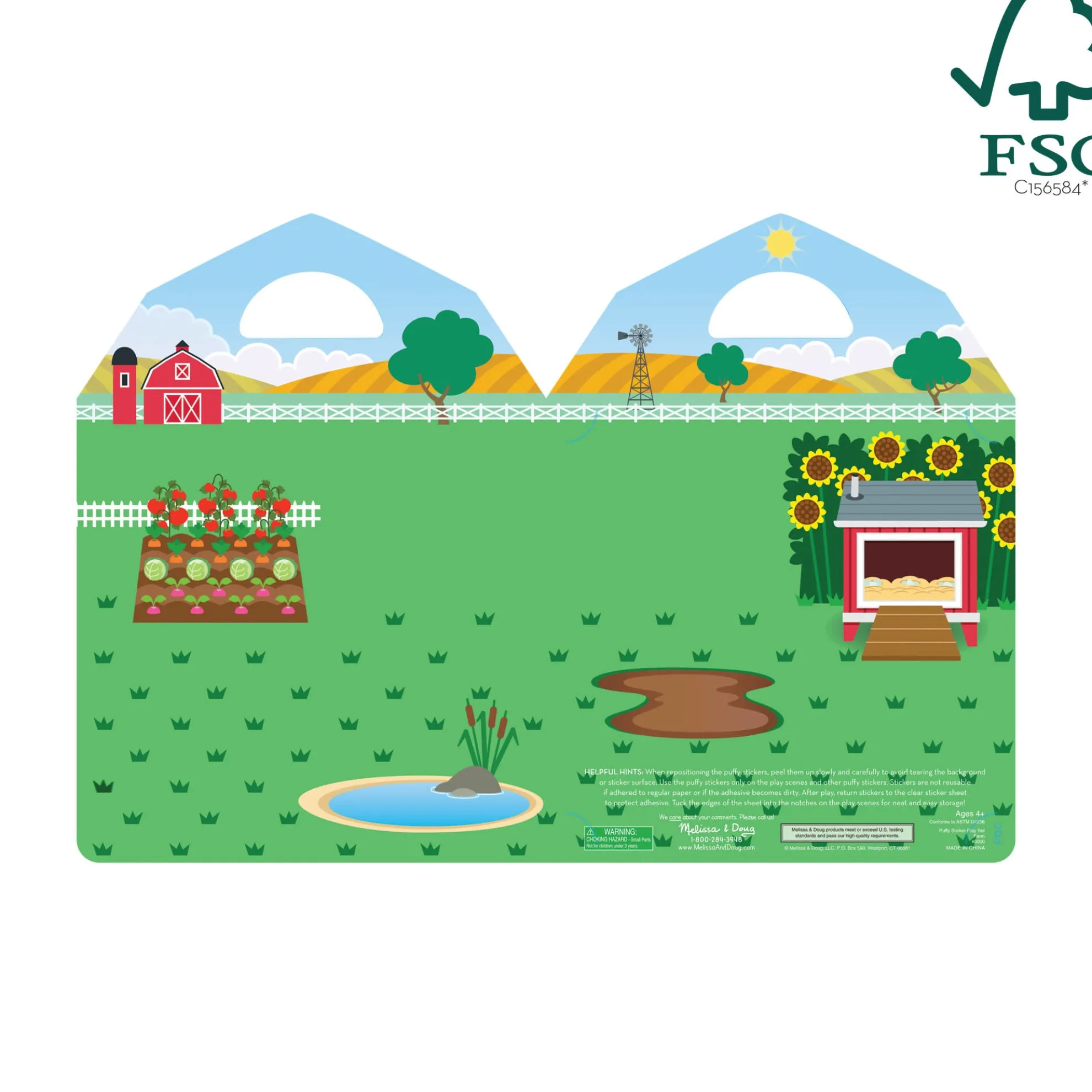 - Includes 52 reusable farm-themed puffy stickers plus fold-and-go play scenes