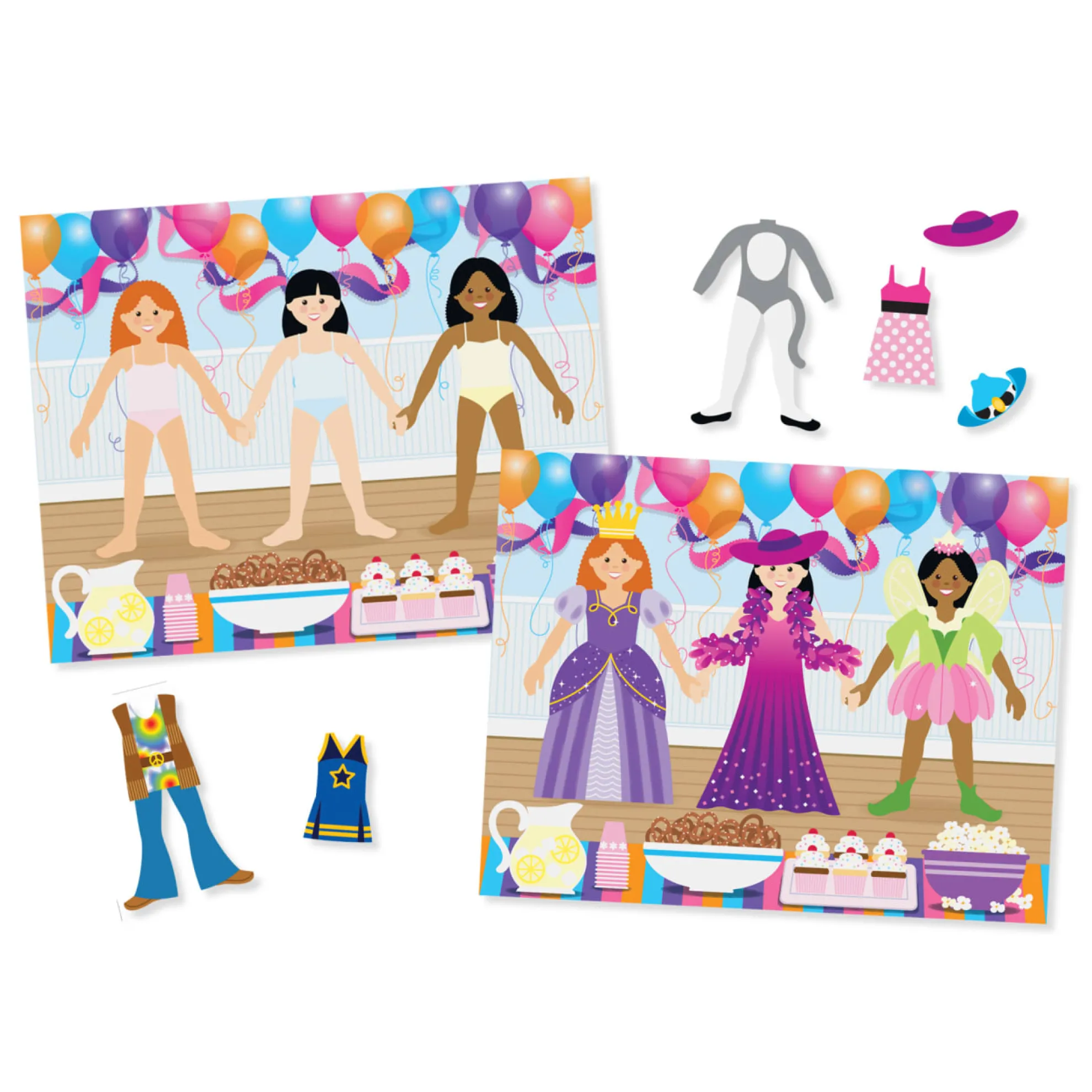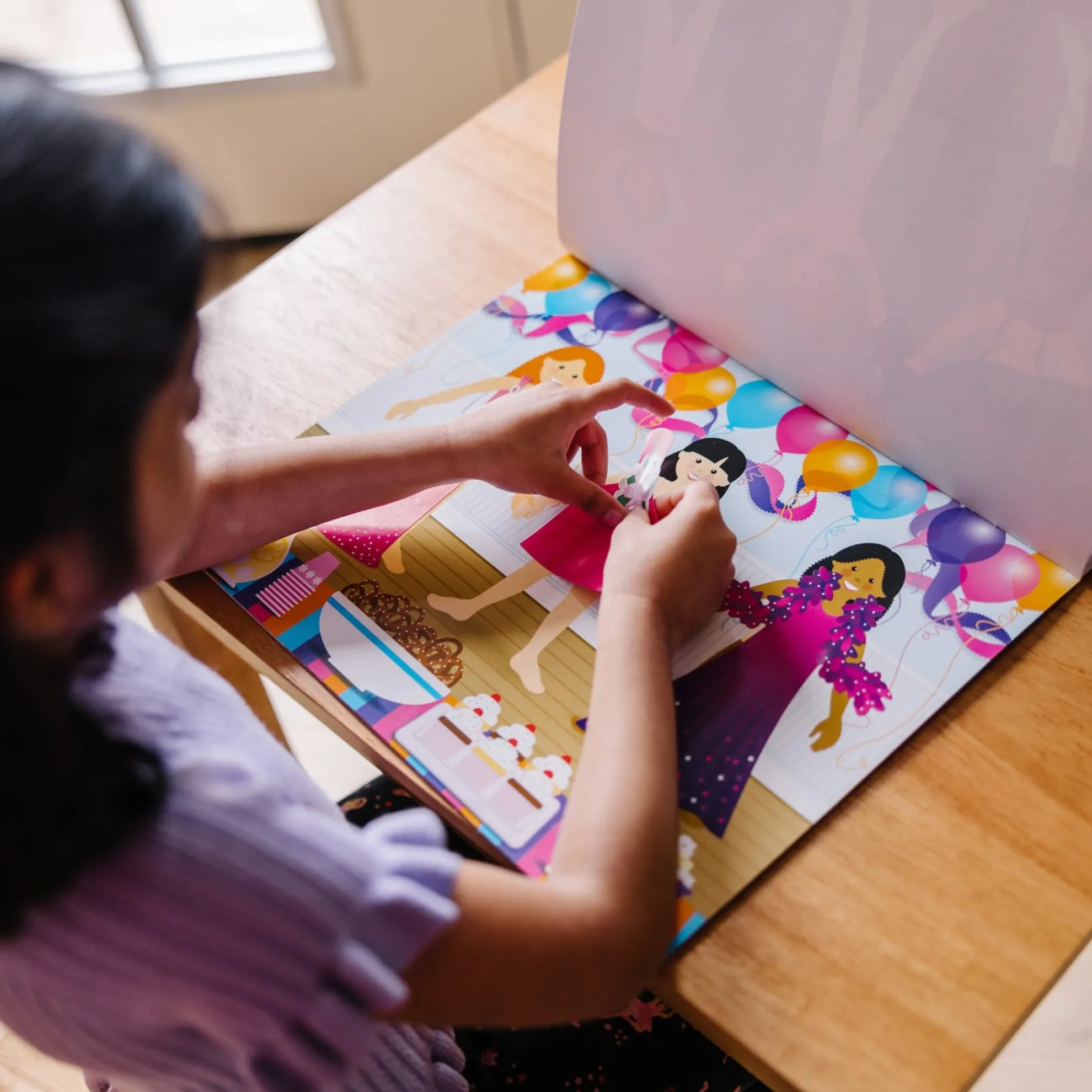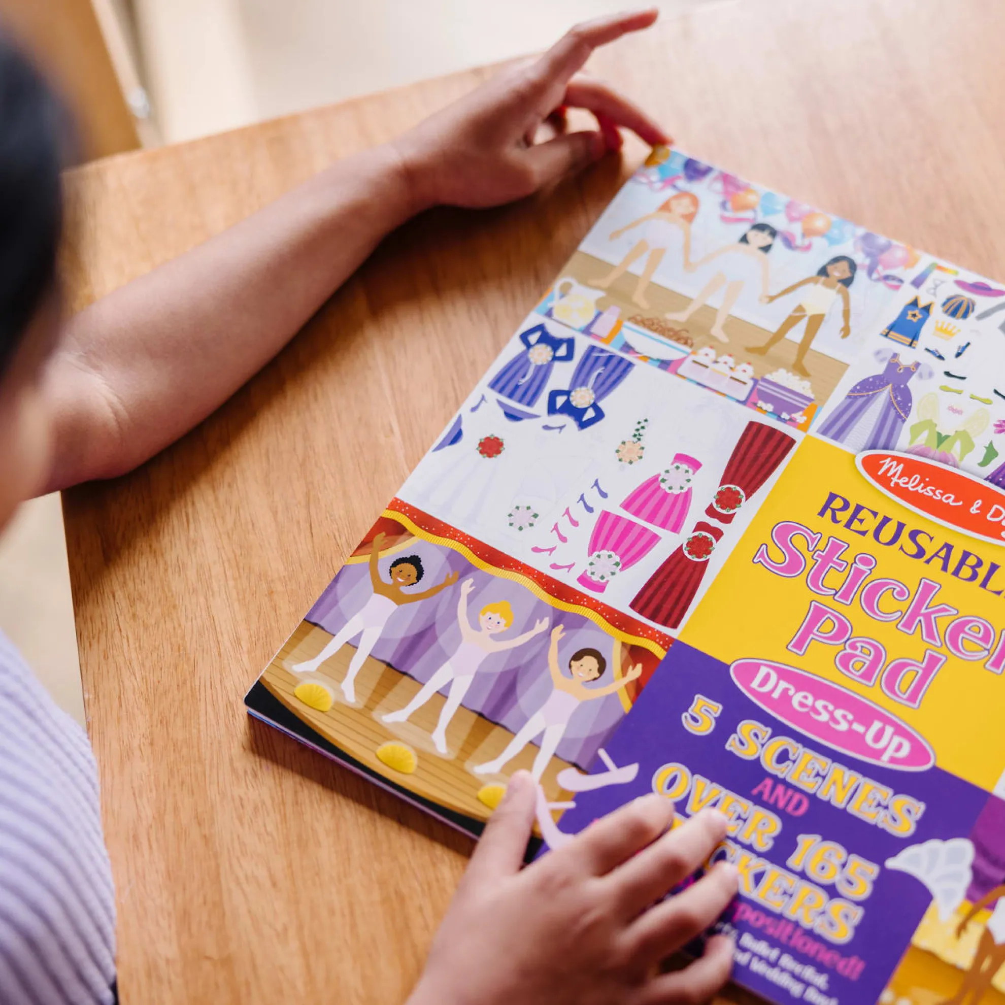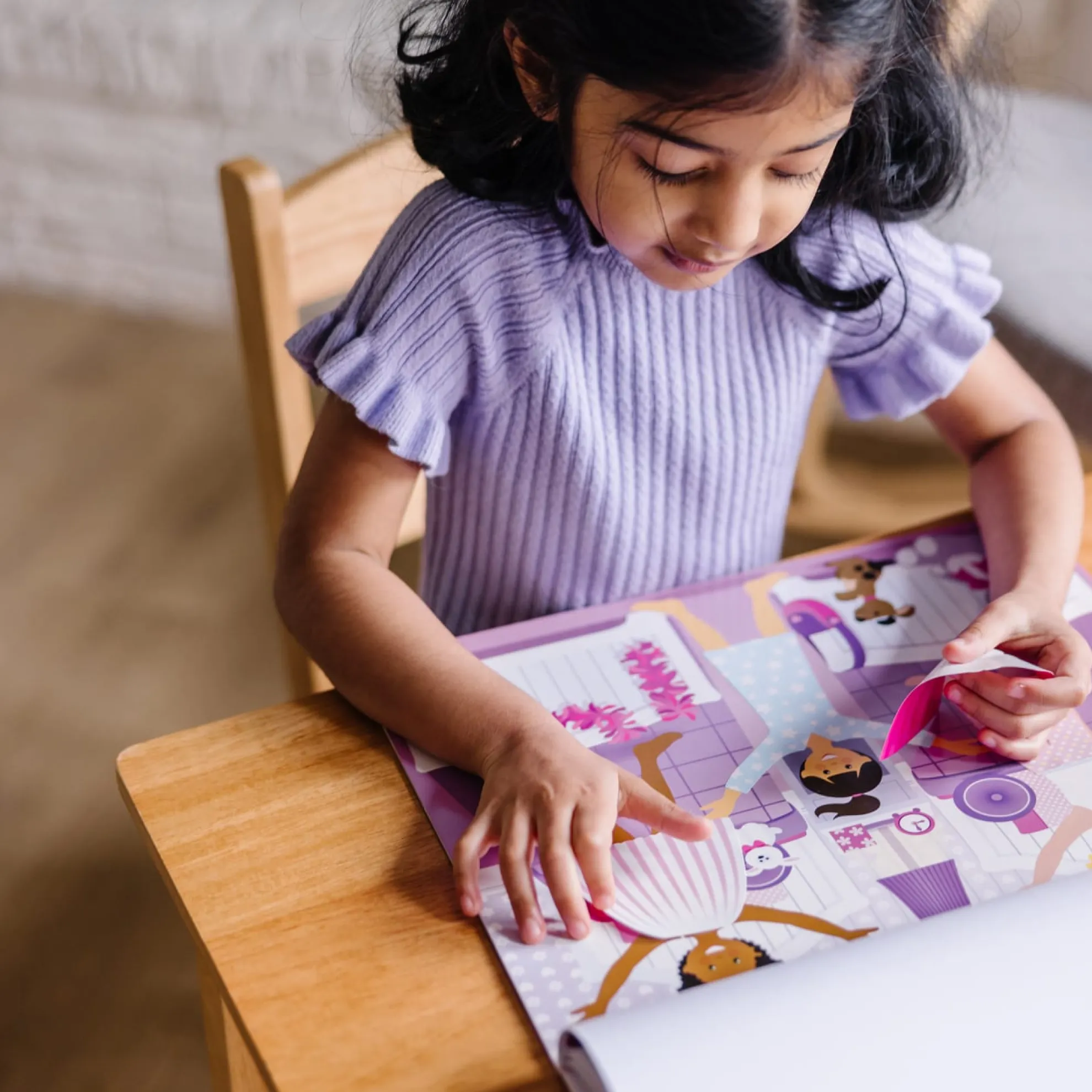 The reusable stickers in this creative activity book cling securely to the sturdy pages, then peel up easily when kids are ready to make a change. Five glossy, full-color background pages feature illustrated models to dress in 165+ skirts, dresses, and every imaginable accessory!