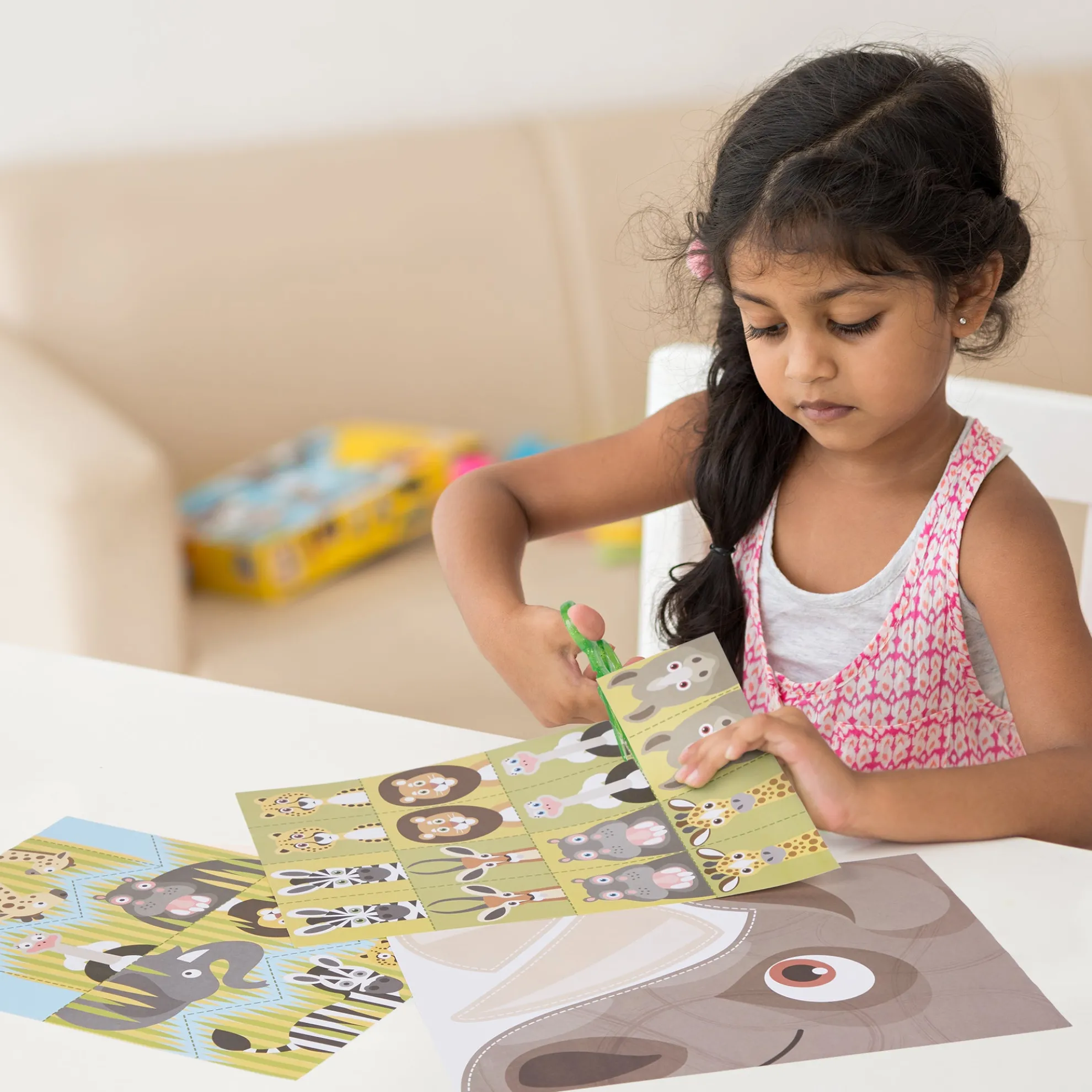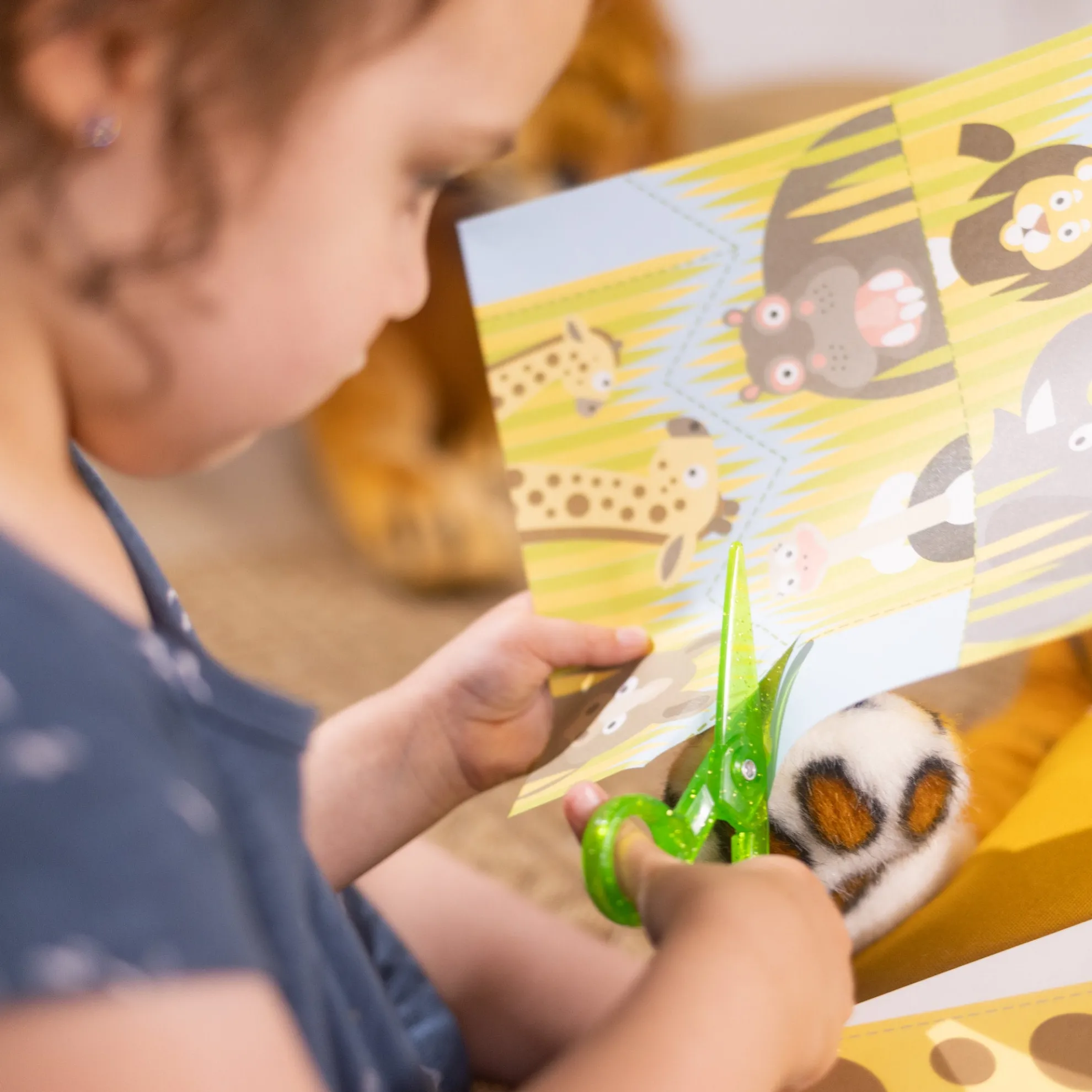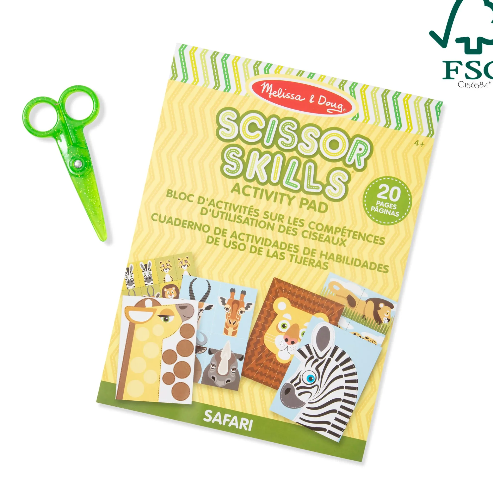 This creative and practical safari-themed activity pad is a cut above for kids who are developing fine motor skills! Melissa and Doug’s Safari Scissor Skills gives an engaging, creative direction to scissor work, meaning more concentration and less mess. Organized from simple to more complex, 20 different paper cutting projects (with complete supplies included right in the pages of the book) practice slightly different skills and techniques, and produce 20 unique crafts, games, and activities to offer kids four and older a creative focus and a sense of accomplishment. Plastic safety scissors are included, which naturally encourage proper form and are safe for preschoolers–but any pair of scissors can be used to complete the paper-cutting projects.