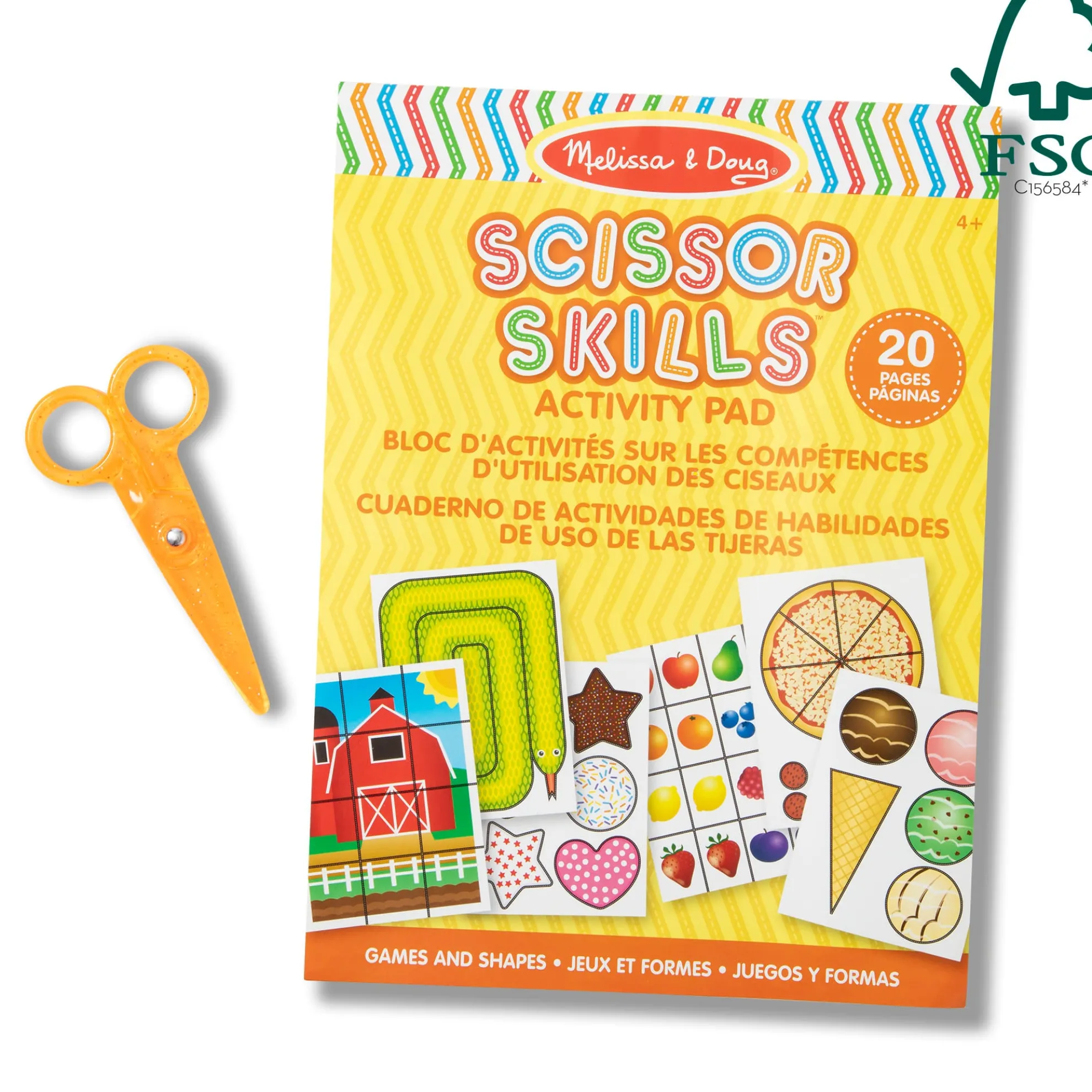 Kids love to cut with scissors–as you can see by the trail of scraps often left in their wake! This creative and practical activity pad gives an engaging, creative direction to scissor work, meaning more concentration and less mess. Organized from simple to more complex, 20 different paper cutting projects (with complete supplies included right in the pages of the book) practice slightly different skills and techniques, and produce 20 unique crafts, games, and activities to offer kids a creative focus and a sense of accomplishment. Plastic safety scissors are included, which naturally encourage proper form and are safe for preschoolers–but any pair of scissors can be used to complete the paper-cutting projects. This product is certified by the Forest Stewardship Council. FSC certification ensures that products come from responsibly managed forests that provide environmental, social, and economic benefits, and that forests are protected for future generations. Please note that FSC certification applies to new inventory only (FSC C156584).
