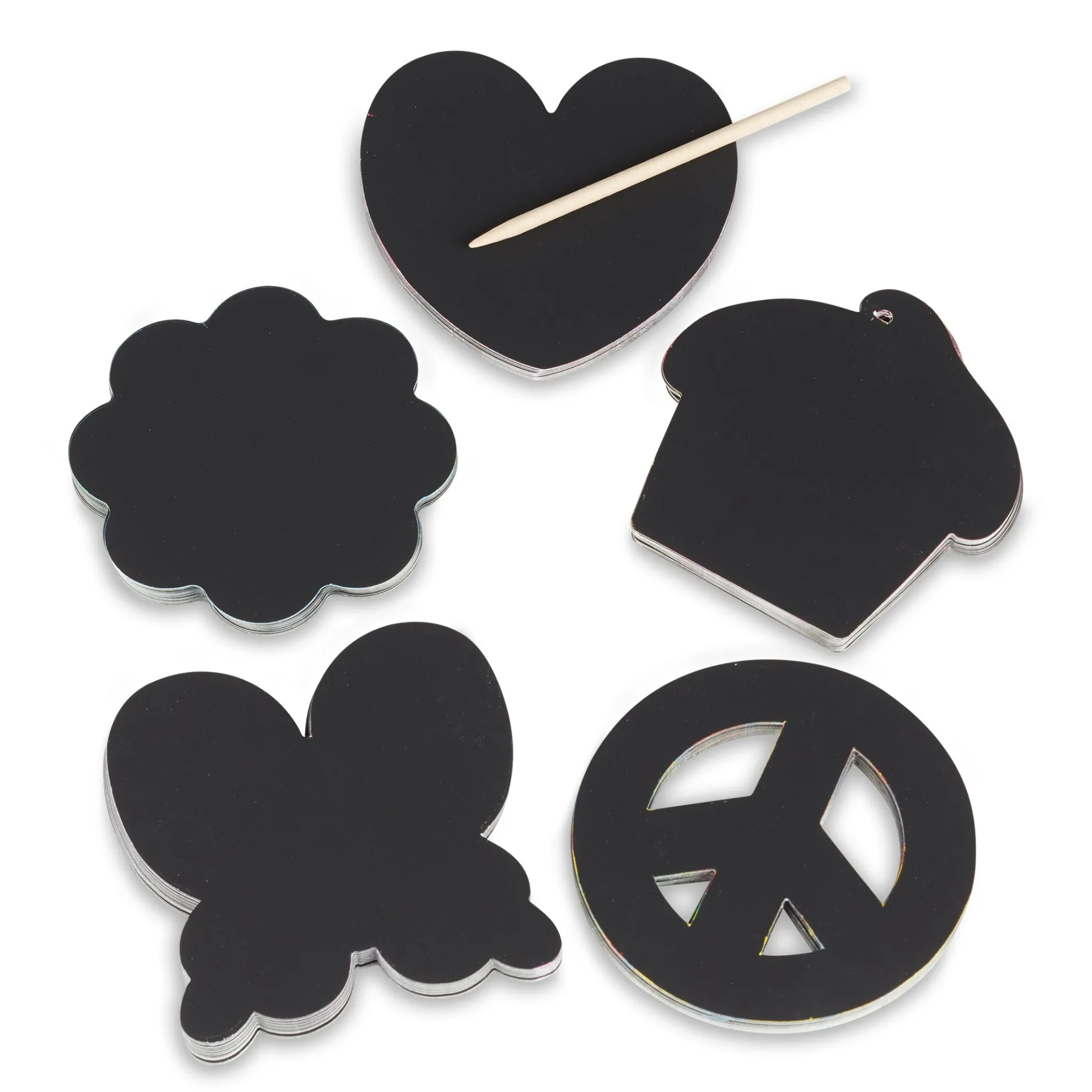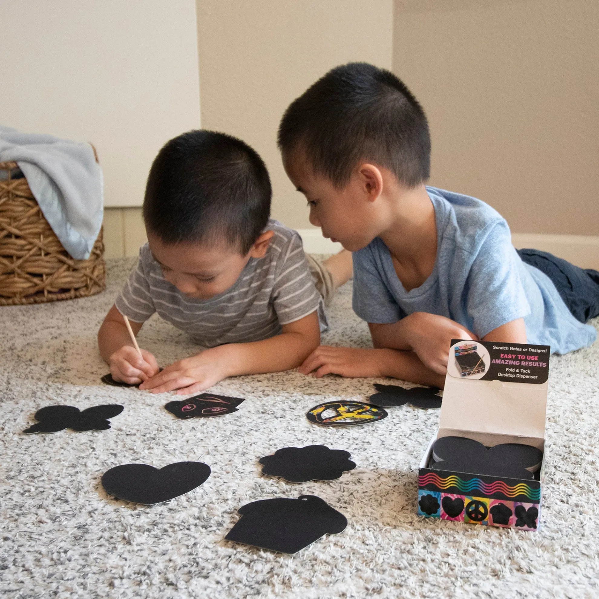 - Scratch messages, doodles, designs, pictures, patterns, and more on shaped Scratch Art® notes to reveal swirls of color and create unique messages, works of art, gift tags, and more