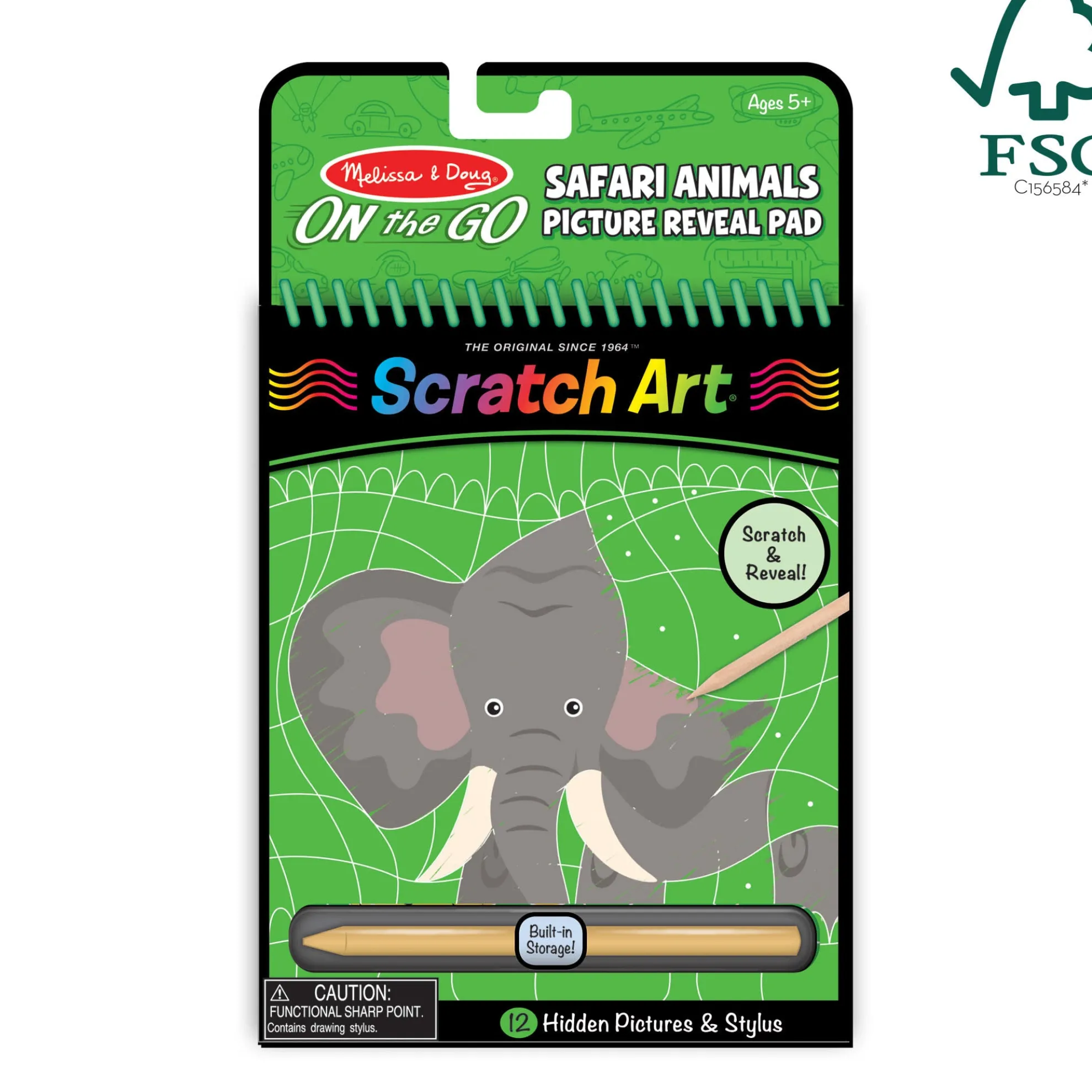 These all-inclusive and self-storing compact Scratch Art books bring the fun anywhere kids may go. Kids can etch within the lines with the included wooden stylus to reveal 12 vehicle scenes, or to reveal hidden pictures of favorite safari animals and animal families! The spiral-bound pads feature built-in stylus storage, making it a self-contained craft project that’s perfect for families on the go! This product is certified by the Forest Stewardship Council. FSC certification ensures that products come from responsibly managed forests that provide environmental, social, and economic benefits, and that forests are protected for future generations. Please note that FSC certification applies to new inventory only (FSC C156584)