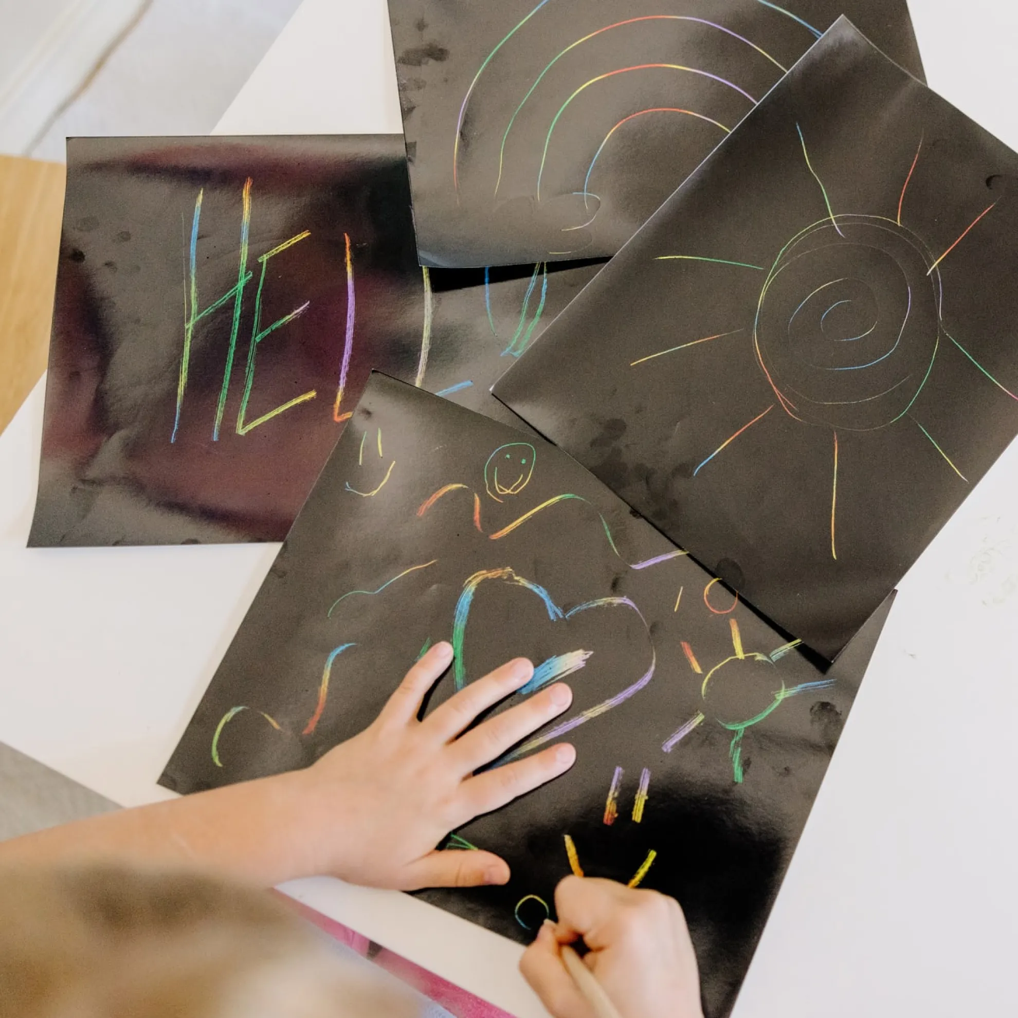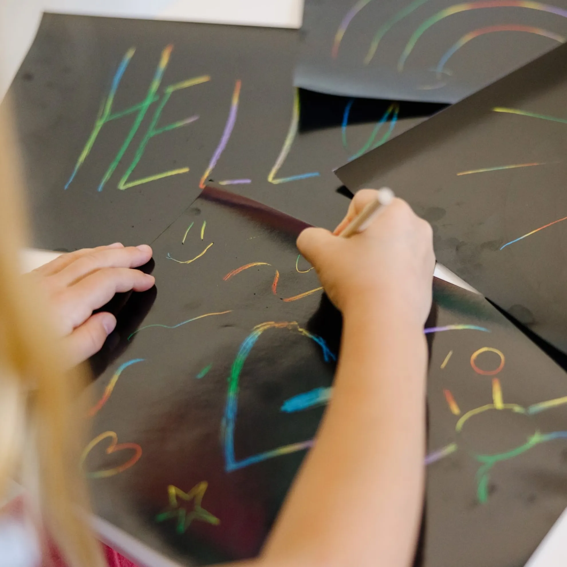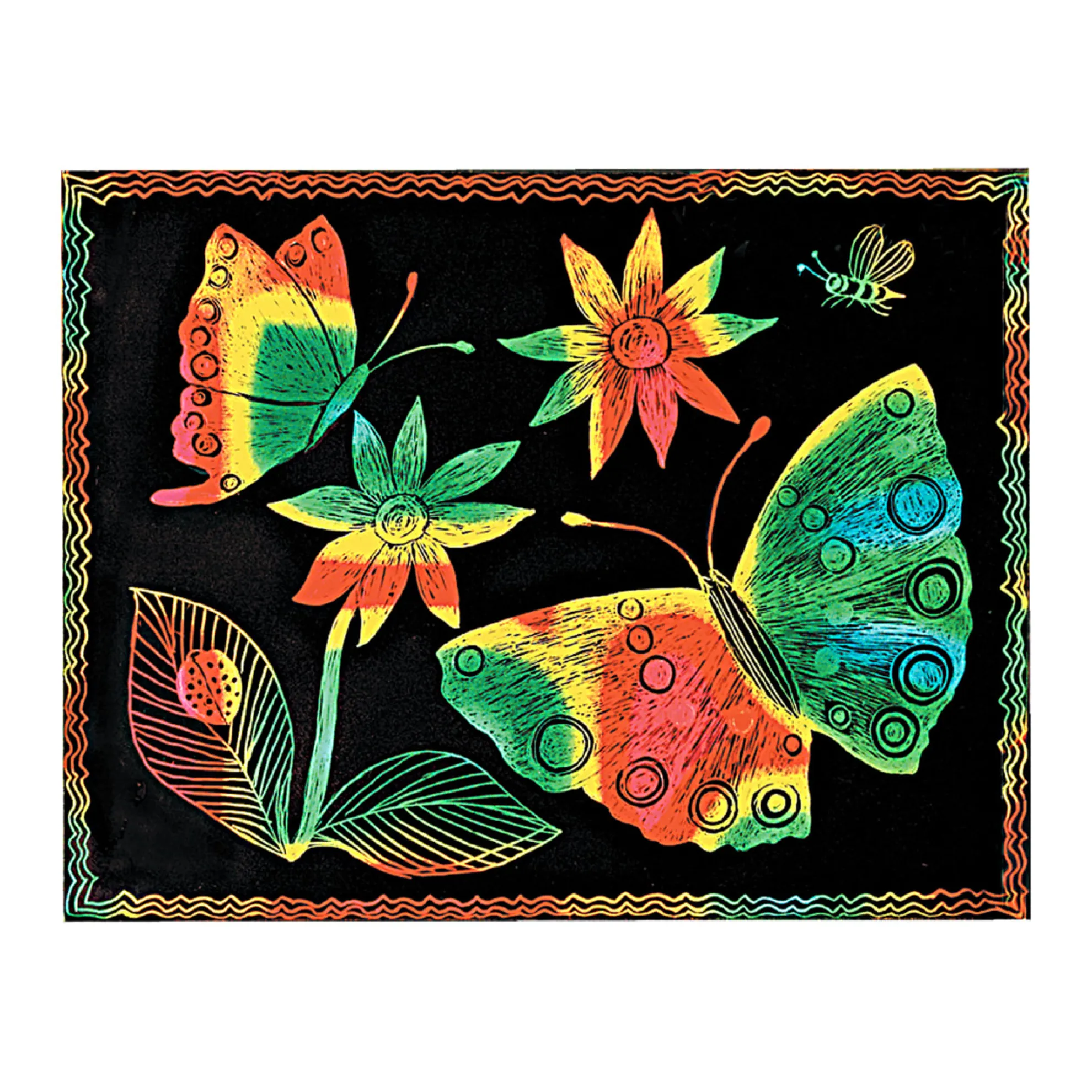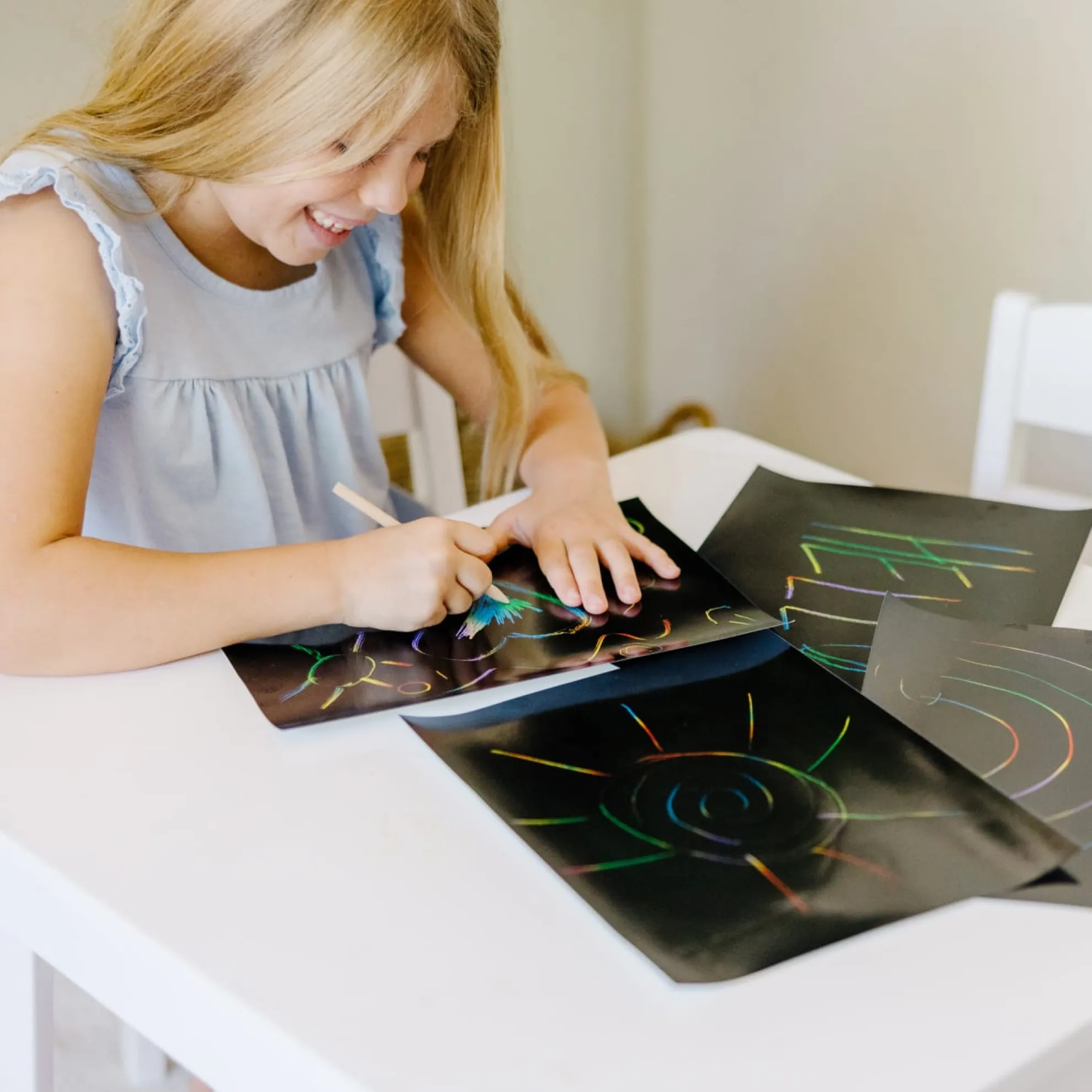 A perfect first Scratch Art experience! Simply scratch black-coated sheets with a wooden stylus (not included) to reveal brilliant colors. Spectacular results with no mess! Includes 50 sheets of 8.5 x 11″ paper.