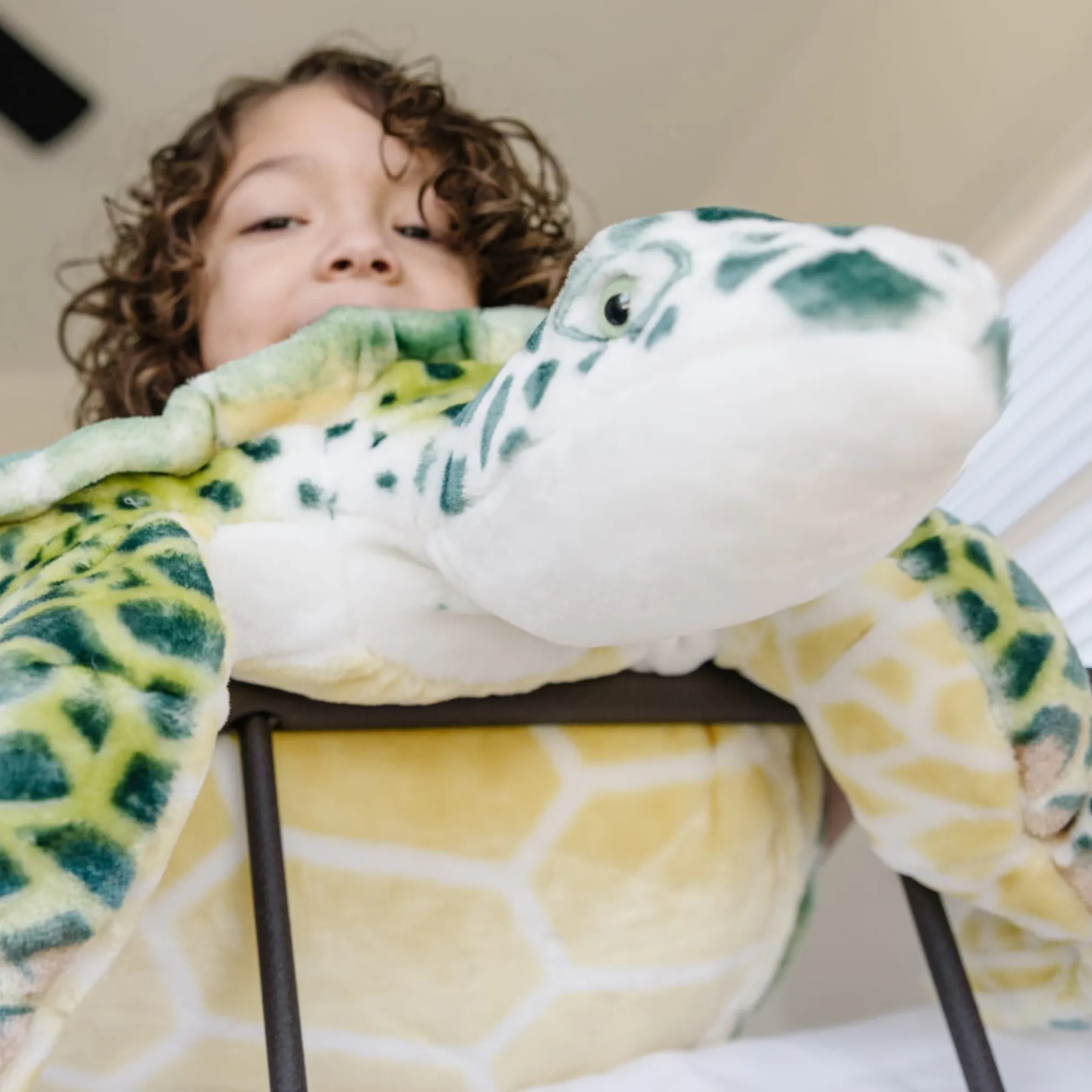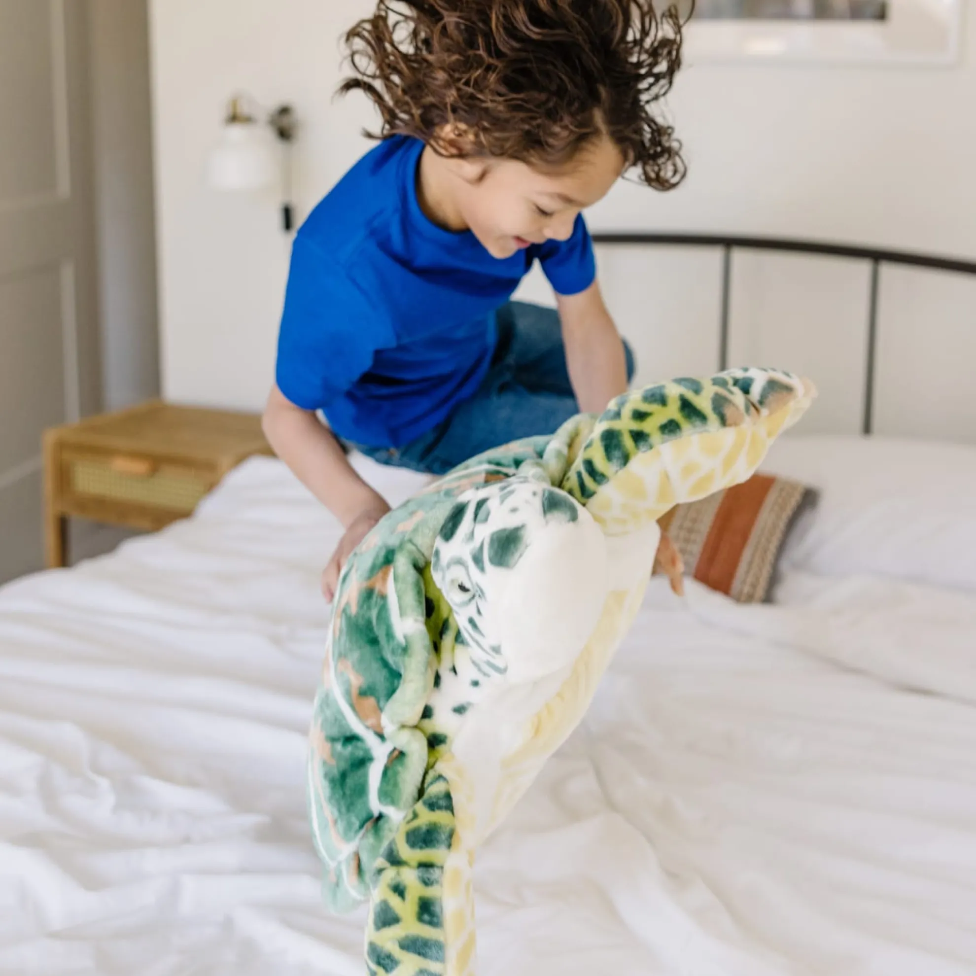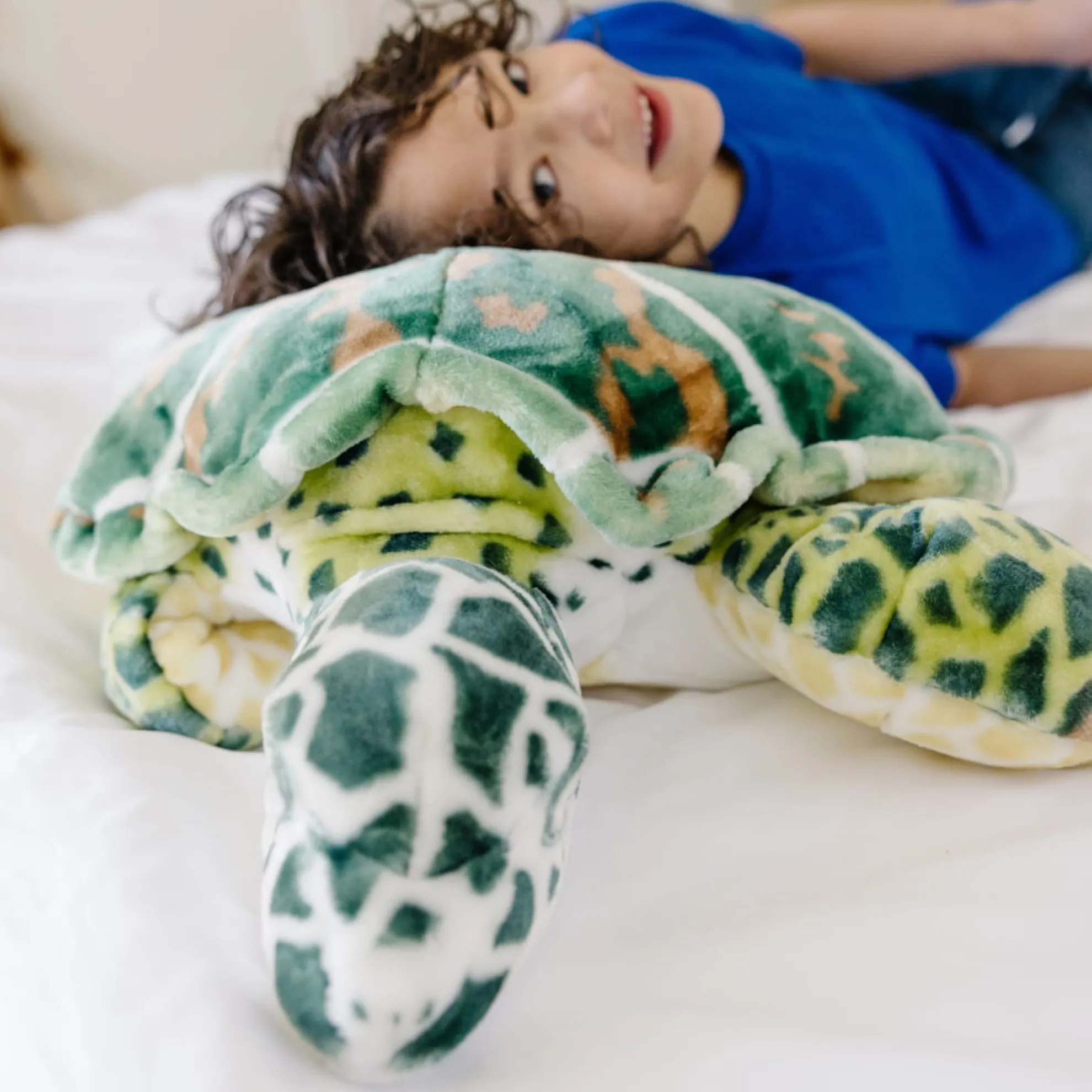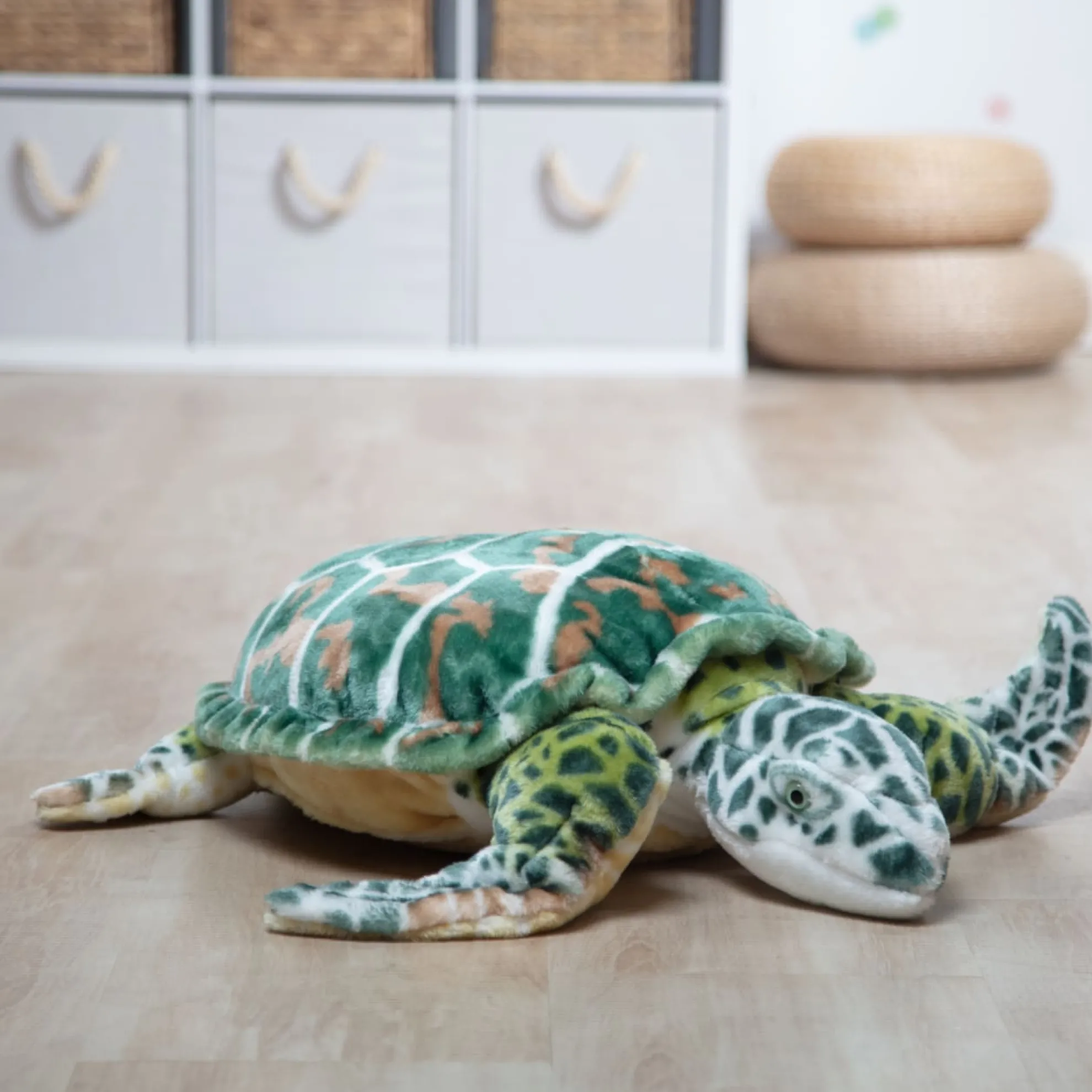 Nearly three feet long, this lifelike sea turtle is not shy! A delight to hug, use as a pillow or just snuggle up with, this realistic creature of the deep features excellent quality construction and careful attention to its lifelike markings.