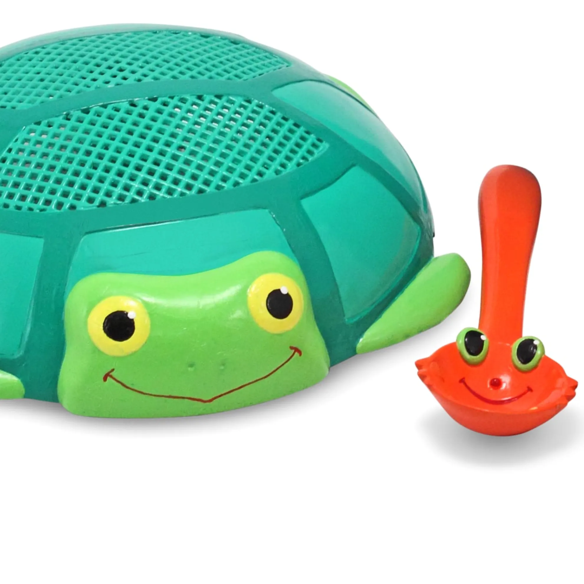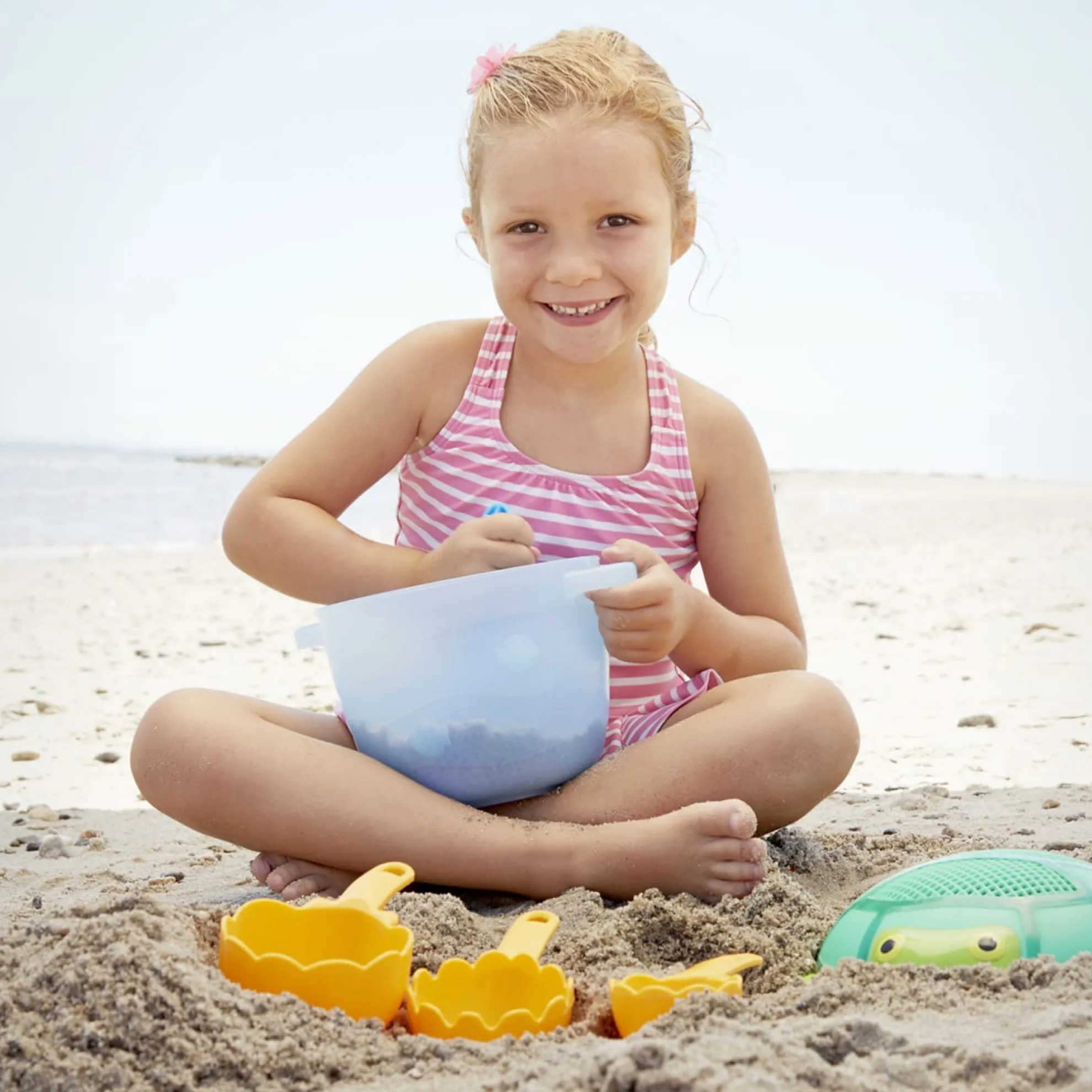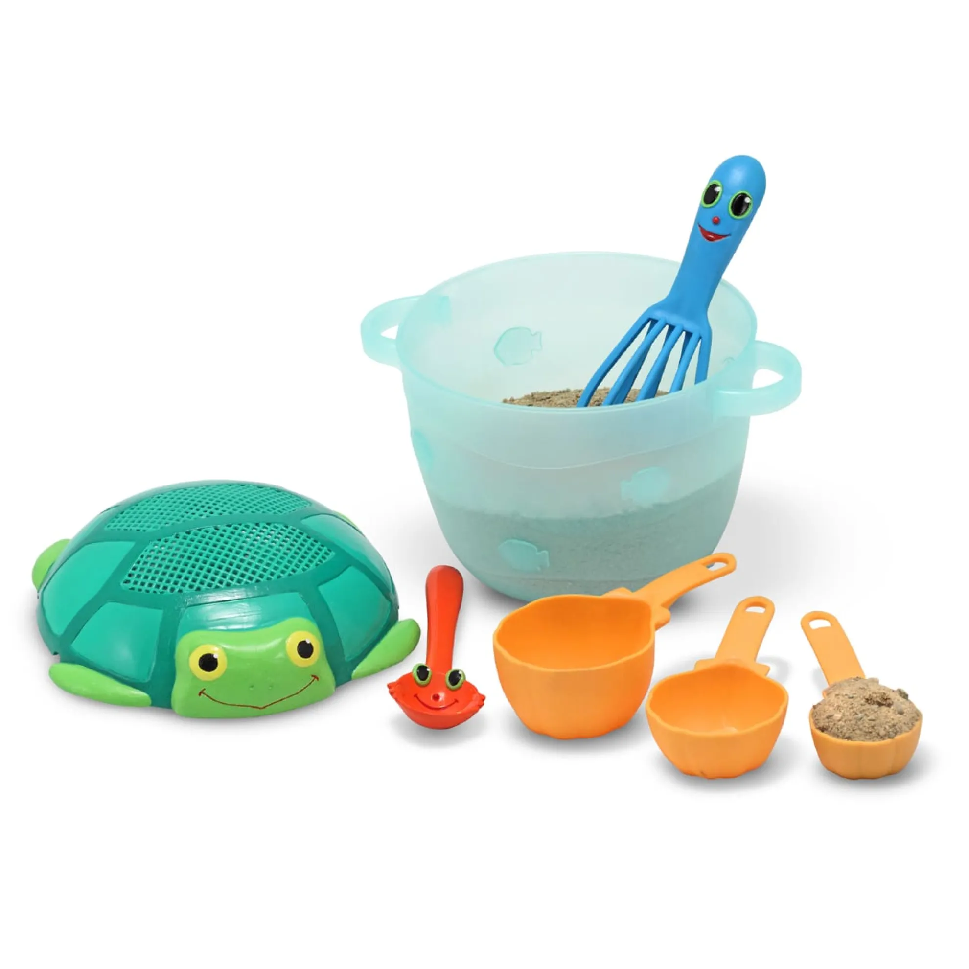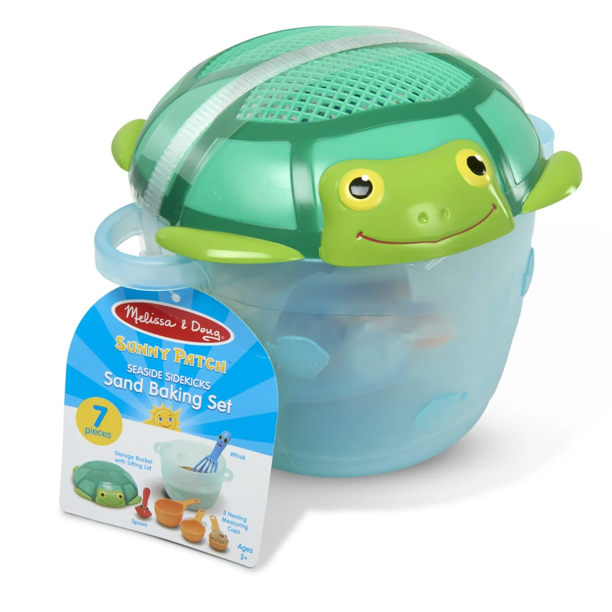 Cook up some fun at the beach! Kids can have oceans of fun making fabulous mud pies and sand cakes with this sea-creature inspired “baking” set. The Seaside Sidekicks Sand Baking set is part of Melissa & Doug’s Sunny Patch line of products that encourages exploration and outdoor play. The pretend baking set includes tools that look like adorable sea creatures including three shell-shaped measuring cups, an octopus whisk, and a crab mixing spoon. Everything stores neatly inside the mixing bowl with a sea turtle lid that doubles as a sifter. Little chefs can have fun mixing, sifting, packing, and decorating their seaside creations while also practicing important motor skills and creative expression. The set is made from high-quality materials designed for longevity and reliability so kids can enjoy using it season after season. It makes a wonderful gift for boys and girls ages three and over for hands-on, screen-free play.