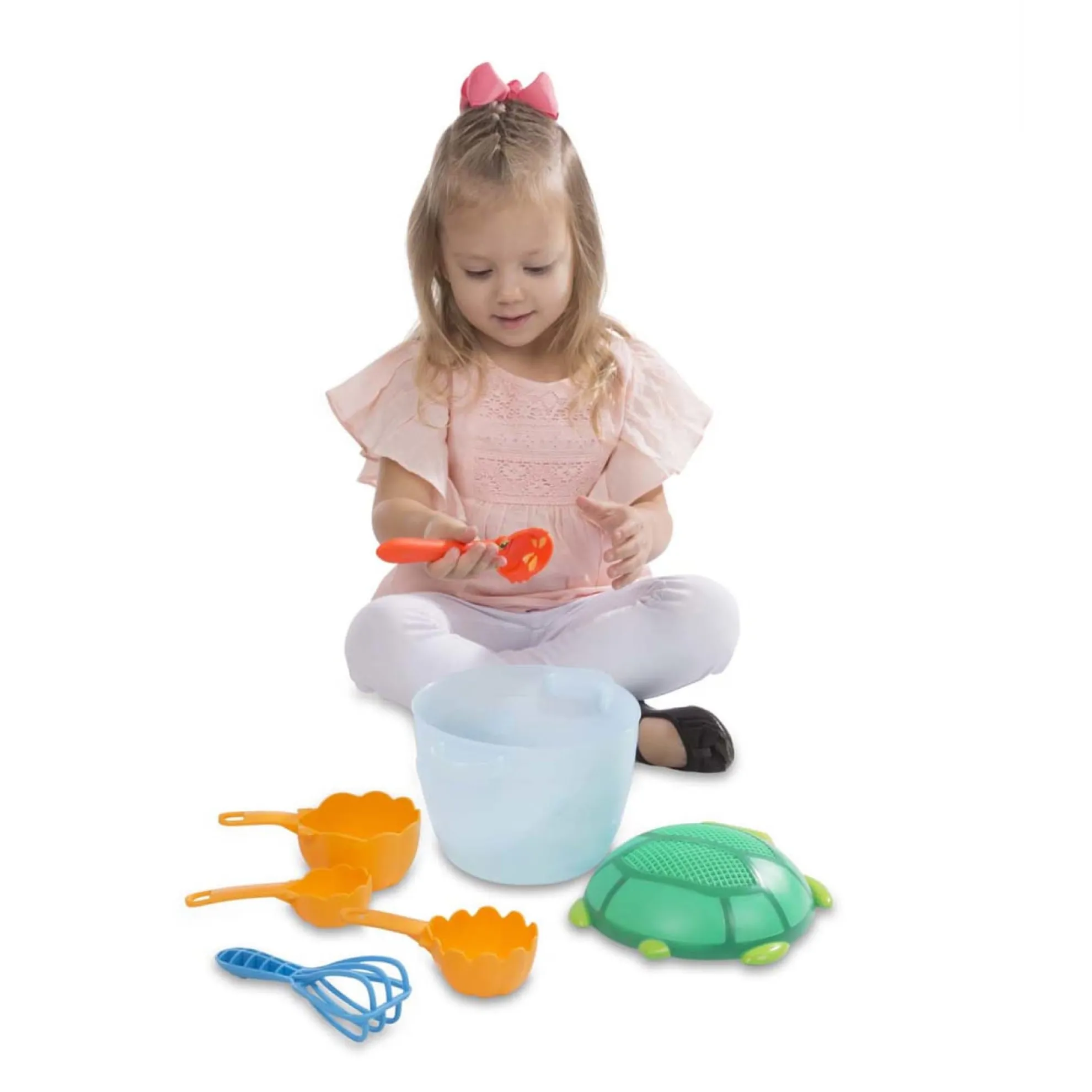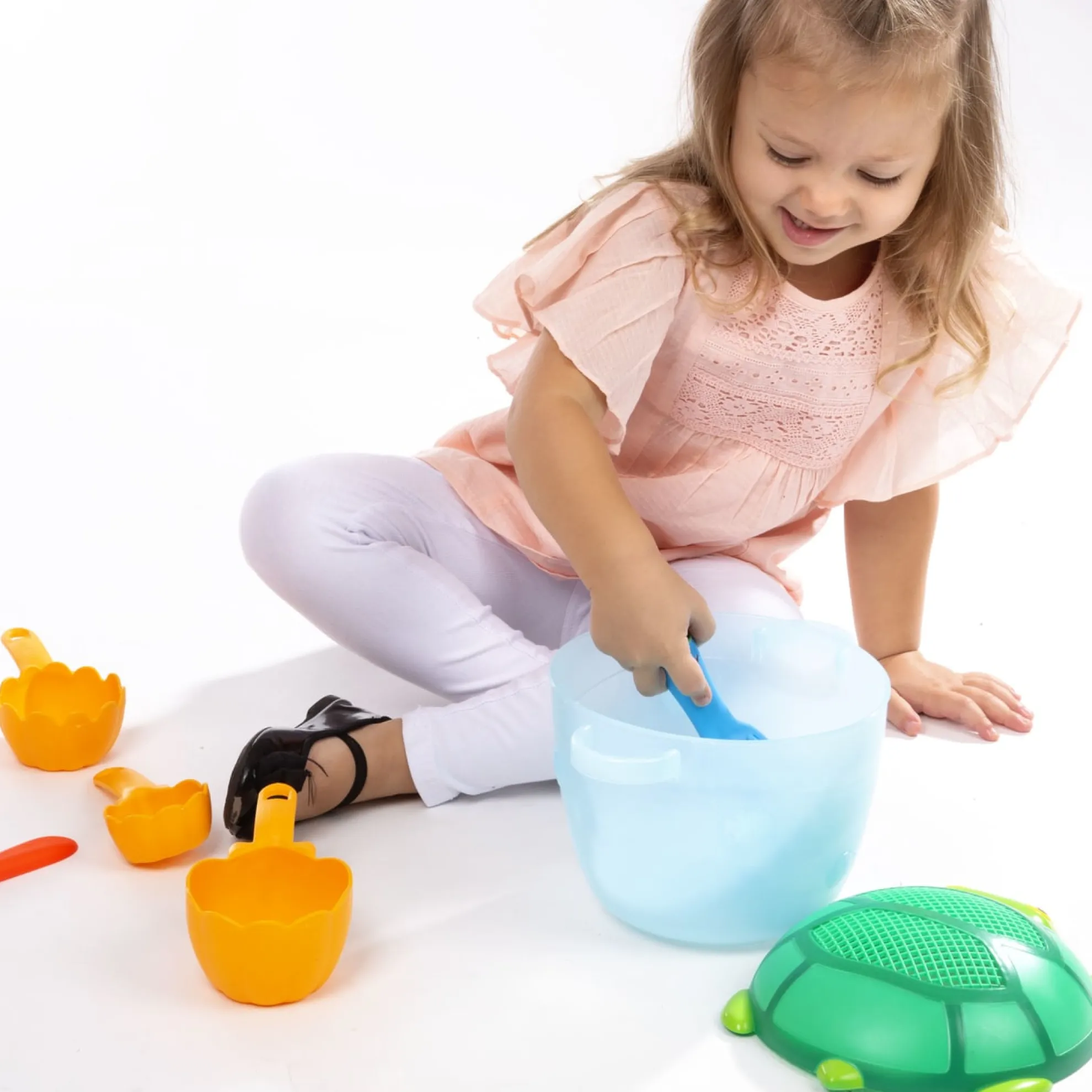 - Mixing, sifting and baking theme presents an exciting twist on sand toys!
