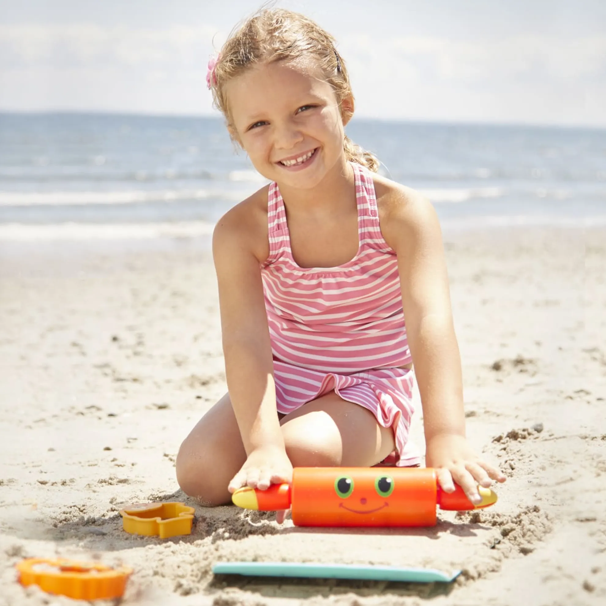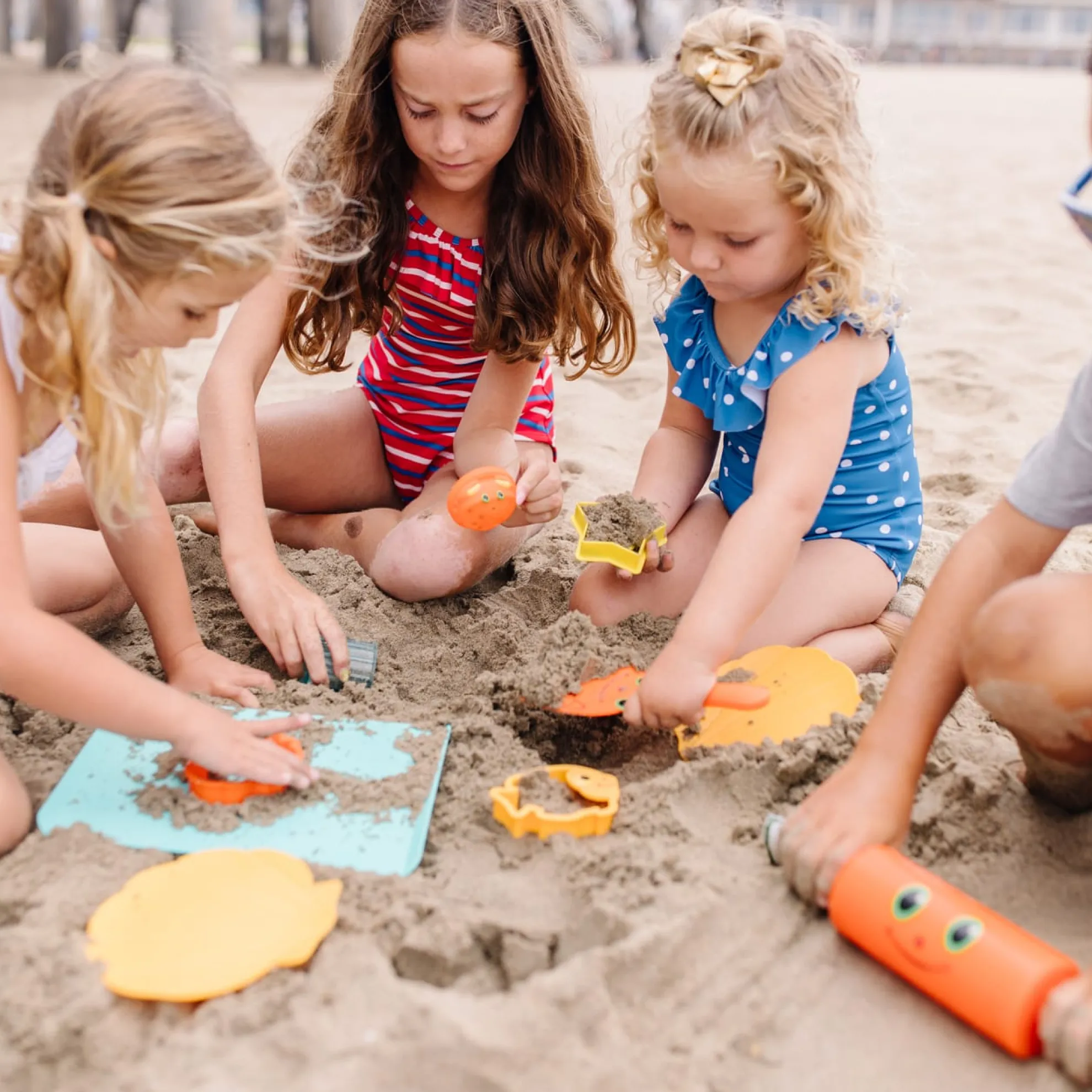 Take the fun of the beach or sandbox, add cookie cutters, a rolling pin, a crab-topped “sprinkle” shaker, a cookie sheet, a spatula and shell-shaped dishes . . . it’s a recipe for delight! Kids will love to serve up custom sand “cookies” for a picnic at the beach or in the sandbox.
