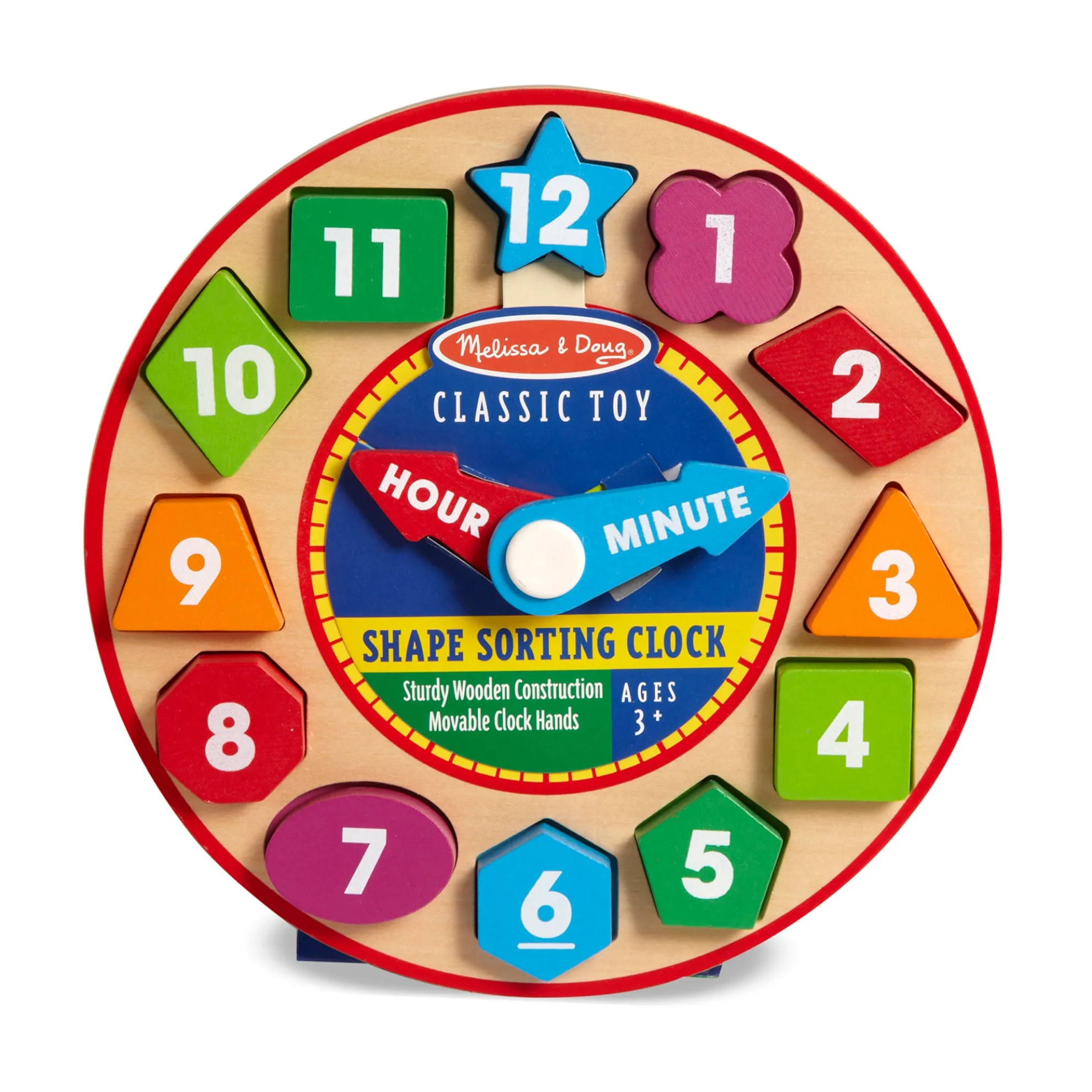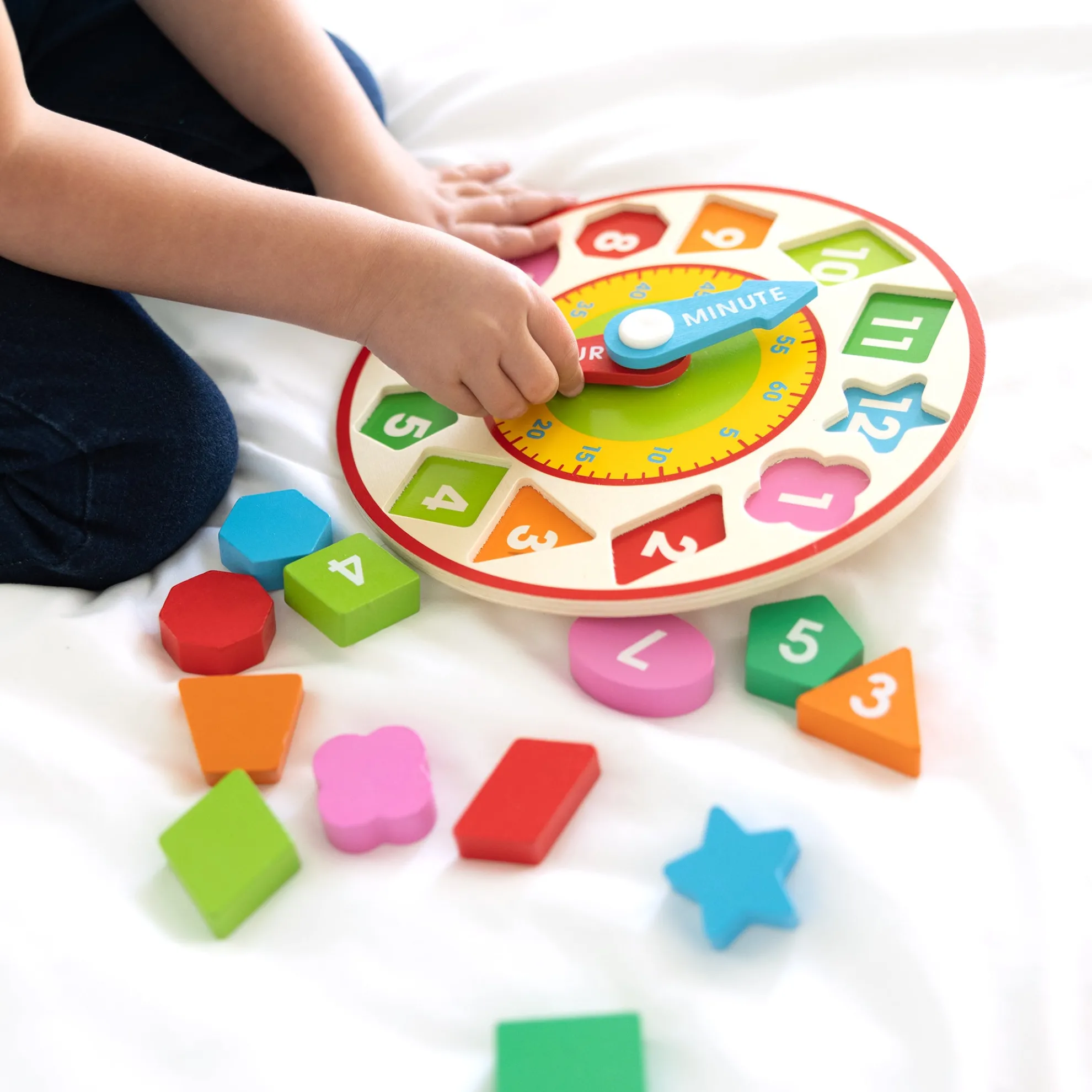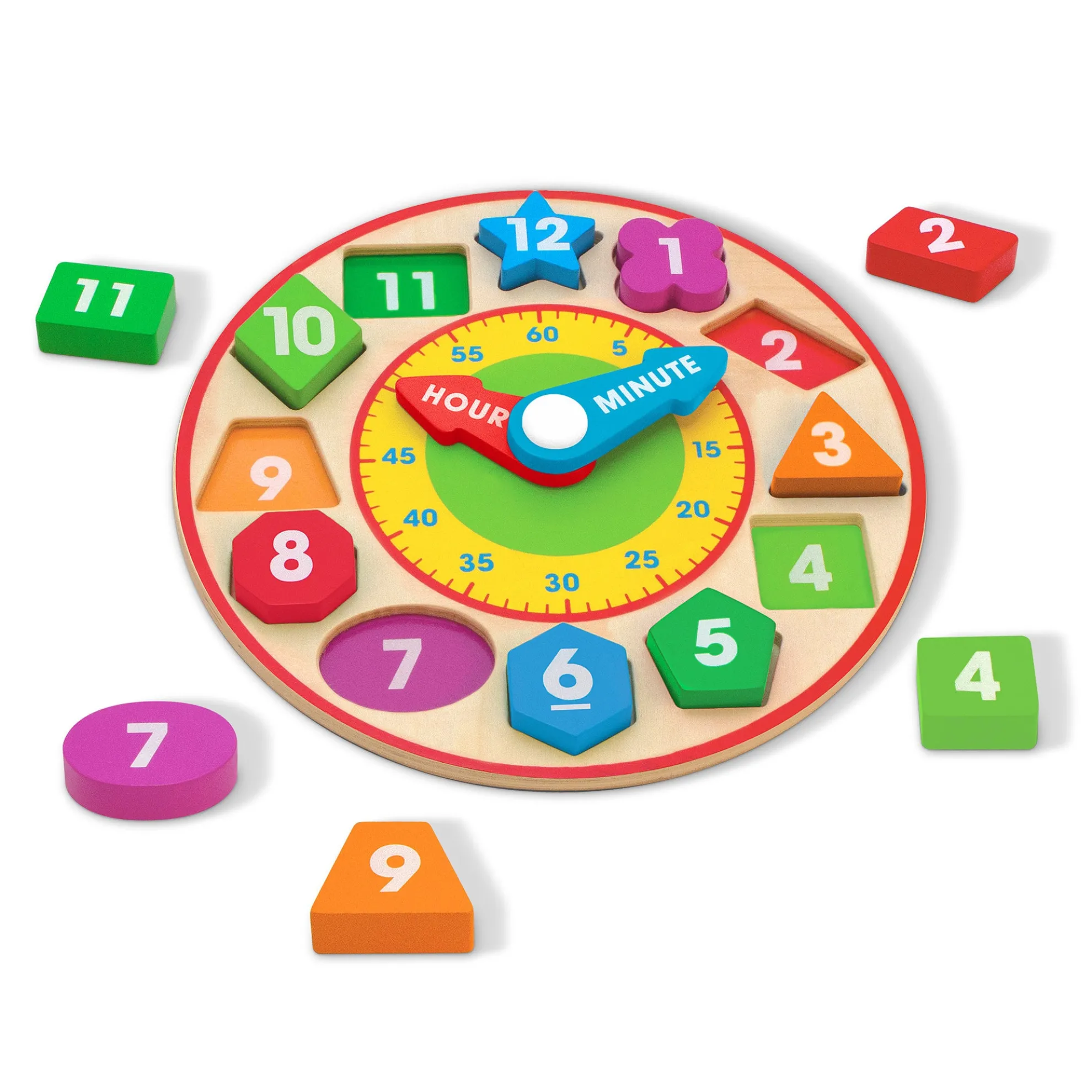 - Wooden clock with 12 removable pieces for teaching time-telling and more
