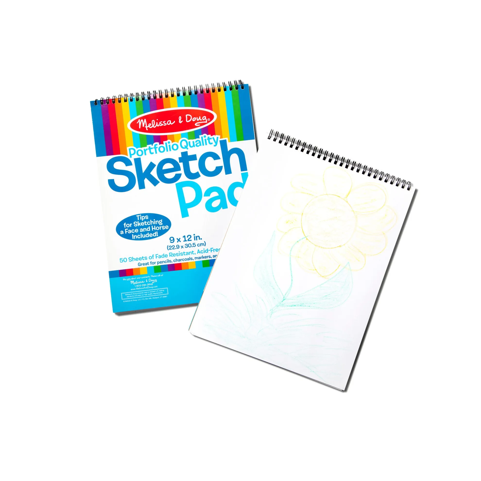 - SPIRAL-BOUND SKETCHPAD: The Melissa & Doug Sketch Pad 2-Pack features two 50-page spiral-bound full-size sketchpads measuring 9” x 12” that’s designed for the young artist on the go.