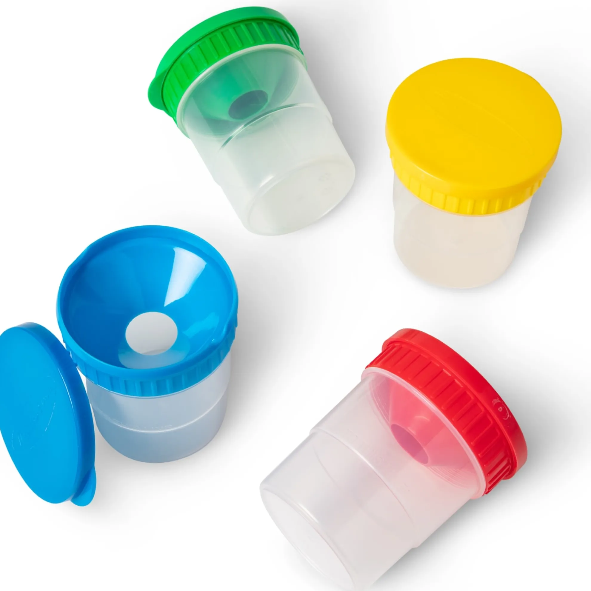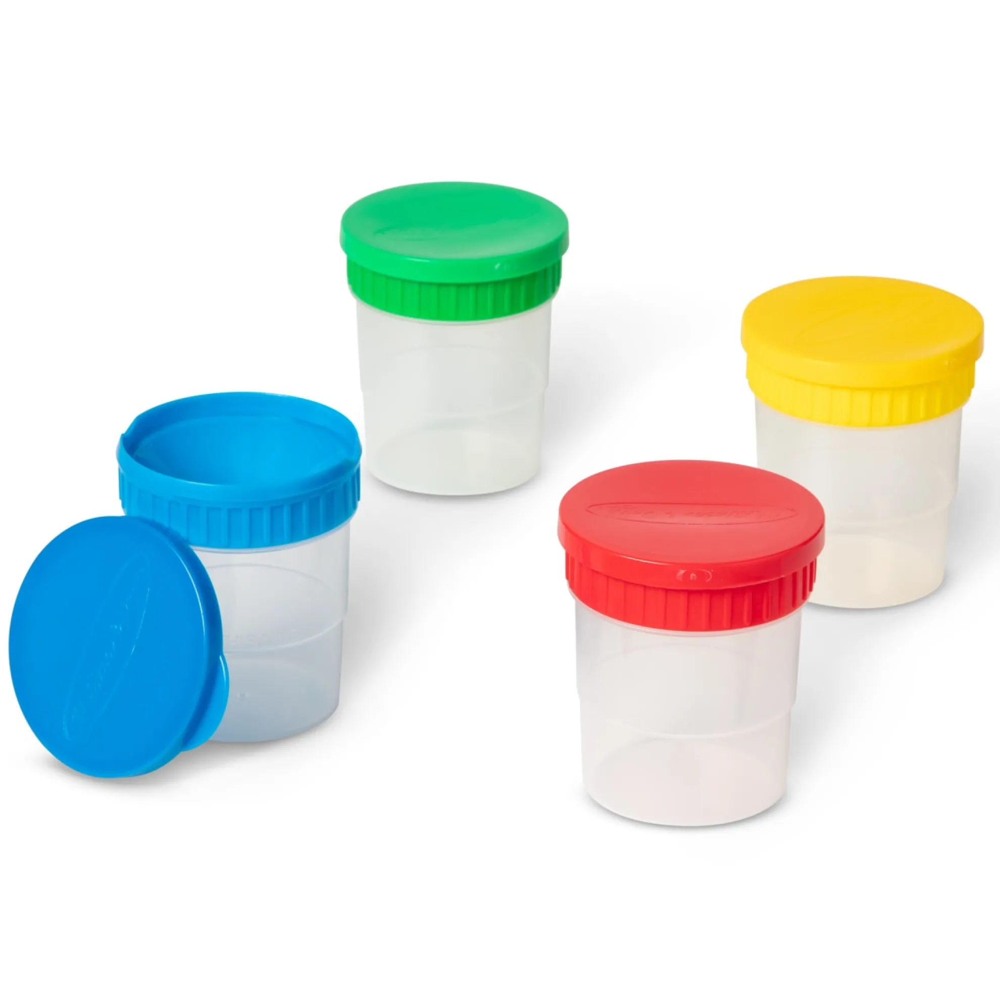 Set of four dishwasher-safe cups feature brush holders and snap-on storage lids