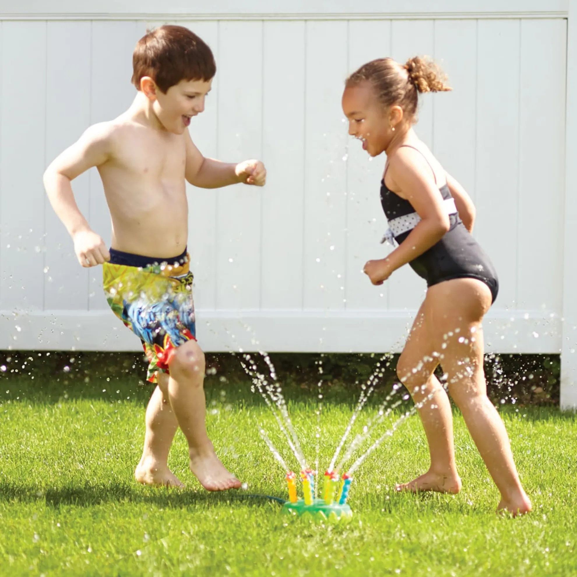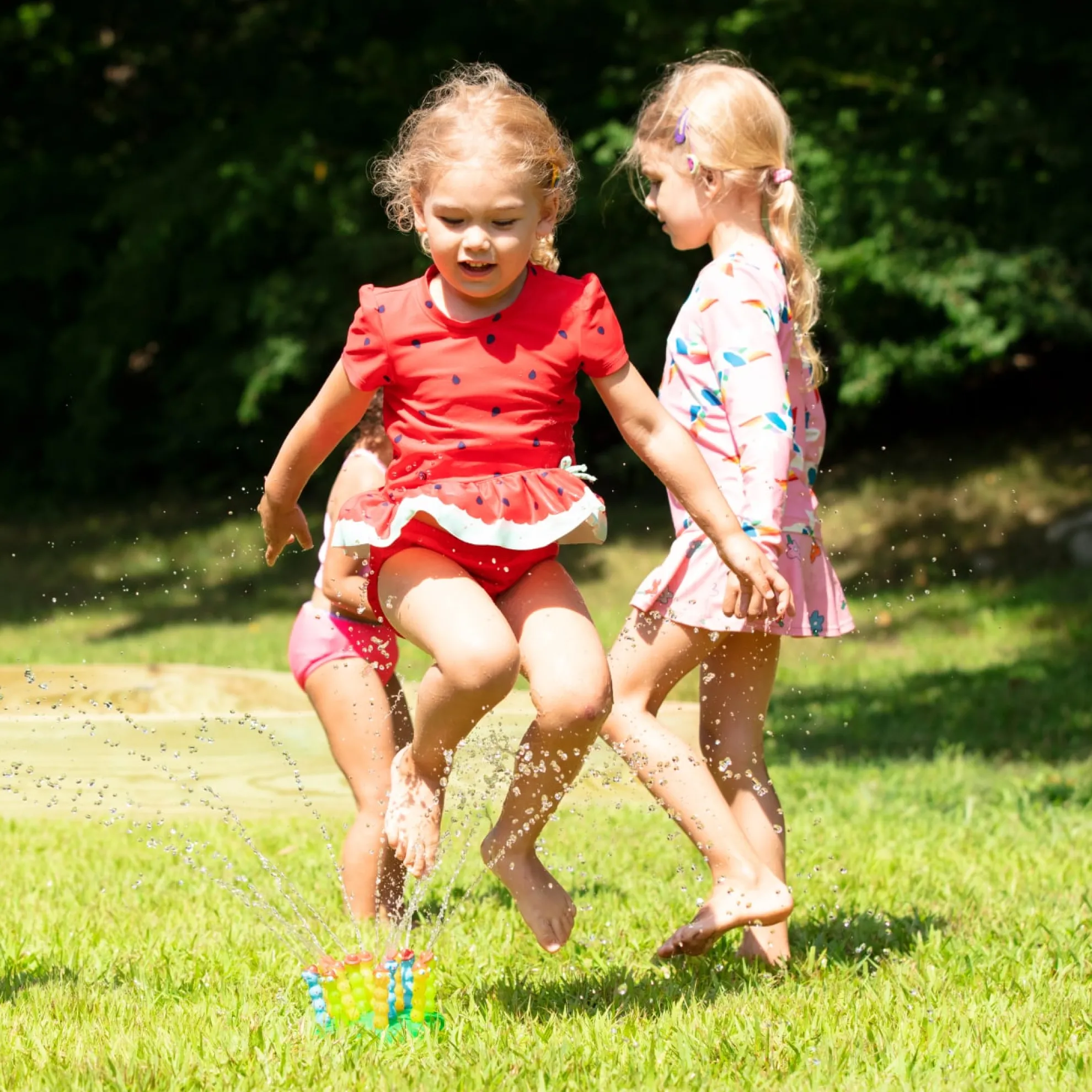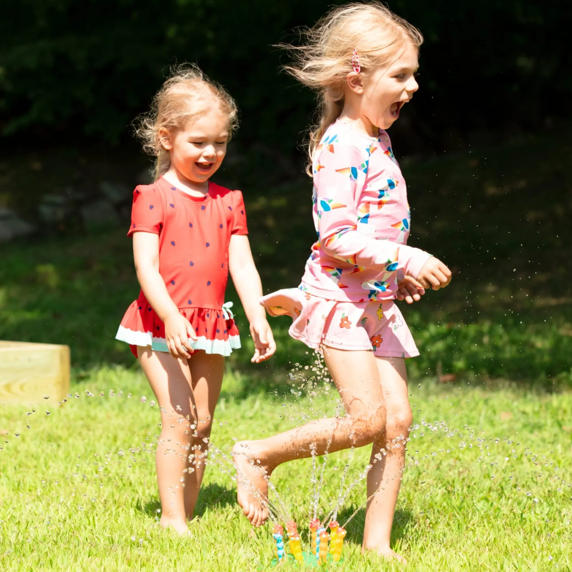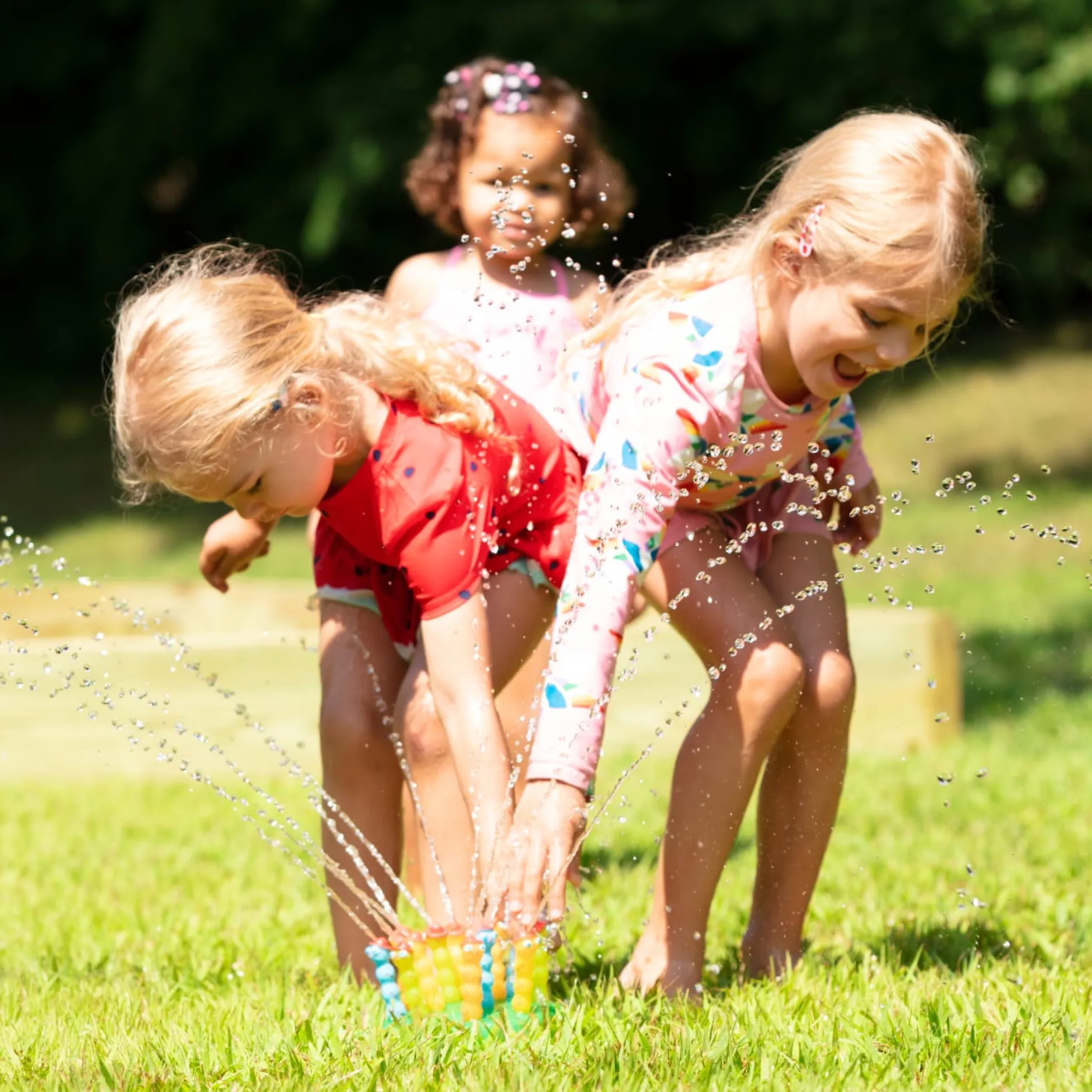 The Splash Patrol’s motto is all for one and fun for all! They always work together–especially when they are squirting you with water! This whimsical outdoor sprinkler is made from durable materials. It attaches easily to a hose for outdoor fun for the whole family, as well an adorable way to water the garden. The sprinkler encourages outdoor active play and helps develop coordination.