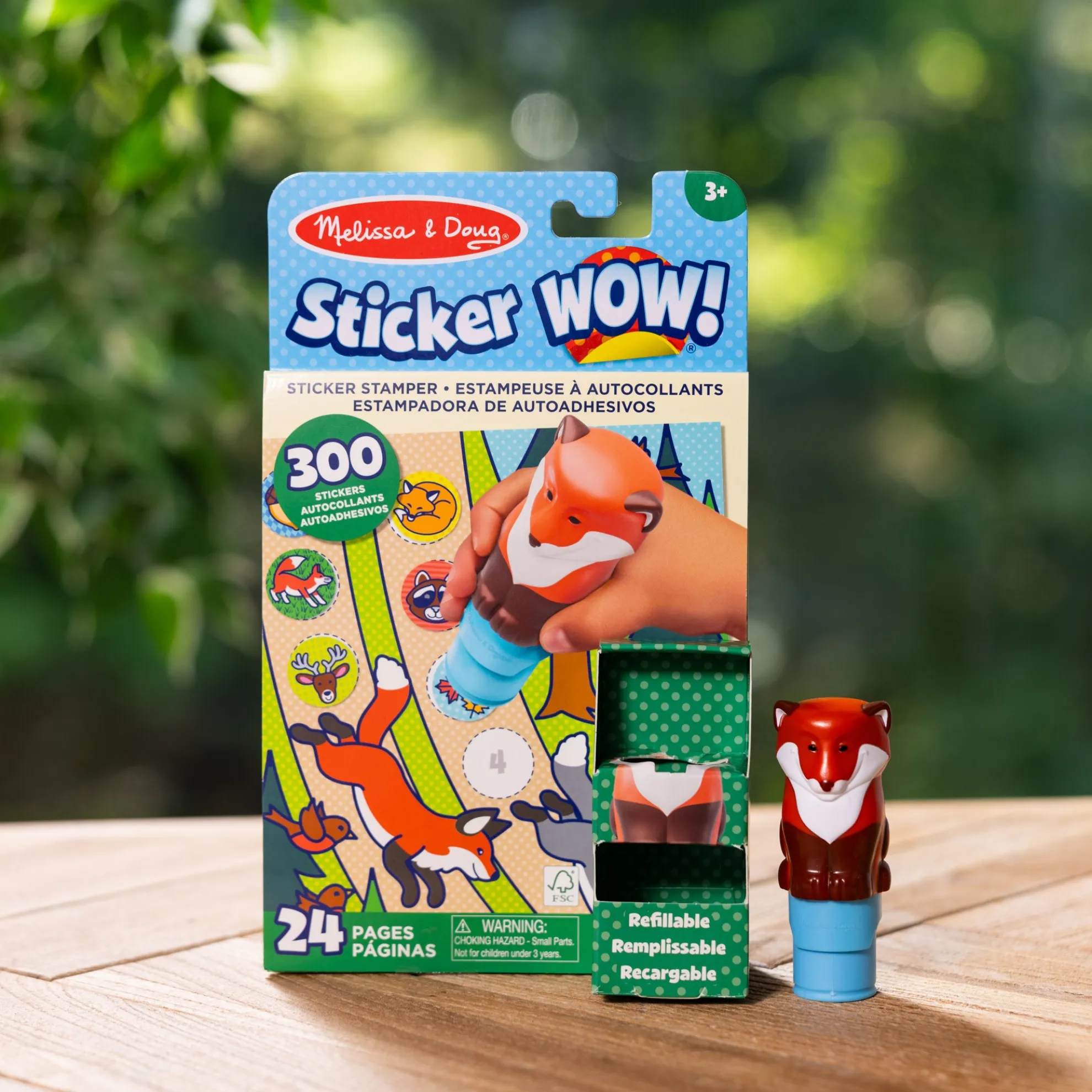 - Melissa & Doug Sticker WOW!™ is a whole new way to play with stickers – use the cute, collectible character to stamp woodland-themed stickers on the 24-page Fox activity pad and on other creative art projects