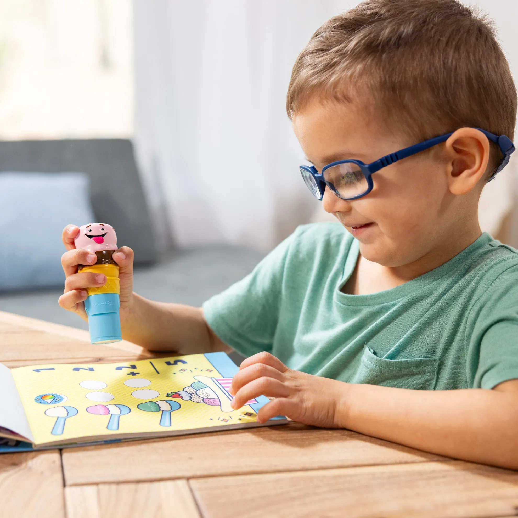 - Fun stamp-and-learn activities include numbers, counting, matching, search-and-find, and more