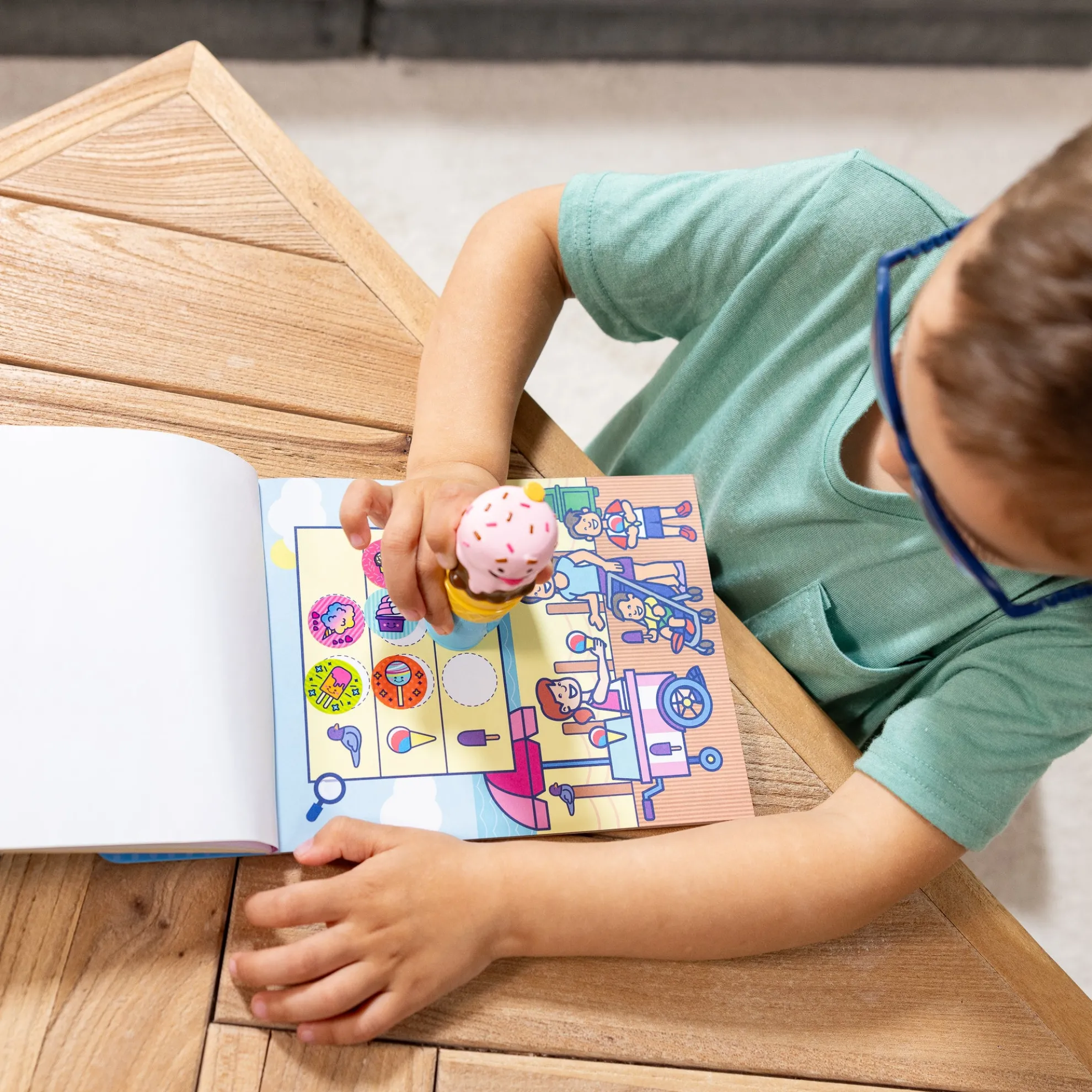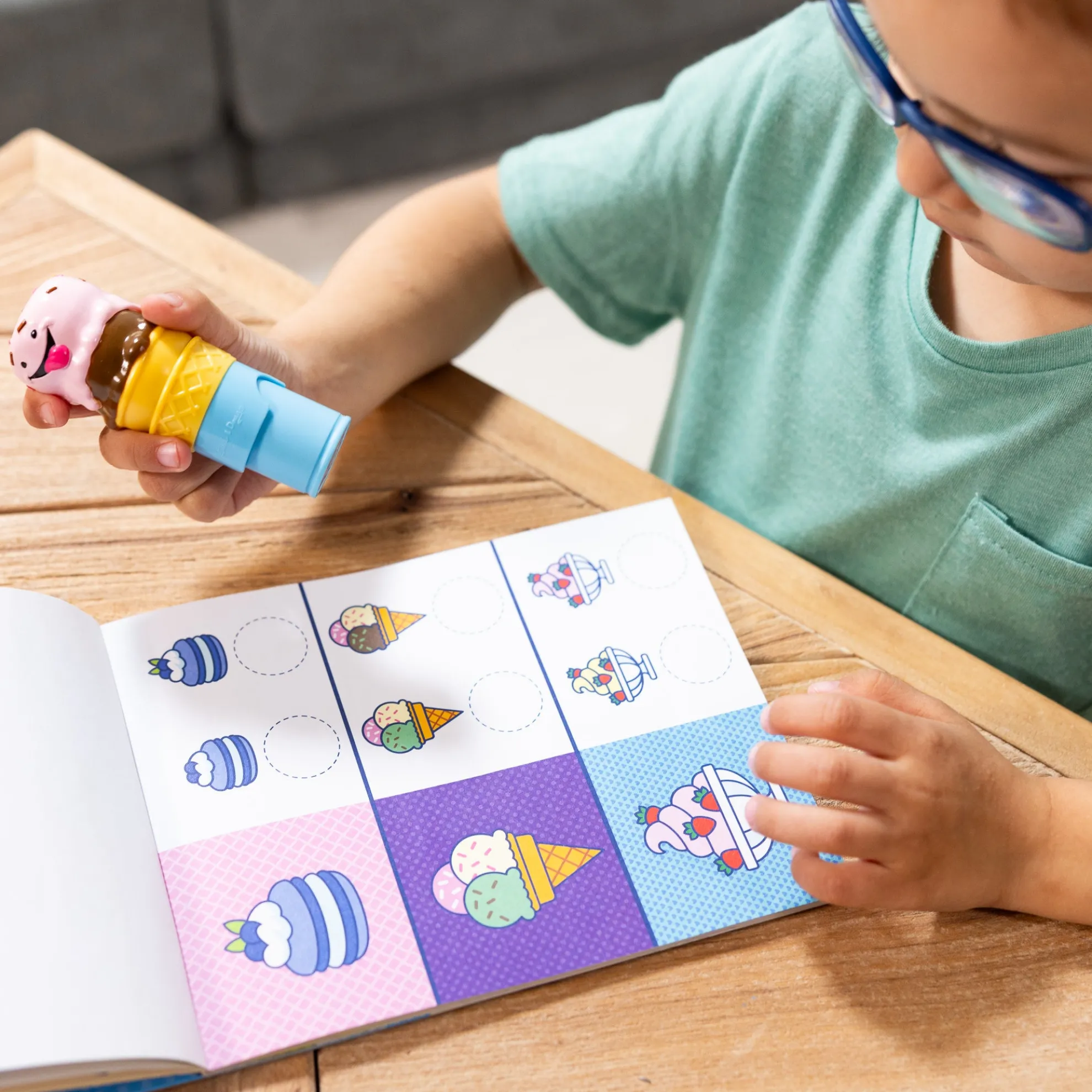 Melissa & Doug Sticker WOW!™ is a whole new way to play with stickers! Let the adorable, collectible Frosty the Ice Cream stamp, stamp, stamp its way through 24 pages of fun-filled, sweets-themed counting, matching, and search-and-find activities. The refillable sticker stamper comes pre-loaded with a sticker stack of 300 assorted stickers – with 100 unique designs in every stack, each sticker is a surprise! Themed refill packs are sold separately and are compatible with any Sticker WOW!™ sticker stamper. Stickers are not reusable, but are easy to remove if necessary. Fill in the activity pages and use for creative art projects, such as bookmarks, posters, cards, and more. Easy-to-remove stickers and the convenient on-the-go format with built-in sticker stamper storage makes Sticker WOW!™ (patent pending) a great mess-free travel activity. Sticker WOW!™ promotes fine motor skills, encourages creative play, and it’s satisfying, fidget fun! This product is certified by the Forest Stewardship Council. FSC certification ensures that products come from responsibly managed forests that provide environmental, social, and economic benefits, and that forests are protected for future generations. Please note that FSC certification applies to new inventory only (FSC C156584)