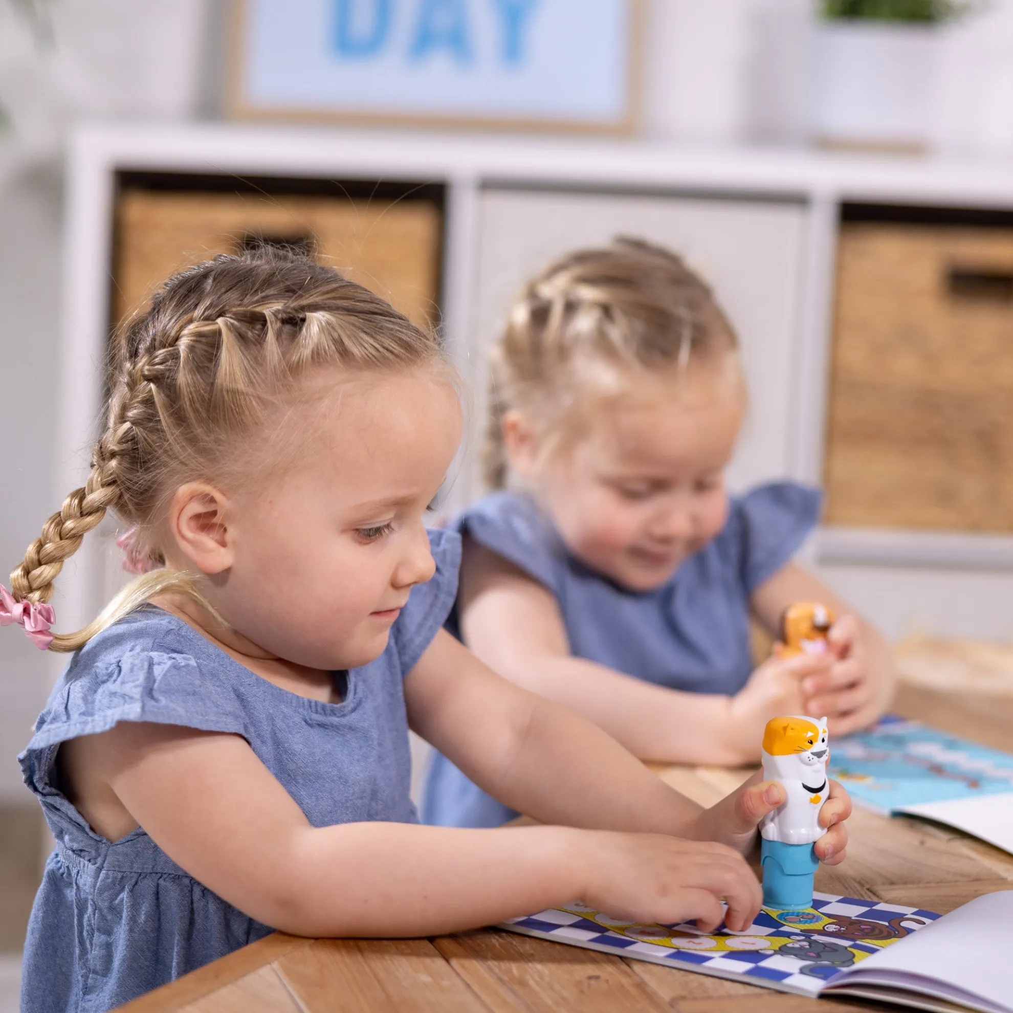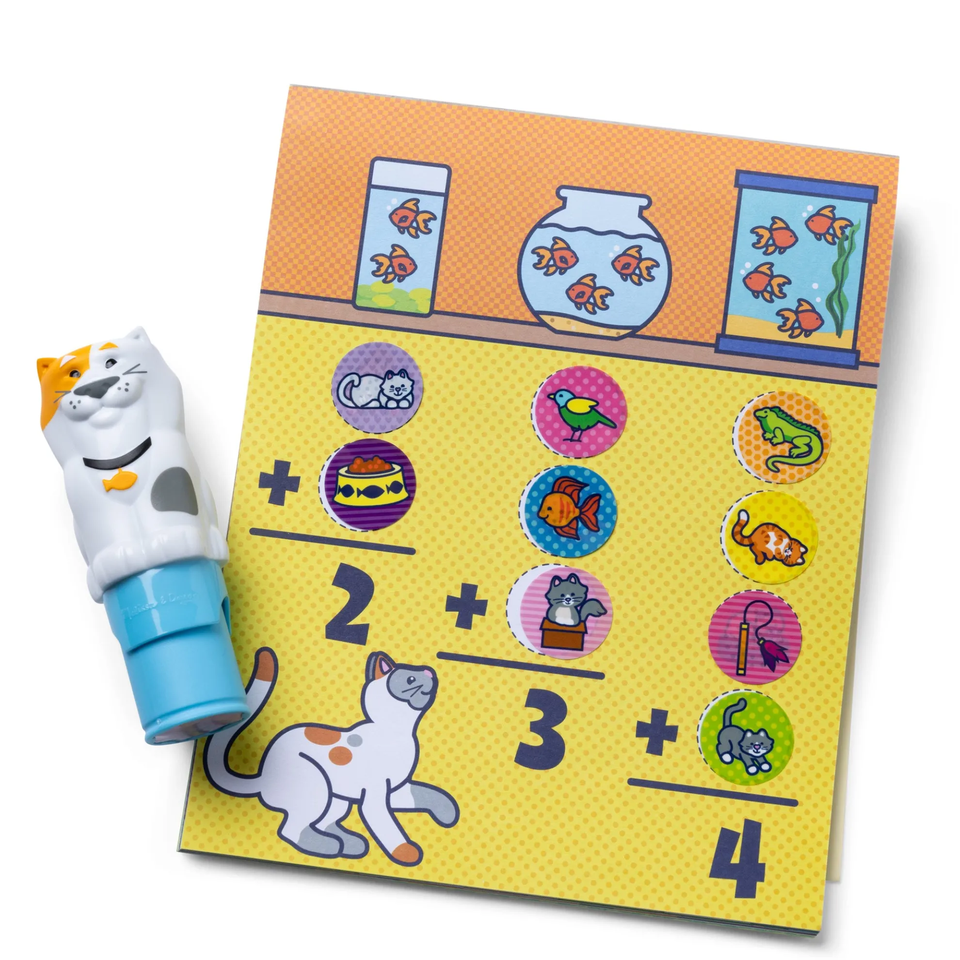 Melissa & Doug Sticker WOW!™ is a whole new way to play with stickers, and it’s twice the fun with the pet-themed two-pack! Let the adorable, collectible Mocha the Dog and Mackerel the Cat stamp, stamp, stamp their way through two 24-page pads of fun-filled, pet-themed counting, matching, and search-and-find activities – 48 pages in all! The refillable sticker stampers come pre-loaded with a sticker stack of 300 assorted stickers each, plus two bonus sticker stacks with 150 extra stickers in each. That’s 900 stickers total! With 100 unique designs in every stack, each sticker is a surprise! Themed refill packs are sold separately and are compatible with any Sticker WOW!™ sticker stamper. Stickers are not reusable, but are easy to remove if necessary. Fill in the activity pages and use for creative art projects, such as bookmarks, posters, cards, and more. Easy-to-remove stickers and the convenient on-the-go activity pad format makes Sticker WOW!™ a great mess-free travel activity. Sticker WOW!™ (patent pending) promotes fine motor skills, encourages creative play, and it’s satisfying, fidget fun! This product is certified by the Forest Stewardship Council. FSC certification ensures that products come from responsibly managed forests that provide environmental, social, and economic benefits, and that forests are protected for future generations. Please note that FSC certification applies to new inventory only (FSC C156584)