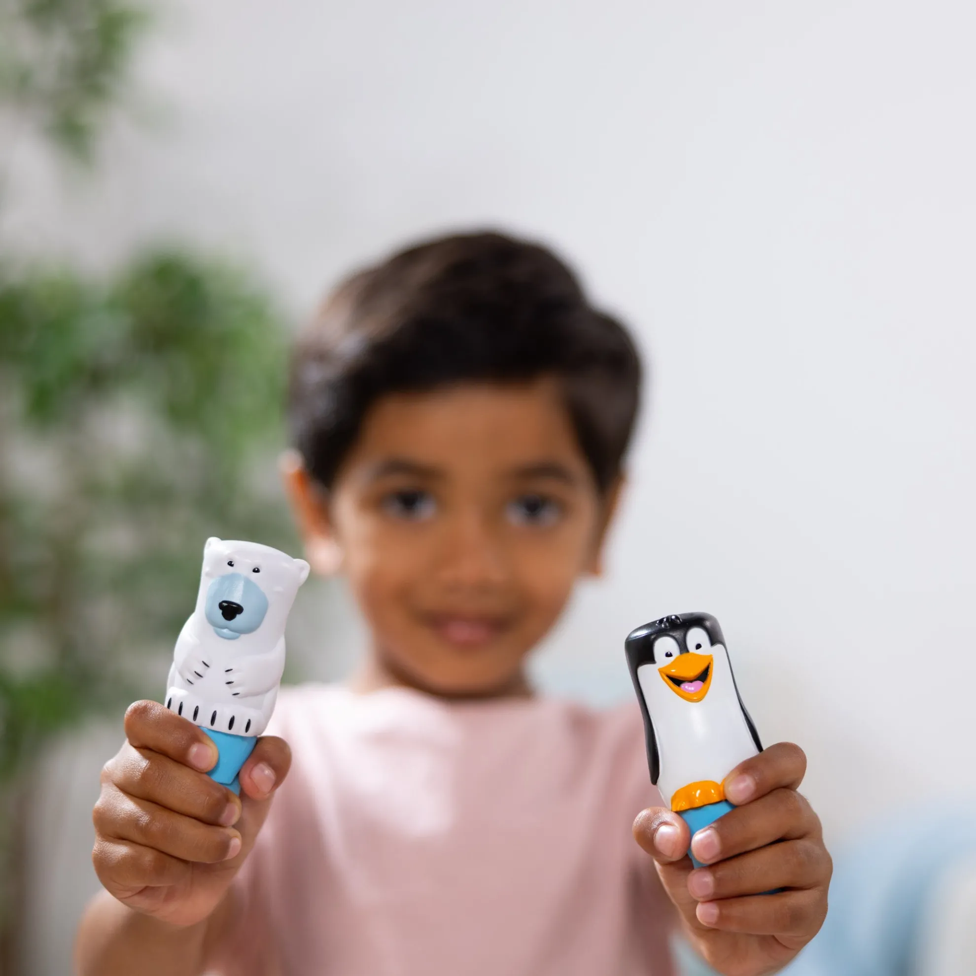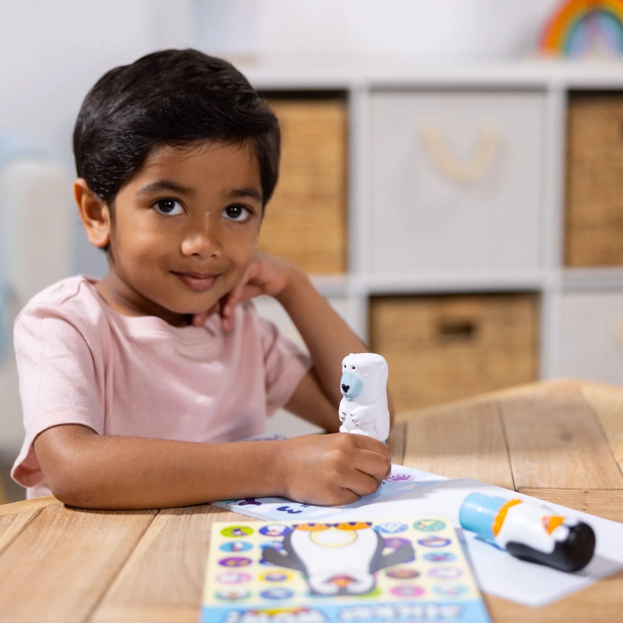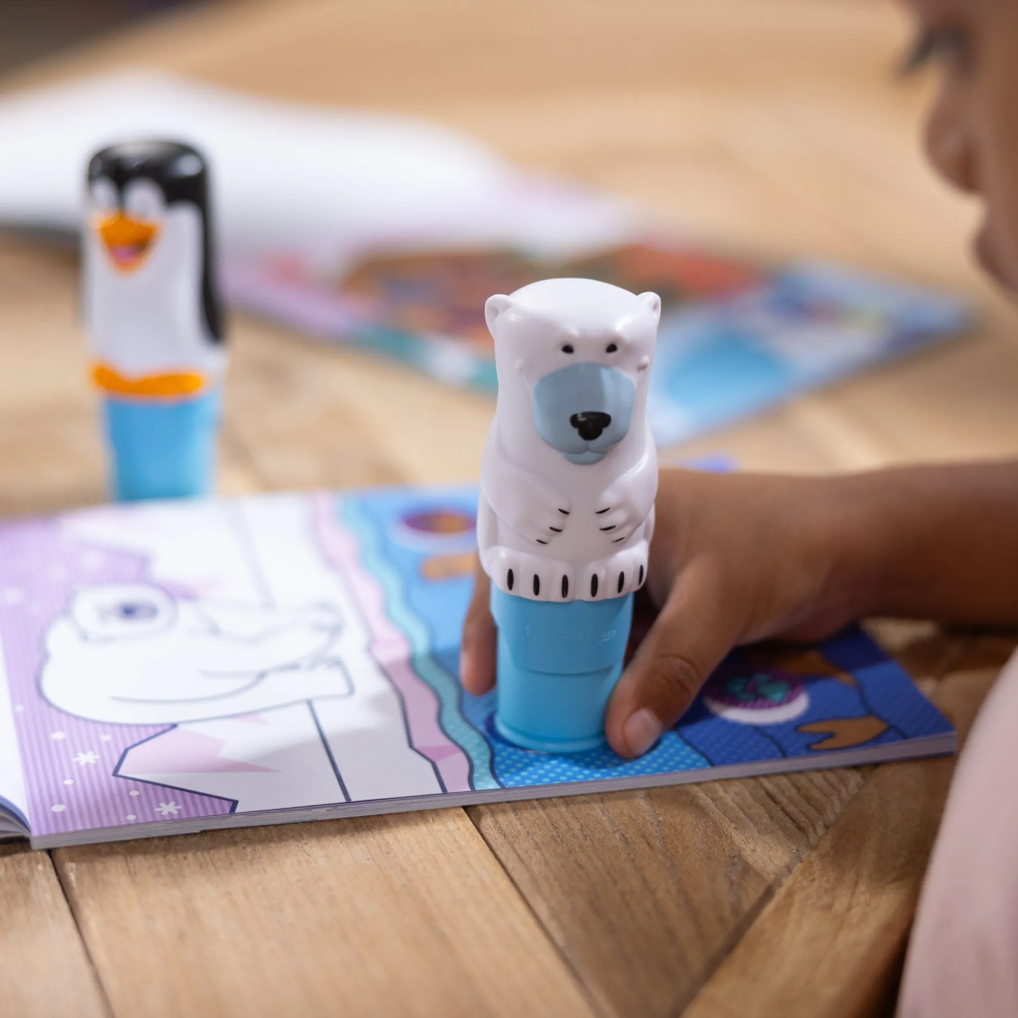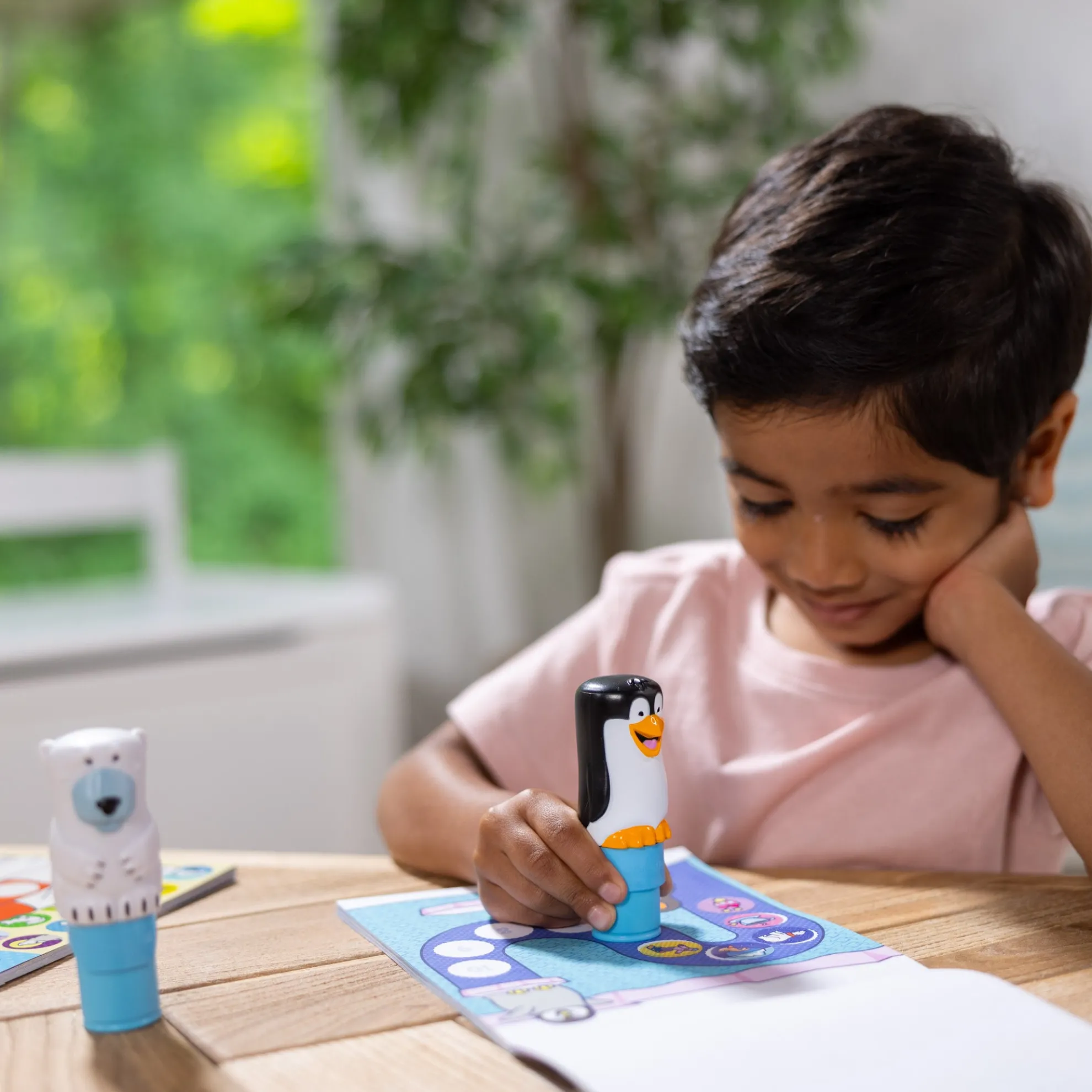 Melissa & Doug Sticker WOW!™ is a whole new way to play with stickers, and it’s twice the fun with the winter-themed two-pack! Let the adorable, collectible Tofu the Polar Bear and Licorice the Penguin stamp, stamp, stamp their way through two 24-page pads of fun-filled, winter-themed counting, matching, and search-and-find activities – 48 pages in all! The refillable sticker stampers come pre-loaded with a sticker stack of 300 assorted stickers each, plus two bonus sticker stacks with 150 extra stickers in each. That’s 900 stickers total! With 100 unique designs in every stack, each sticker is a surprise! Themed refill packs are sold separately and are compatible with any Sticker WOW!™ sticker stamper. Stickers are not reusable, but are easy to remove if necessary. Fill in the activity pages and use for creative art projects, such as bookmarks, posters, cards, and more. Easy-to-remove stickers and the convenient on-the-go activity pad format makes Sticker WOW!™ a great mess-free travel activity. Sticker WOW!™ (patent pending) promotes fine motor skills, encourages creative play, and it’s satisfying, fidget fun! This product is certified by the Forest Stewardship Council. FSC certification ensures that products come from responsibly managed forests that provide environmental, social, and economic benefits, and that forests are protected for future generations. Please note that FSC certification applies to new inventory only (FSC C156584)