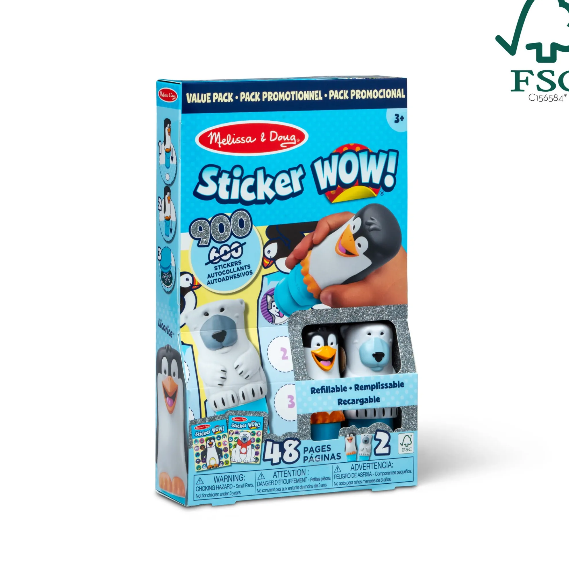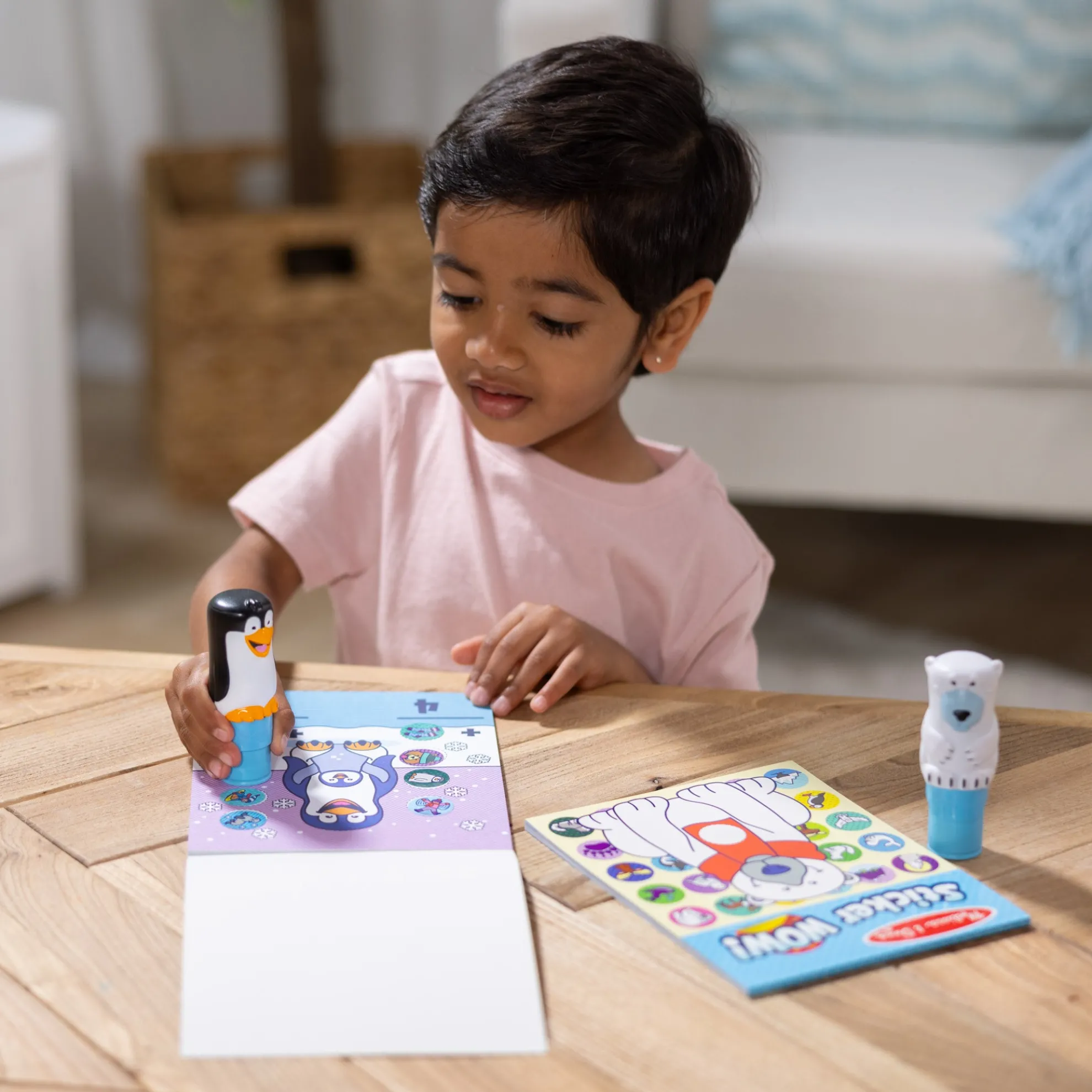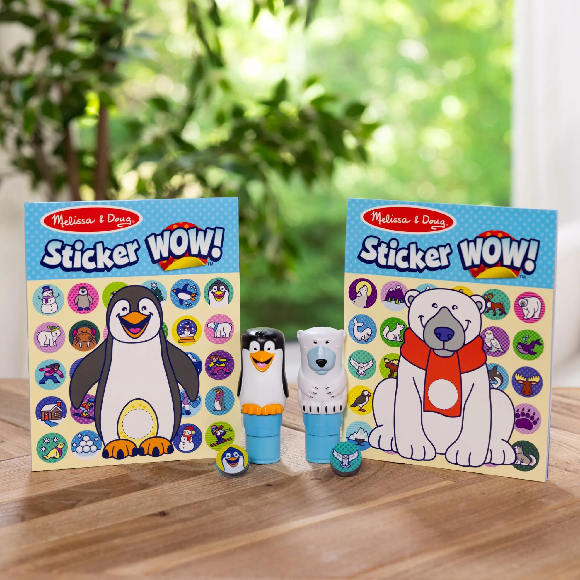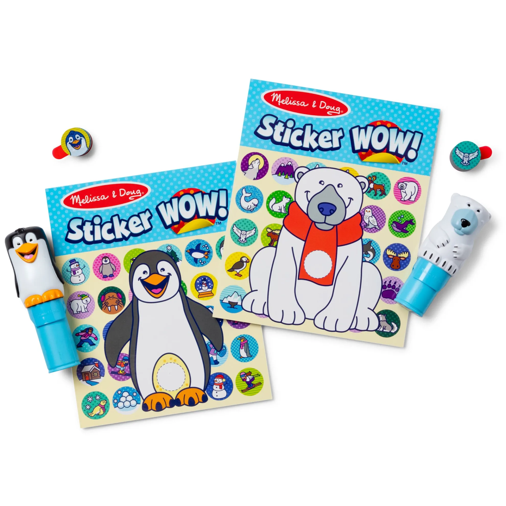 - Melissa & Doug Sticker WOW!™ is a whole new way to play with stickers – have twice the fun with TWO cute, collectible characters to stamp winter-themed stickers on TWO 24-page Polar Bear and Penguin activity pads and on other creative art projects