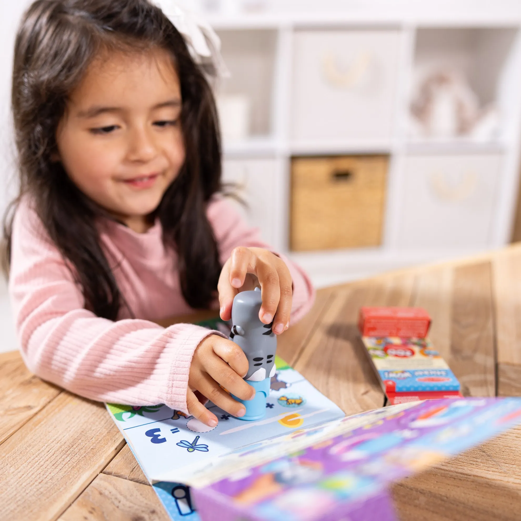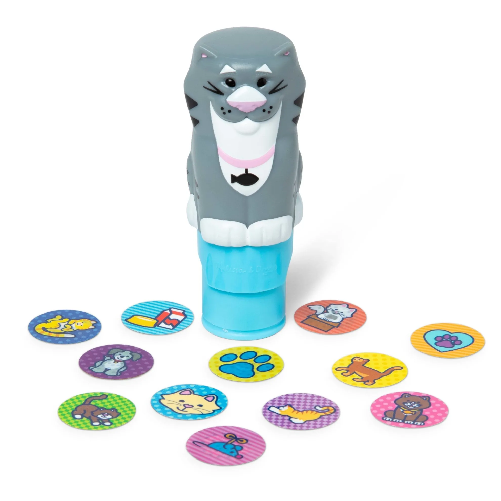 Melissa & Doug Sticker WOW!™ is a whole new way to play with stickers! Let the adorable, collectible Tuna the Cat stamp, stamp, stamp its way through 24 pages of fun-filled, pets-themed counting, matching, and search-and-find activities. The refillable sticker stamper comes pre-loaded with a sticker stack of 300 assorted stickers – with 100 unique designs in every stack, each sticker is a surprise! Plus, this set is bundled with a refill pack of 200 EXTRA stickers (compatible with any Sticker WOW!™ sticker stamper) and an additional mini activity pad for even more Sticker WOW!™ fun. Stickers are not reusable, but are easy to remove if necessary. Fill in the activity pages and use for creative art projects, such as bookmarks, posters, cards, and more. Easy-to-remove stickers and the convenient on-the-go format with built-in sticker stamper storage makes Sticker WOW!™ a great mess-free travel activity. Sticker WOW!™ (patent pending) promotes fine motor skills, encourages creative play, and it’s satisfying, fidget fun!