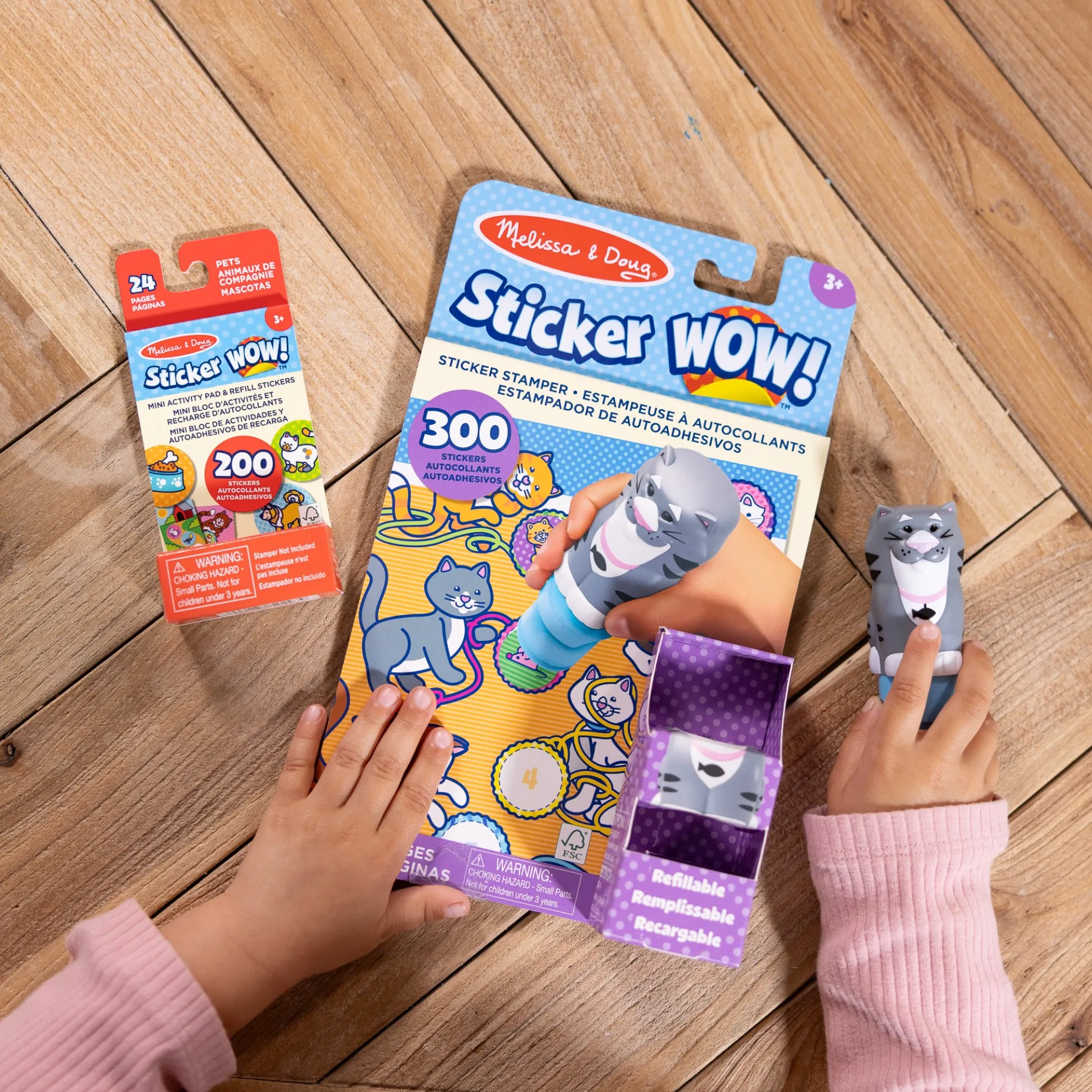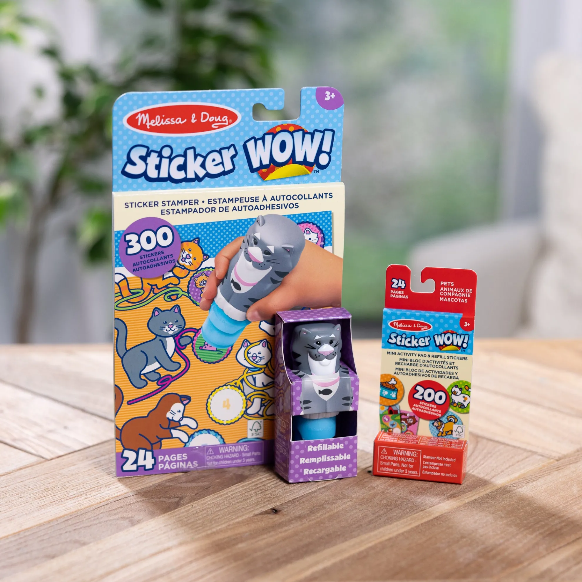 - Melissa & Doug Sticker WOW!™ is a whole new way to play with stickers – use the cute, collectible character to stamp pets-themed stickers on the 24-page Cat activity pad, the additional 24-page mini activity pad, and on other creative art projects