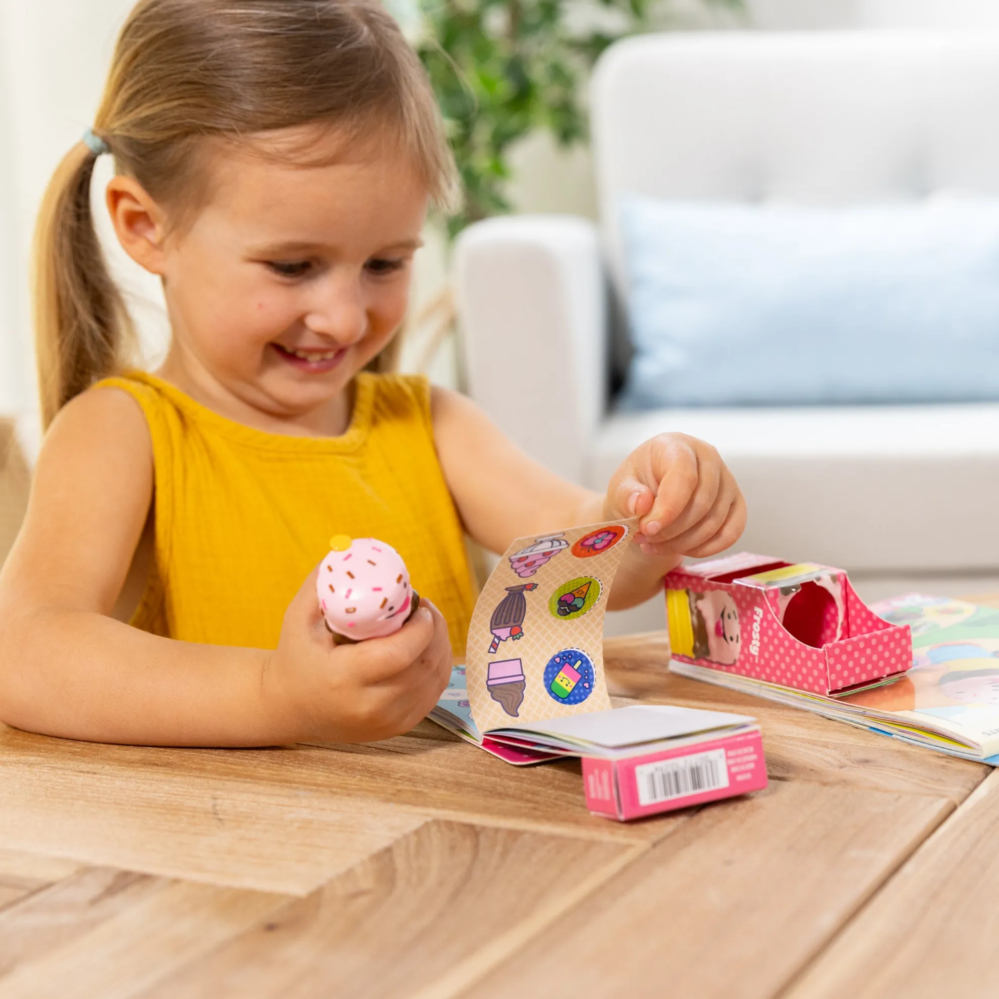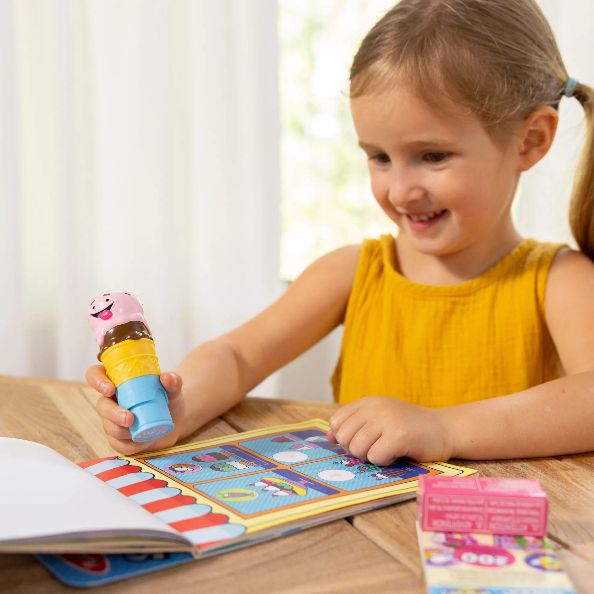 Melissa & Doug Sticker WOW!™ is a whole new way to play with stickers! Let the adorable, collectible Frosty the Ice Cream stamp, stamp, stamp its way through 24 pages of fun-filled, treats-themed counting, matching, and search-and-find activities. The refillable sticker stamper comes pre-loaded with a sticker stack of 300 assorted stickers – with 100 unique designs in every stack, each sticker is a surprise! Plus, this set is bundled with a refill pack of 200 EXTRA favorite-things-themed stickers (compatible with any Sticker WOW!™ sticker stamper) and an additional mini prehistoric-themed activity pad for even more Sticker WOW!™ fun. Stickers are not reusable, but are easy to remove if necessary. Fill in the activity pages and use for creative art projects, such as bookmarks, posters, cards, and more. Easy-to-remove stickers and the convenient on-the-go format with built-in sticker stamper storage makes Sticker WOW!™ a great mess-free travel activity. Sticker WOW!™ (patent pending) promotes fine motor skills, encourages creative play, and it’s satisfying, fidget fun!