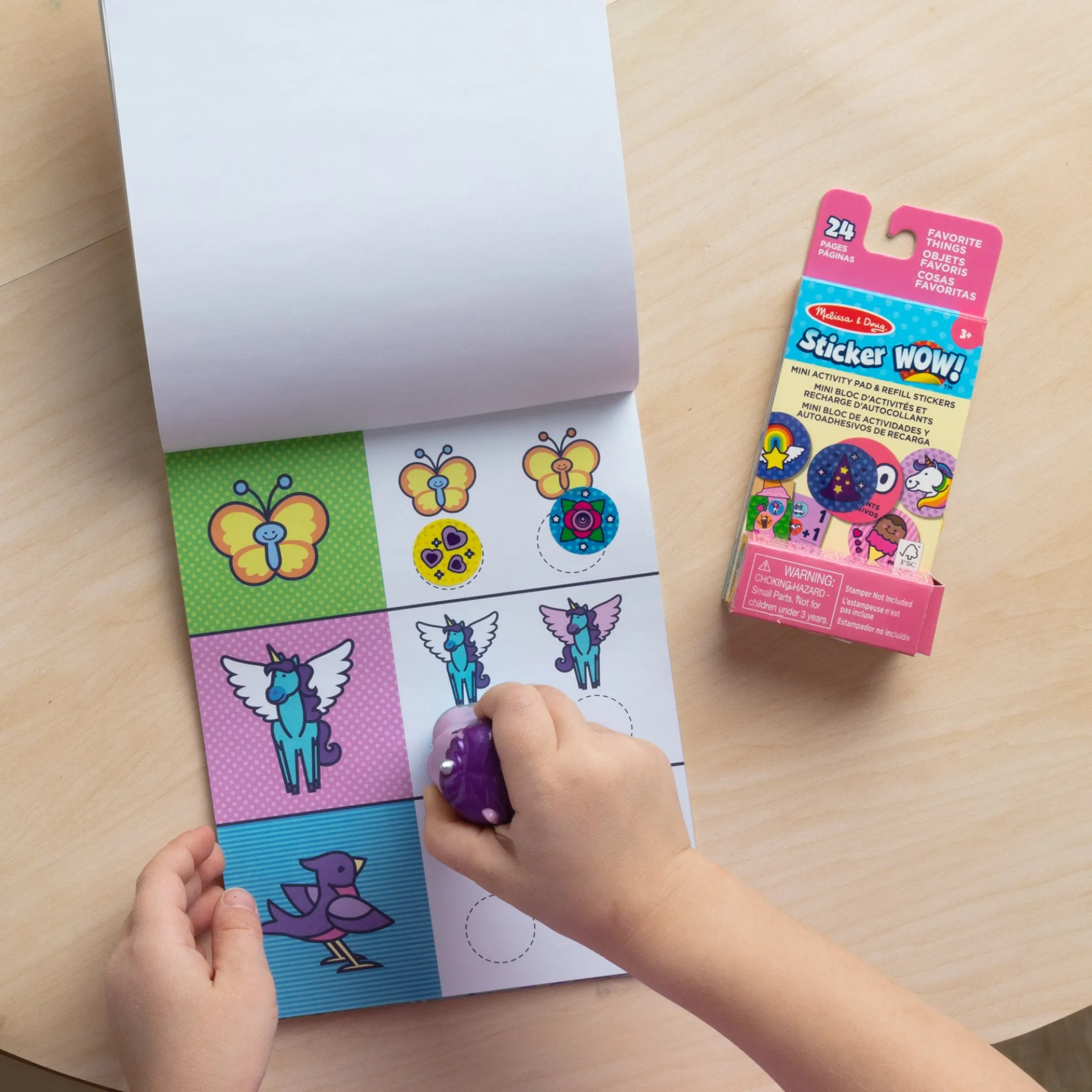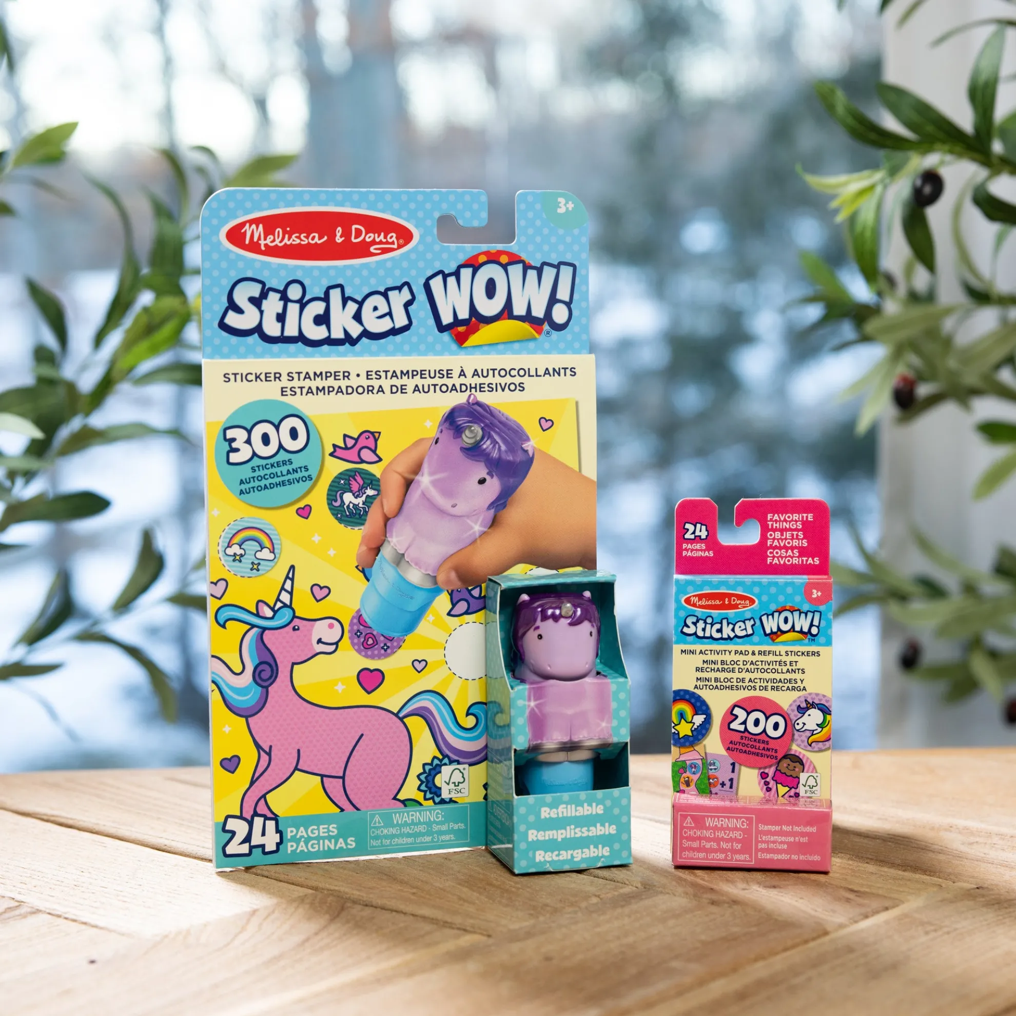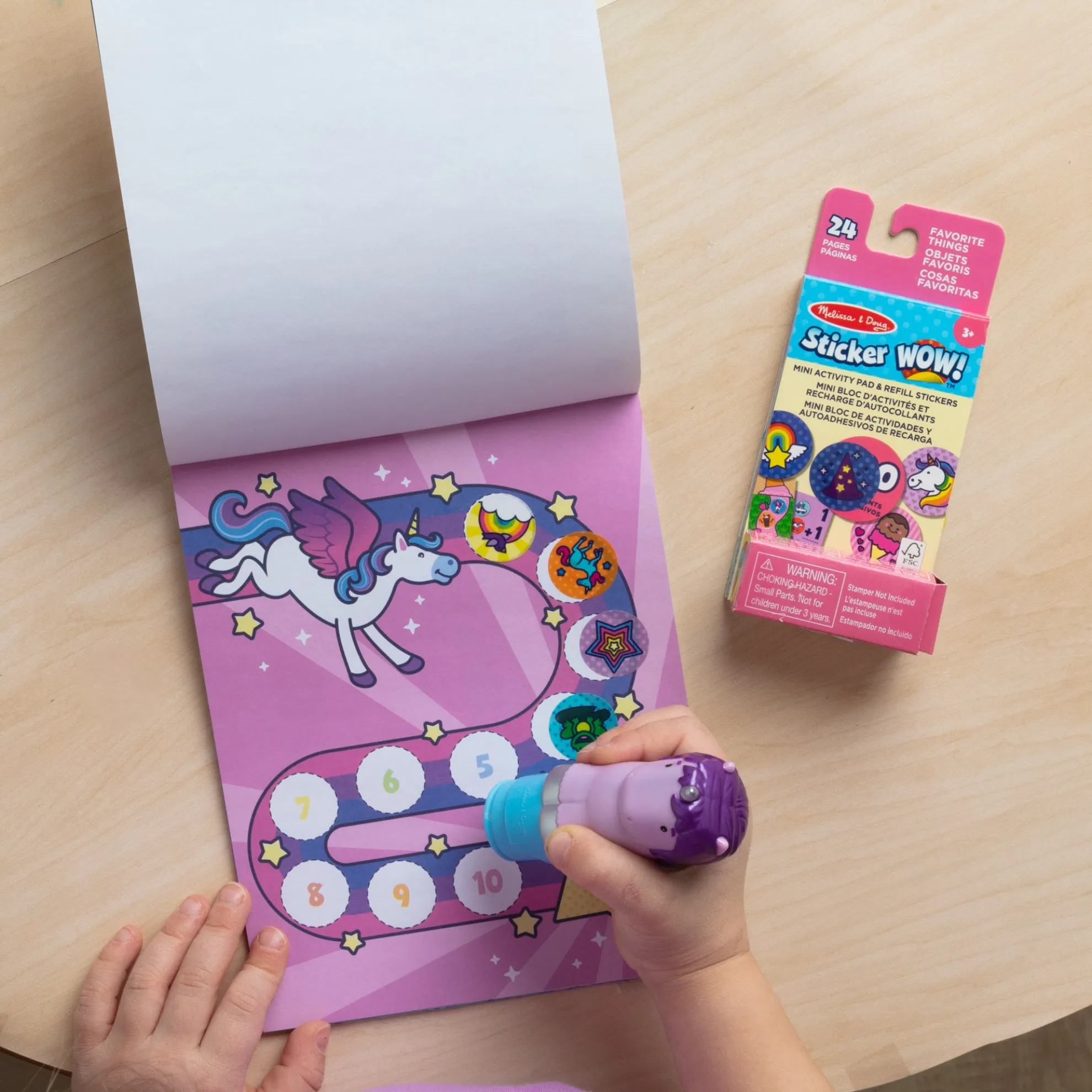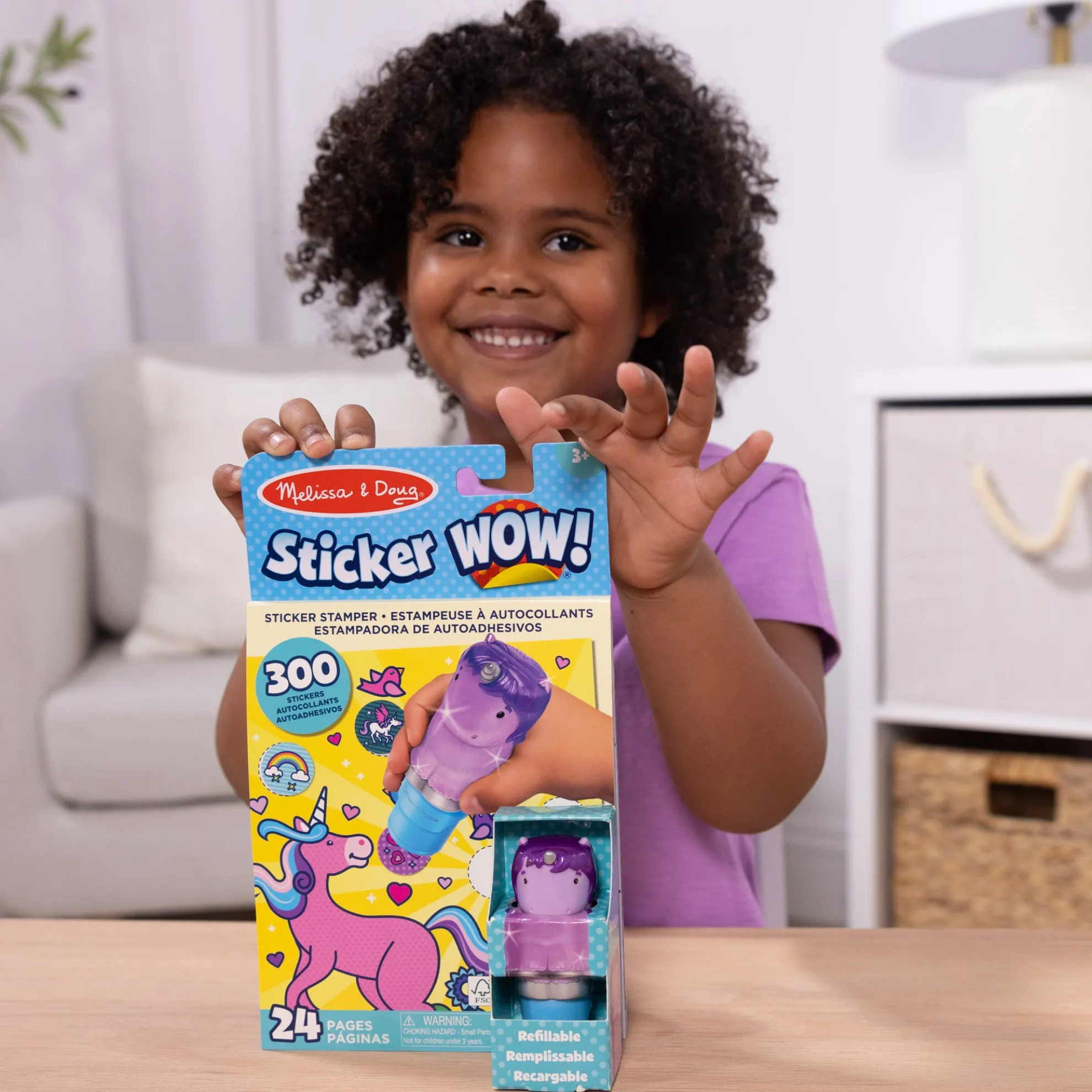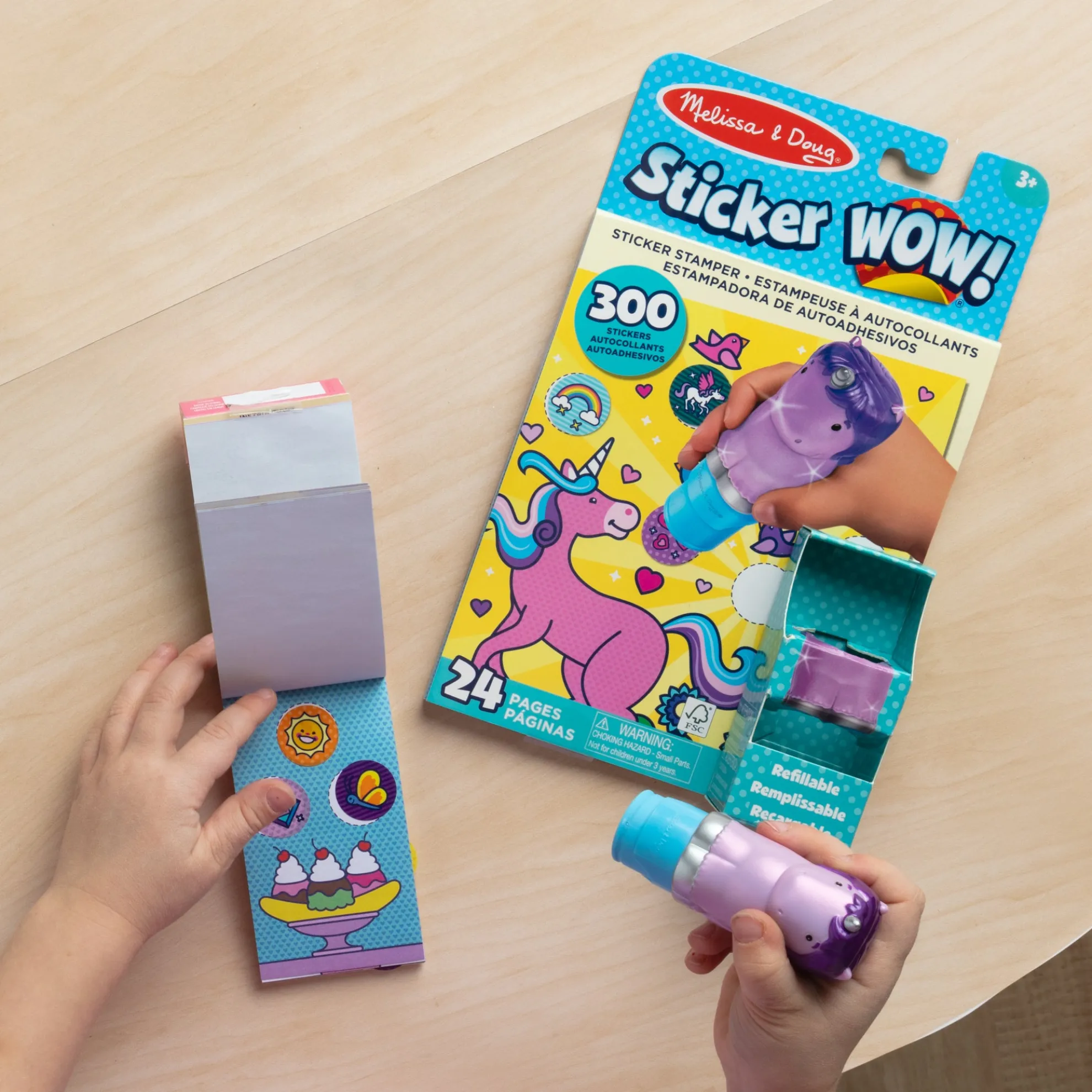 - Melissa & Doug Sticker WOW!™ is a whole new way to play with stickers – use the cute, collectible character to stamp fantasy-themed stickers on the 24-page Unicorn activity pad, the additional 24-page mini activity pad, and on other creative art projects