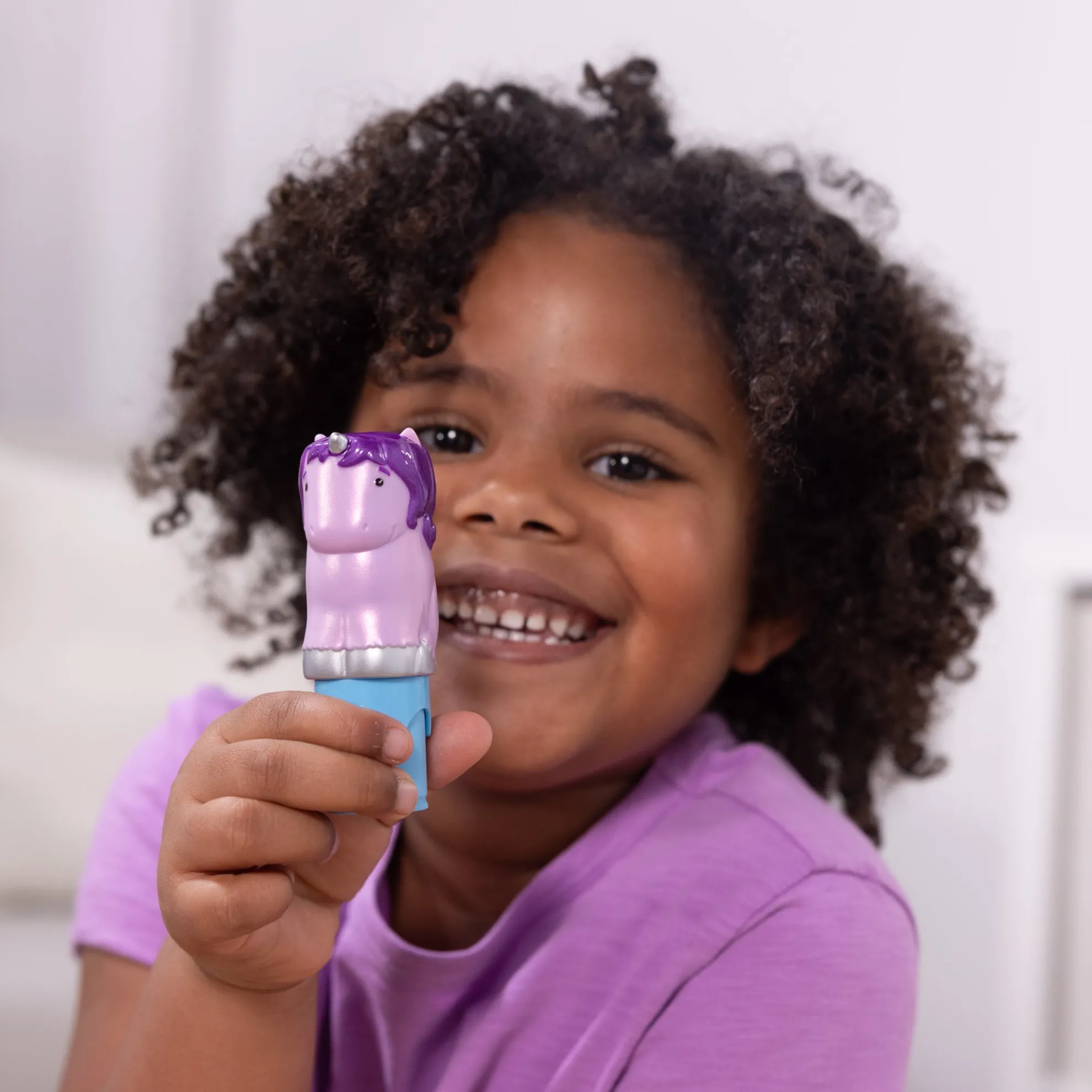 Melissa & Doug Sticker WOW!™ is a whole new way to play with stickers! Let the adorable, collectible Sprinkles the Purple Unicorn stamp, stamp, stamp its way through 24 pages of fun-filled, fantasy-themed counting, matching, and search-and-find activities. The refillable sticker stamper comes pre-loaded with a sticker stack of 300 assorted stickers – with 100 unique designs in every stack, each sticker is a surprise! Plus, this set is bundled with a refill pack of 200 EXTRA favorite things-themed stickers (compatible with any Sticker WOW!™ sticker stamper) and an additional mini favorite things-themed activity pad for even more Sticker WOW!™ fun. Stickers are not reusable, but are easy to remove if necessary. Fill in the activity pages and use for creative art projects, such as bookmarks, posters, cards, and more. Easy-to-remove stickers and the convenient on-the-go format with built-in sticker stamper storage makes Sticker WOW!™ a great mess-free travel activity. Sticker WOW!™ (patent pending) promotes fine motor skills, encourages creative play, and it’s satisfying, fidget fun!