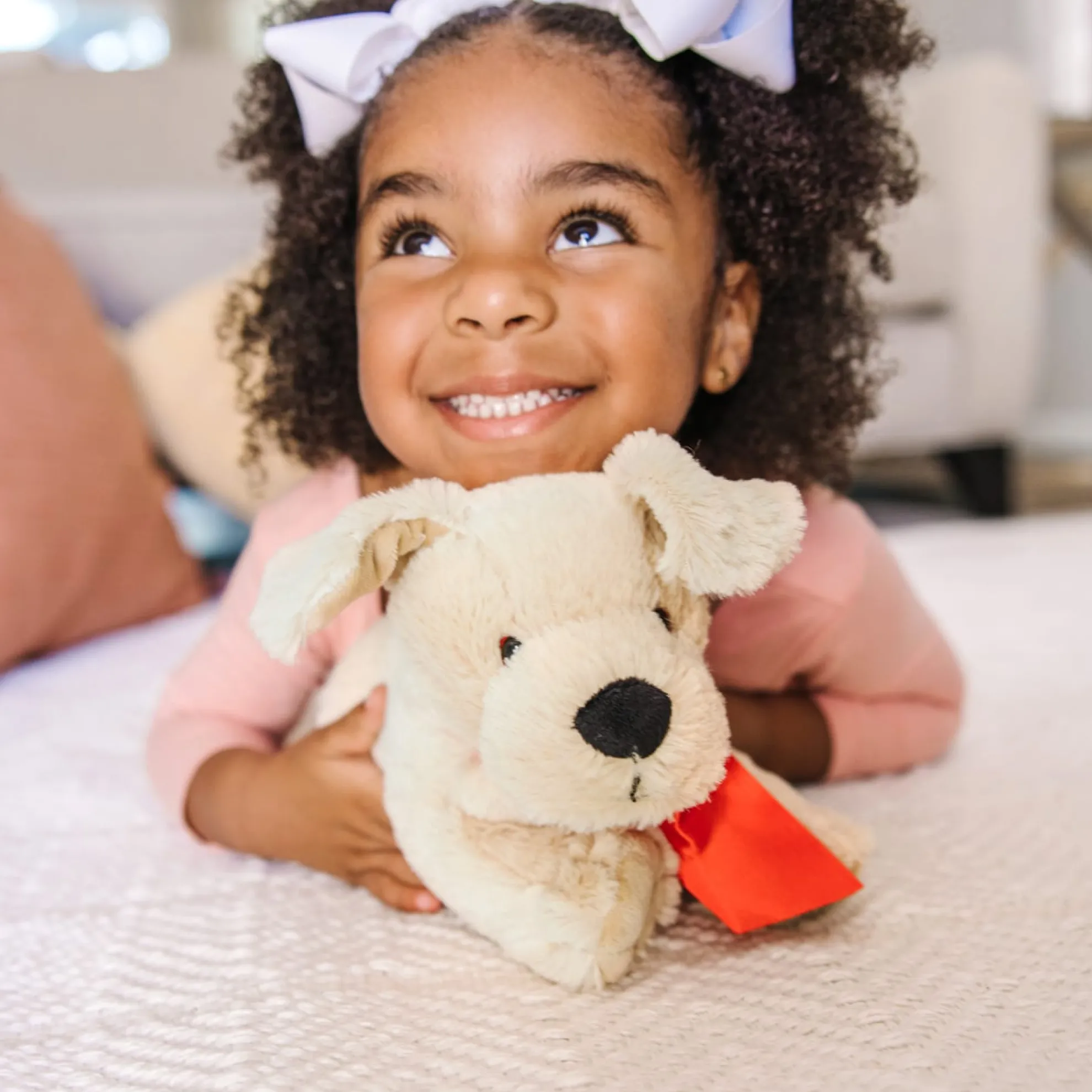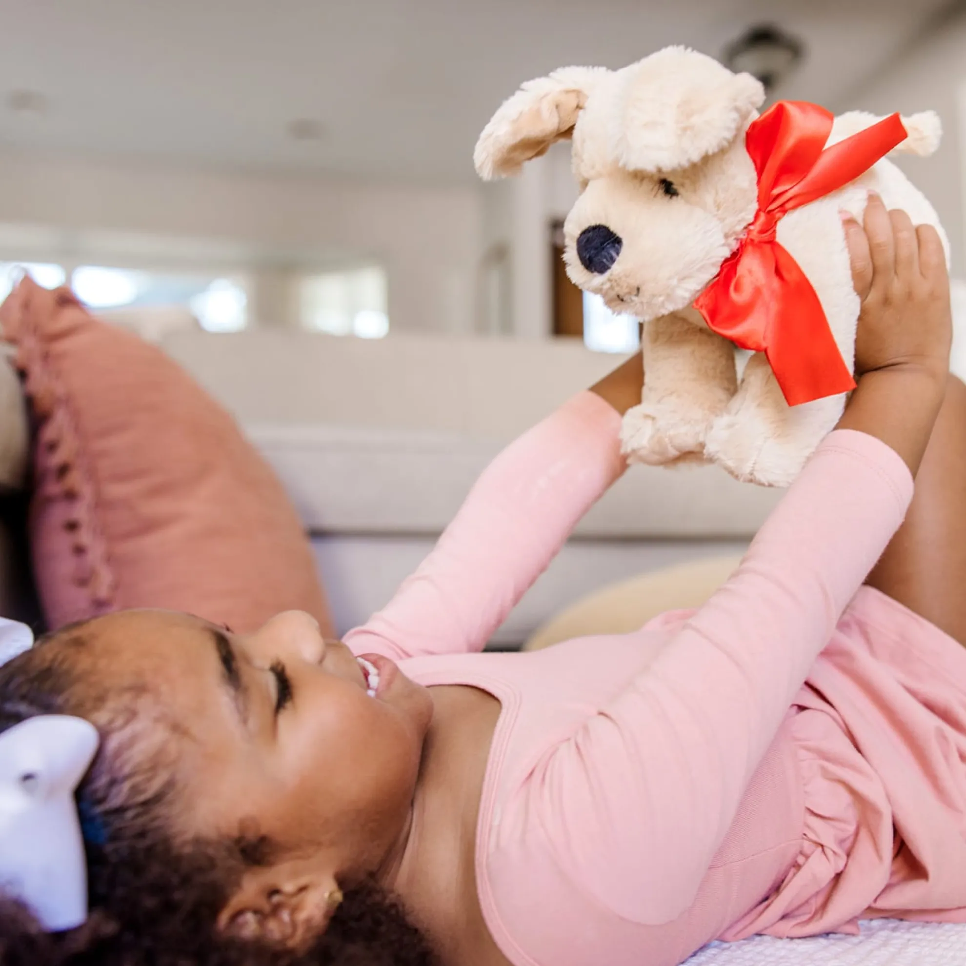 Everyone knows how sweet and well-behaved yellow labs are, and Sunny is no exception! With her slightly weighted paws, she can “sit” and “stay” just where you put her. She has an endearing face, with shiny eyes and a velvety nose, and a soft snuggly body.
