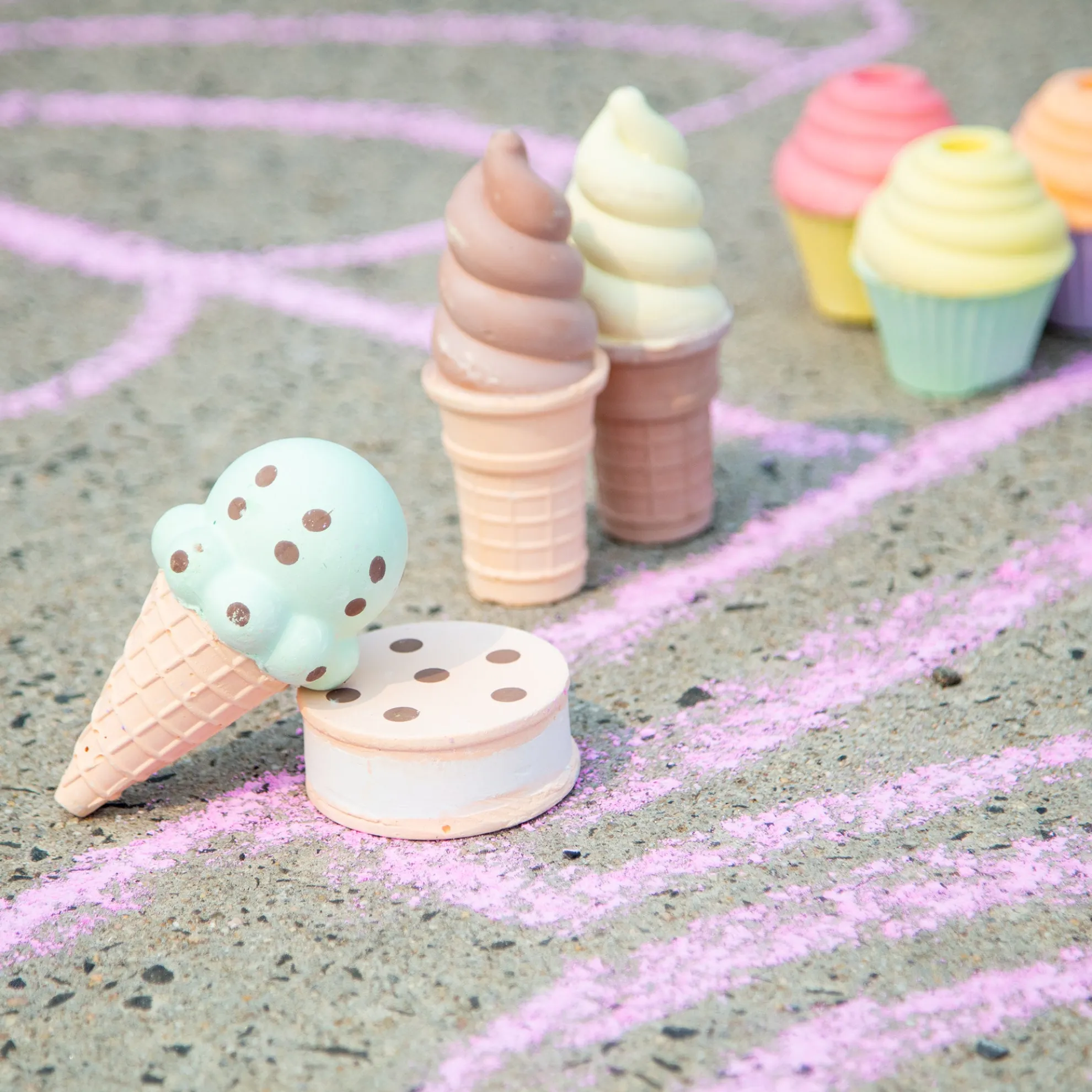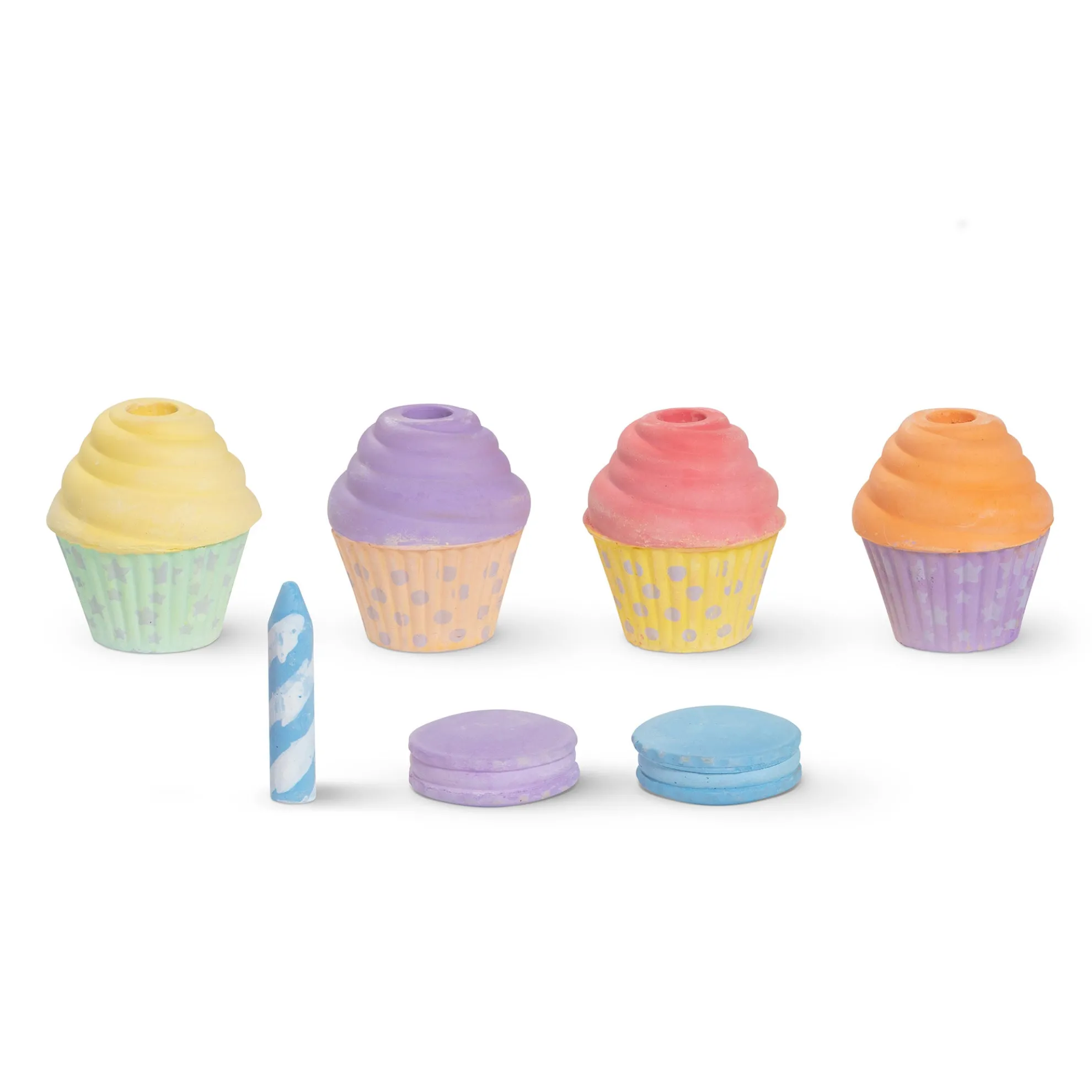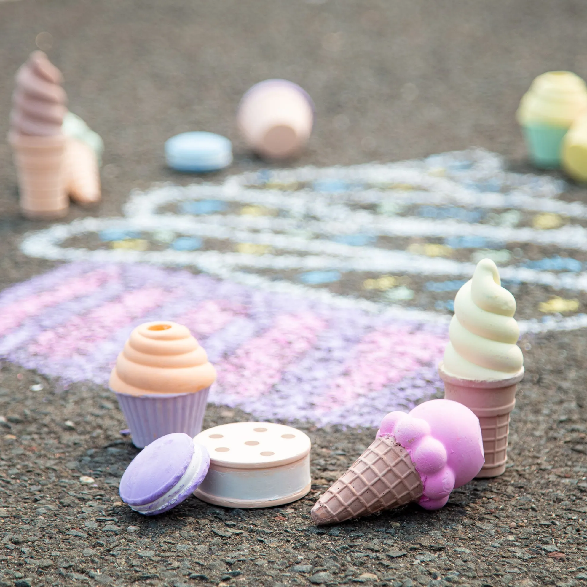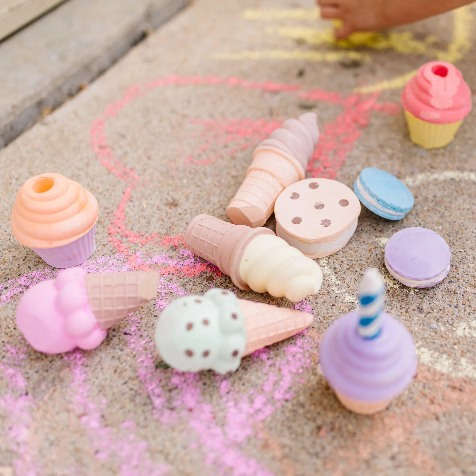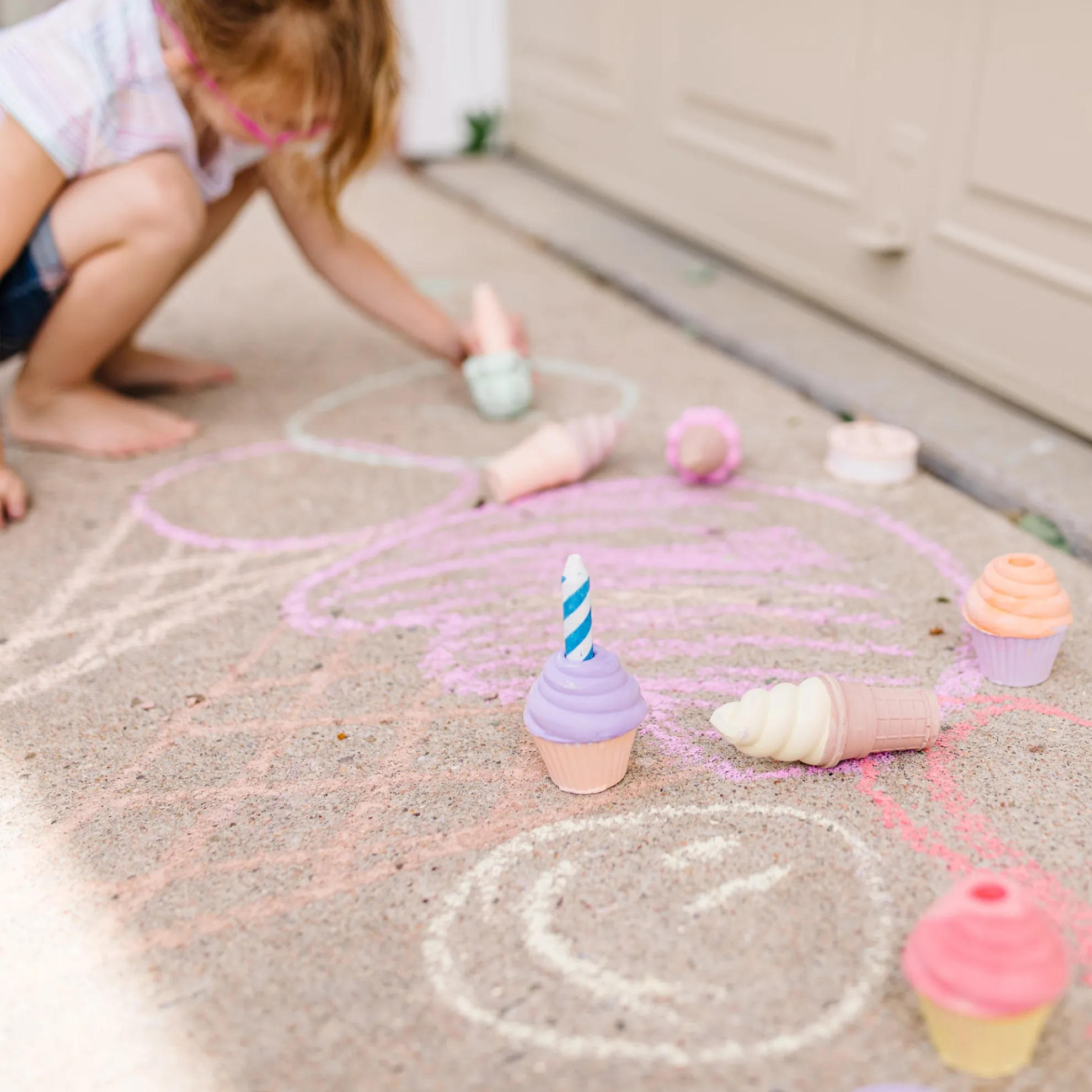 - 12-piece chalk set includes 4 cupcakes, 4 ice cream cones, 2 macarons, ice cream cookie sandwich, candle