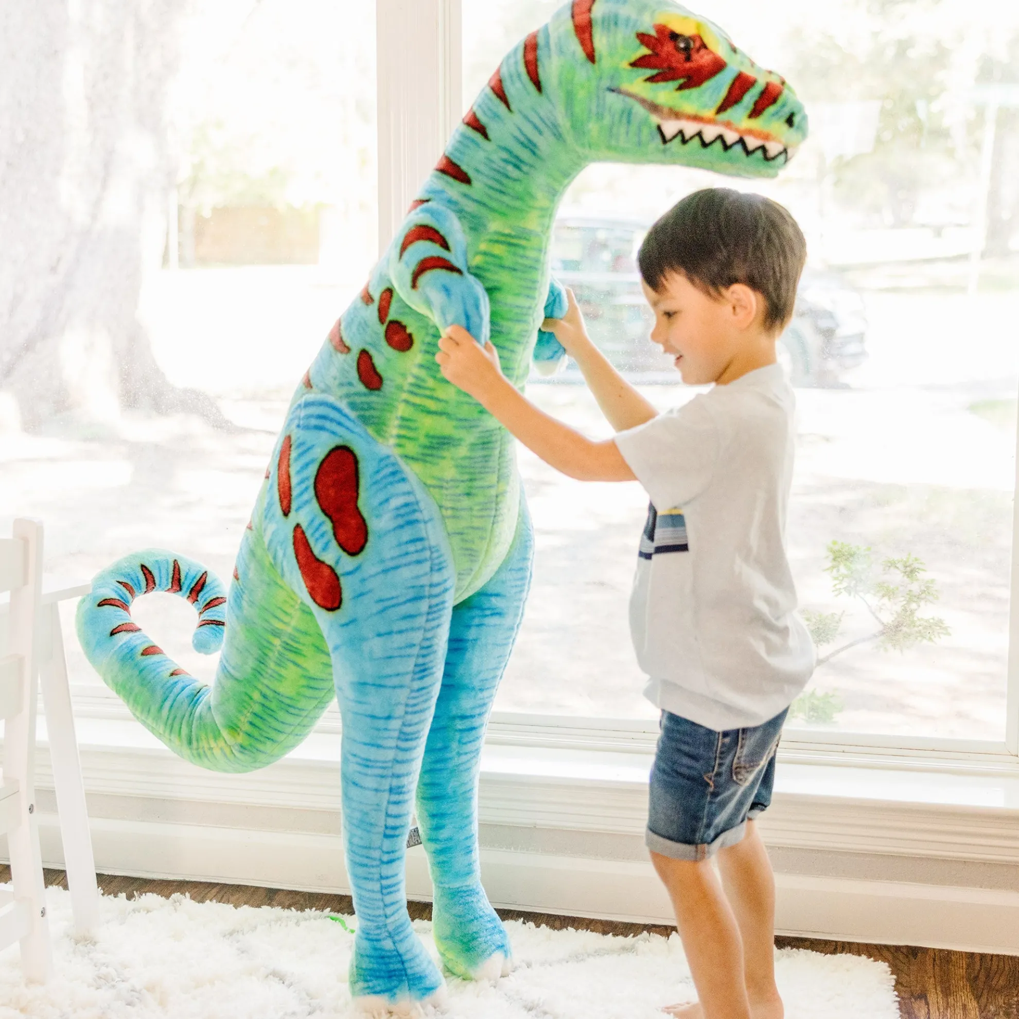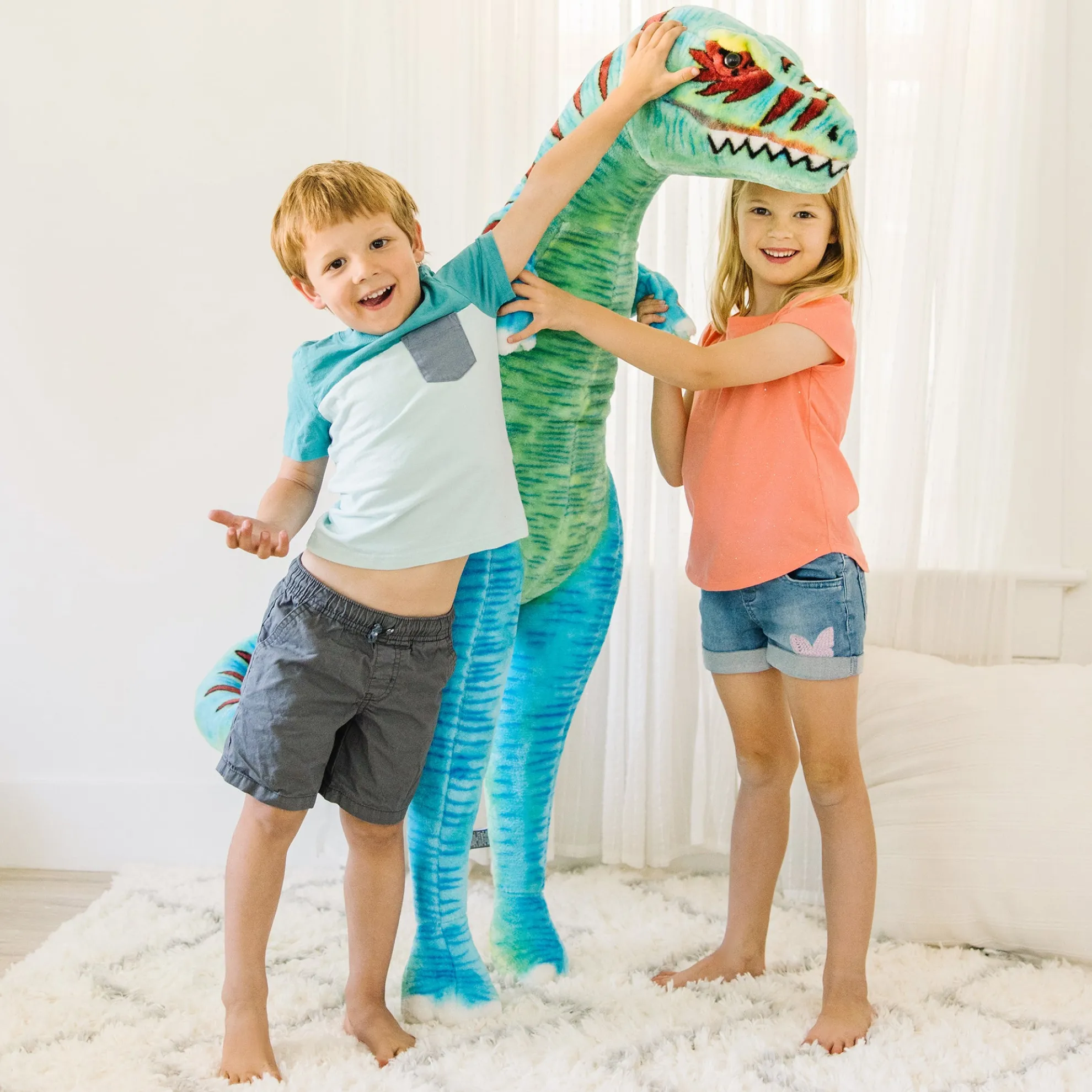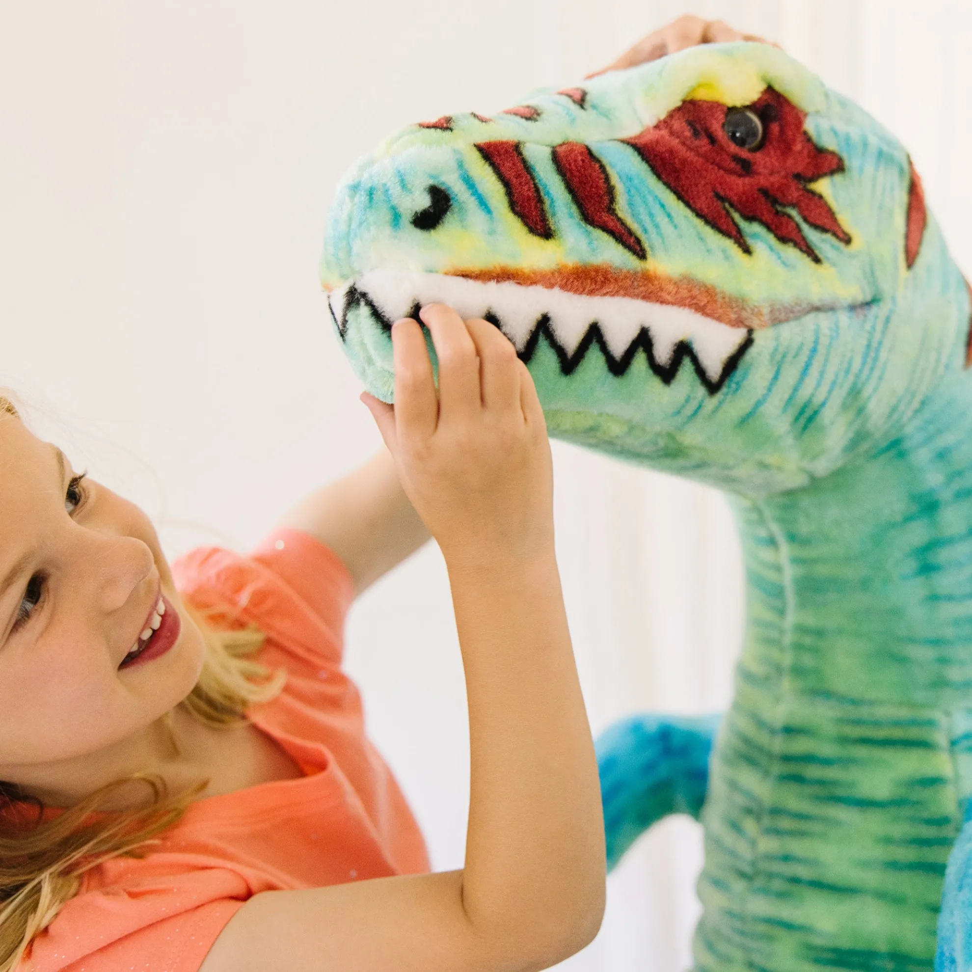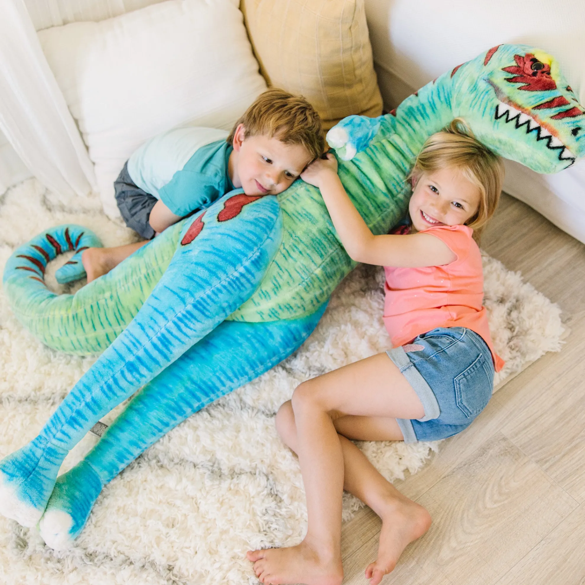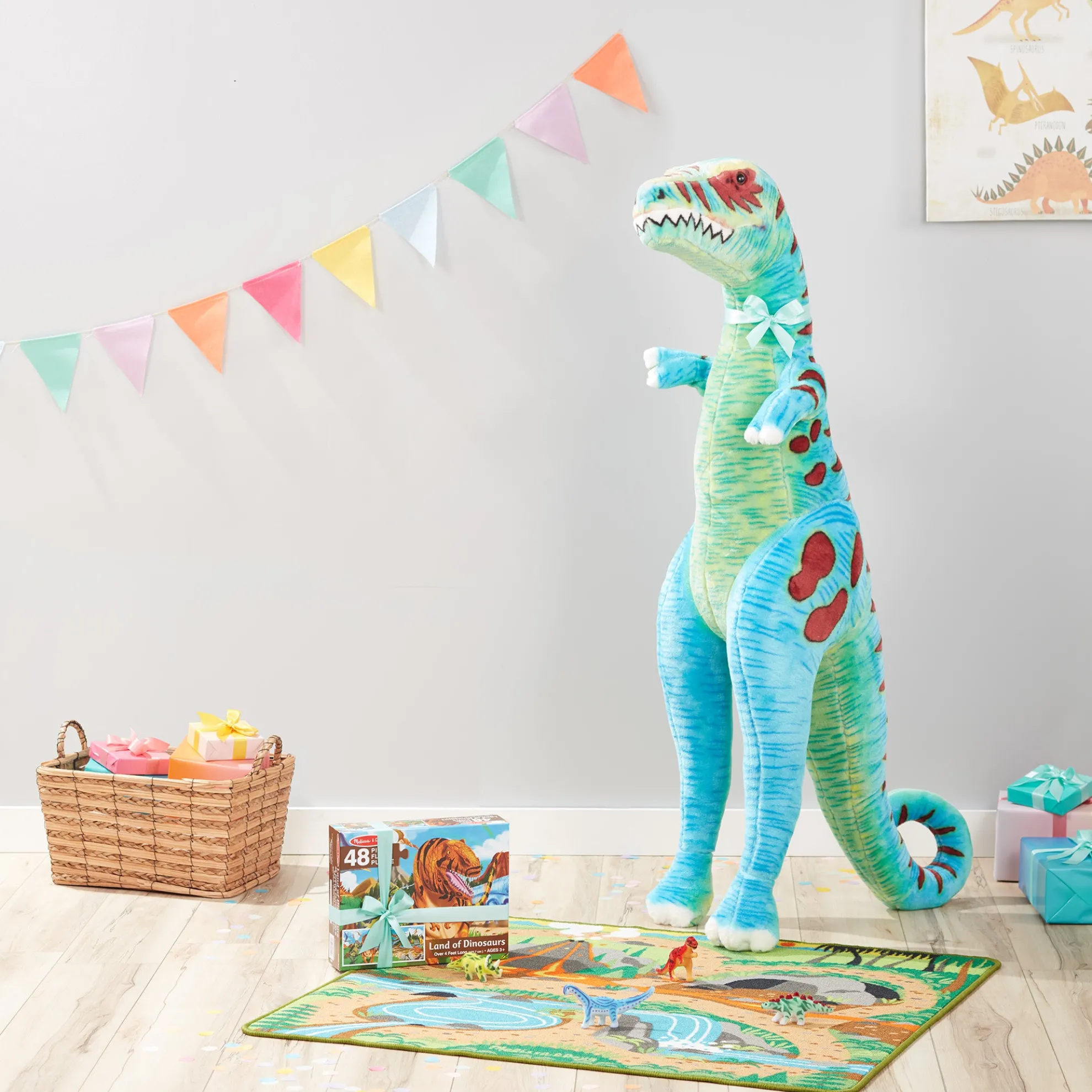 The giant T-Rex ruled the prehistoric world, and it will rule any room! This dynamic dinosaur makes a huge impression; the gigantic, multi-colored plush T-Rex stands an imposing 51 inches (more than four feet!) tall and is sure to be the centerpiece of any room, inspiring endless creative and imaginative play. It’s soft to the touch with a sturdy wireframe construction, long tail, and wide feet to help it to stand tall, making it perfect as a decorative piece for any room, as well as a catalyst for imaginary adventures!
